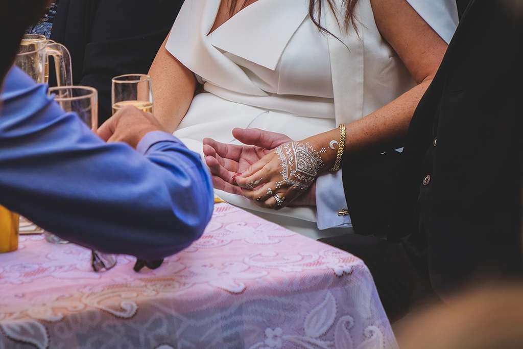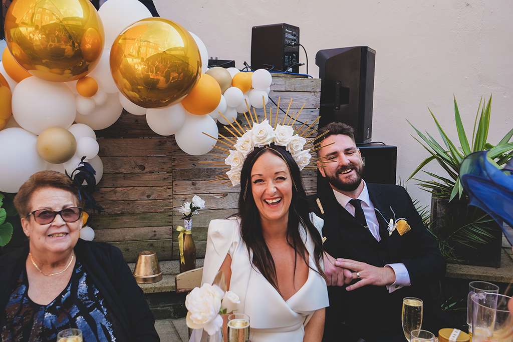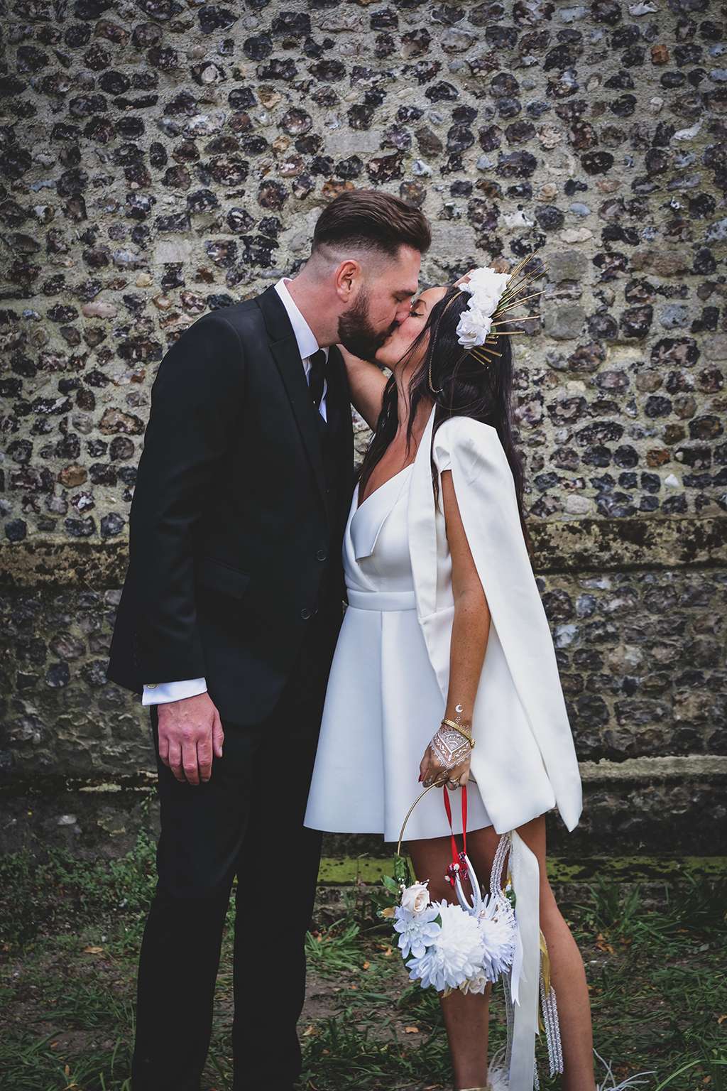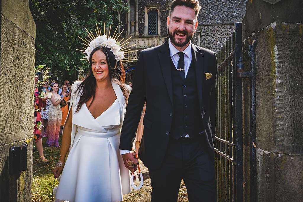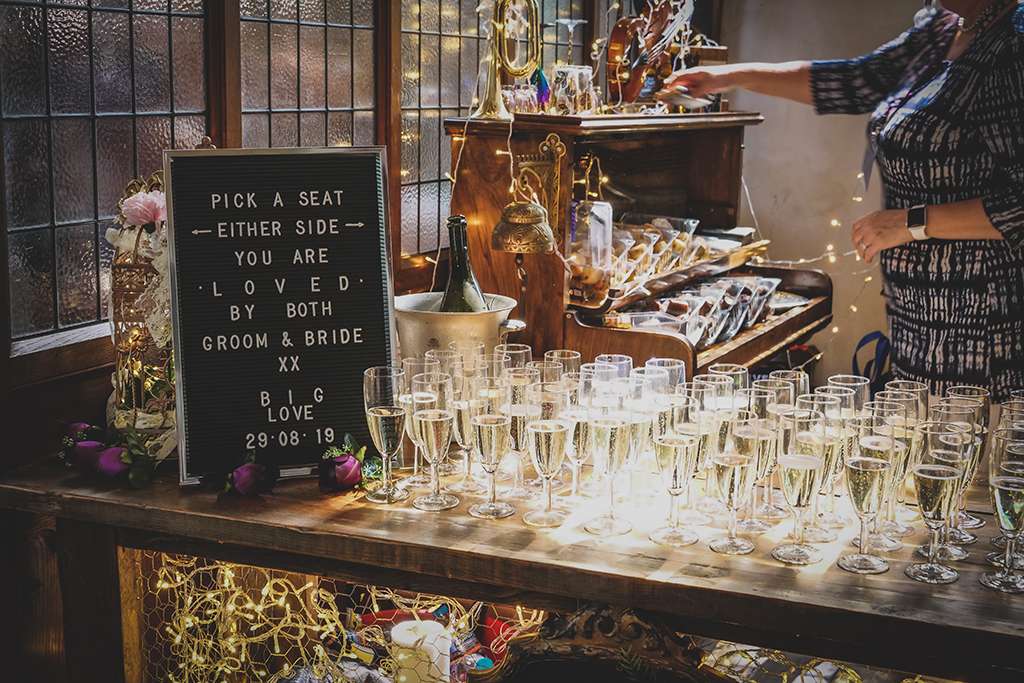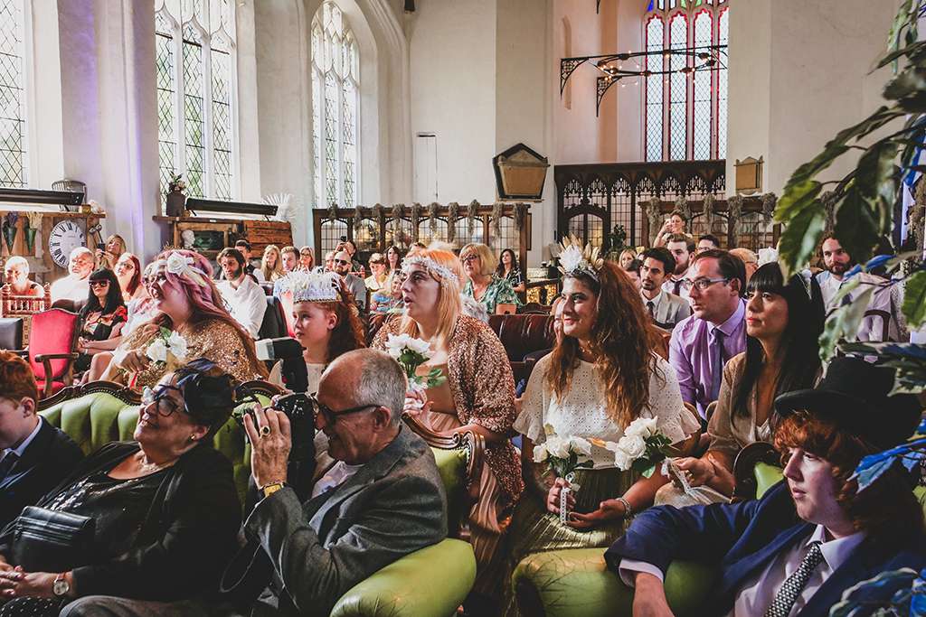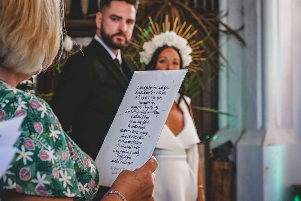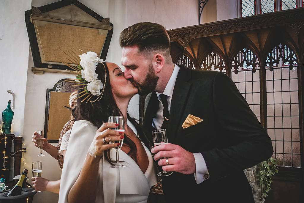 Their ceremony was held at The Flint Room – a former church that has since been turned into an alternative wedding venue, complete with mismatched vintage furniture, decor and even a prosecco bar. “The decadent meets eclectic meets spiritual venue was perfectly fitting for our ‘From Ibiza to the Norfolk Broads’ theme,” explained Laura. To further the connection between the two places, they included a unity sand ceremony in their nuptials. “We had a bottle of sand from both my favourite beach in Ibiza, and the beach we live right next to in Norfolk, which we each poured our containers into a bowl to signify our lives joining together.”