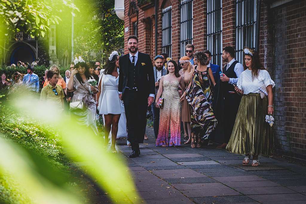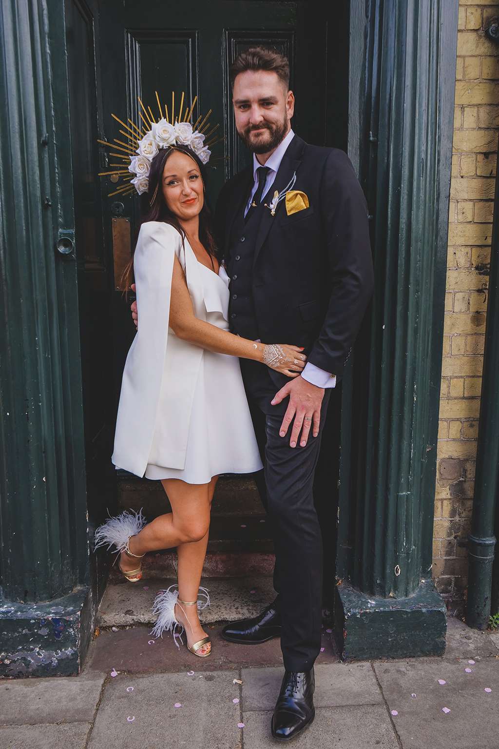 It’s also serendipitous that it’s named after a famous milliner who used to make hats in that very building, and even the light fittings are top hats and bowlers as a nod to the buildings roots! So, with Laura’s profession to boot, extravagant head wear was very much encouraged. Laura made all the headpieces for herself and her bridal party, naturally, but planning for the day really inspired her to go deeper into wedding day accessories and how to add personal touches. She customised her wedding shoes with feathers, and Jonathan reignited his love for illustration. “Not only was it so special that everything was made with love by us, but actually having these creative projects together in the time leading up to the wedding added an extra element of excitement.”