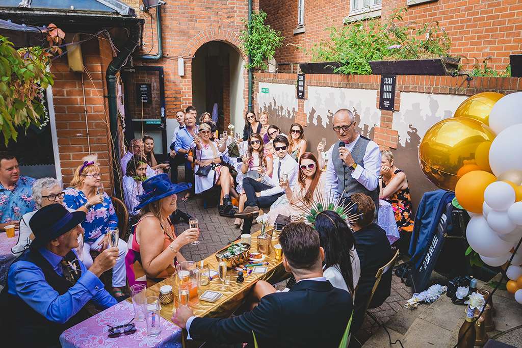 They were married exactly two months to the day after they got engaged, and amazingly, DIY’d almost every aspect. Laura is a milliner and Jonathan an illustrator, so they had creativity on their side! Their reception was held at the aforementioned pub – the Rumsey Wells in Norwich – which was extremely special for the couple to be able to celebrate their wedding in the place that they met. During the speeches they were literally pointing to the very spot they met and fell in love!