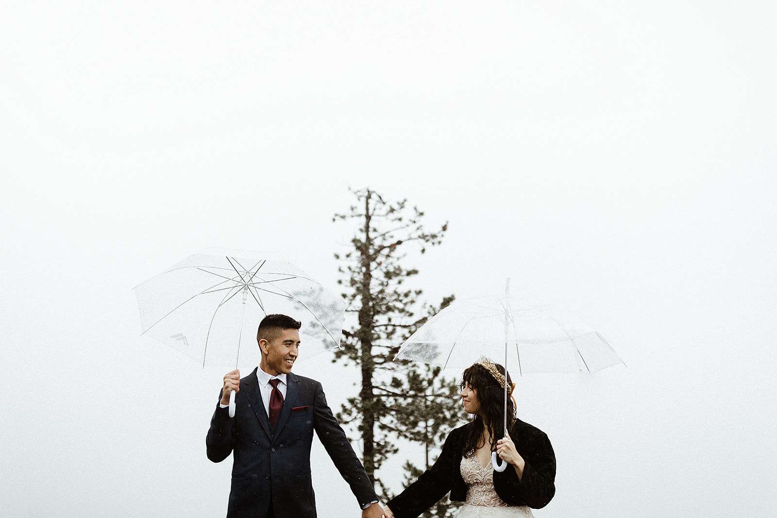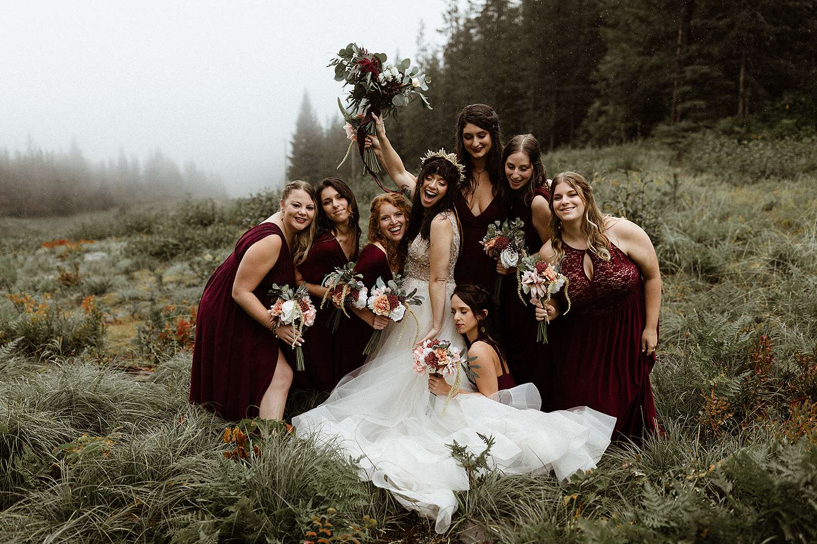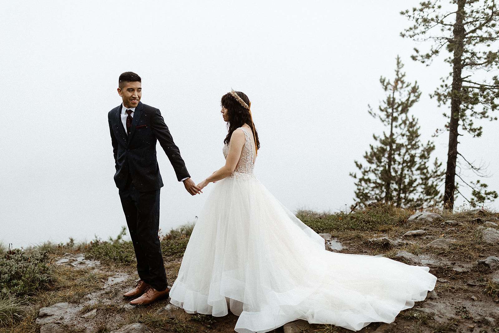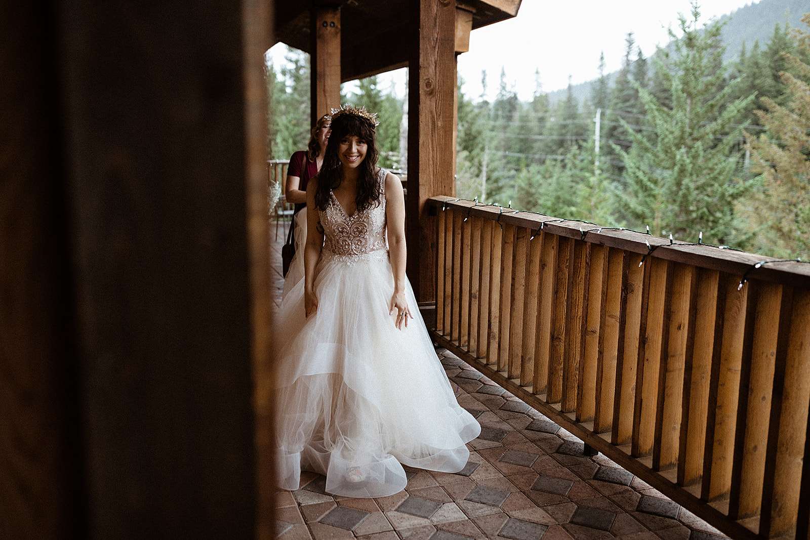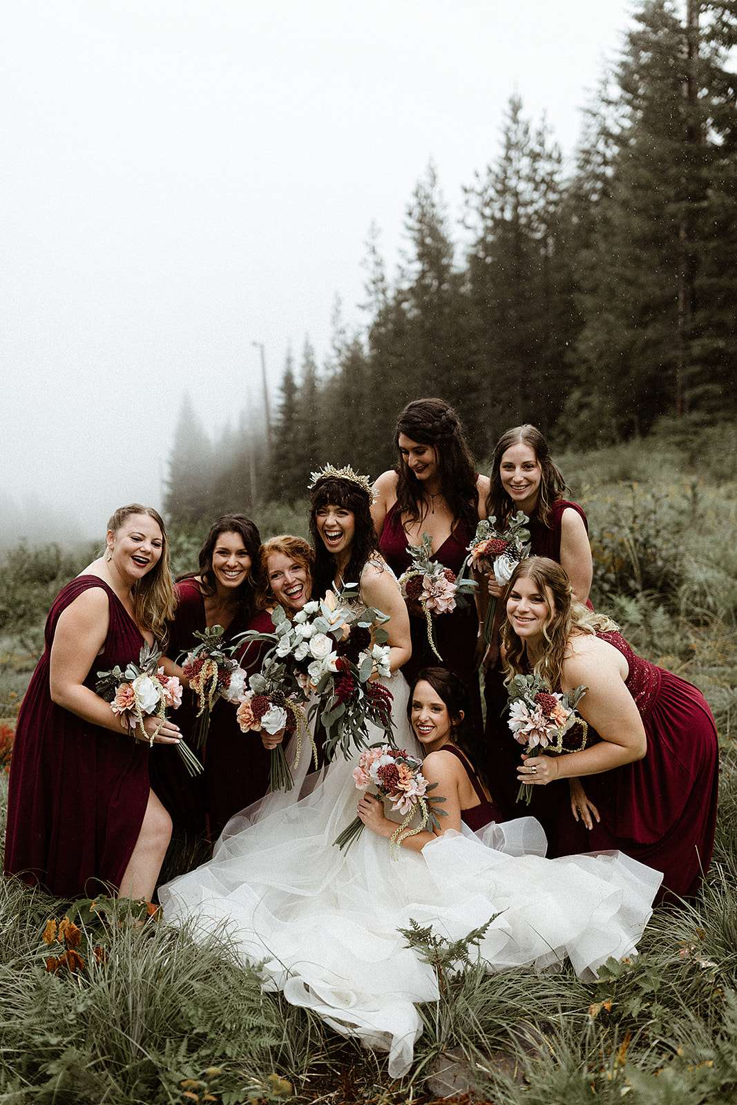 “I think there were a lot of things that made our wedding unique”, explained the bride. “We married a day before the equinox and the shift is season was extremely present (as I’m sure you could see by our foggy and rainy photos). We married on the side of a mountain overlooking a volcano (which unfortunately couldn’t be seen because of the fog). We were married on indigenous sacred land and when we arrived at the base of the mountain a Native tribe was having a ceremony asking for blessings from the earth for rain and protection for salmon during their travel in winter months.”