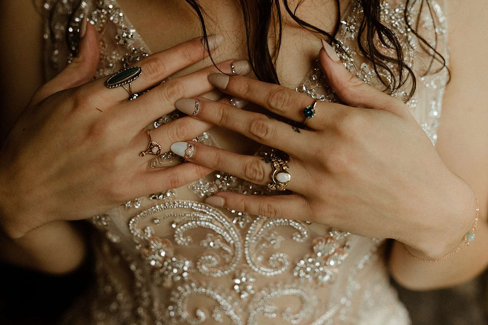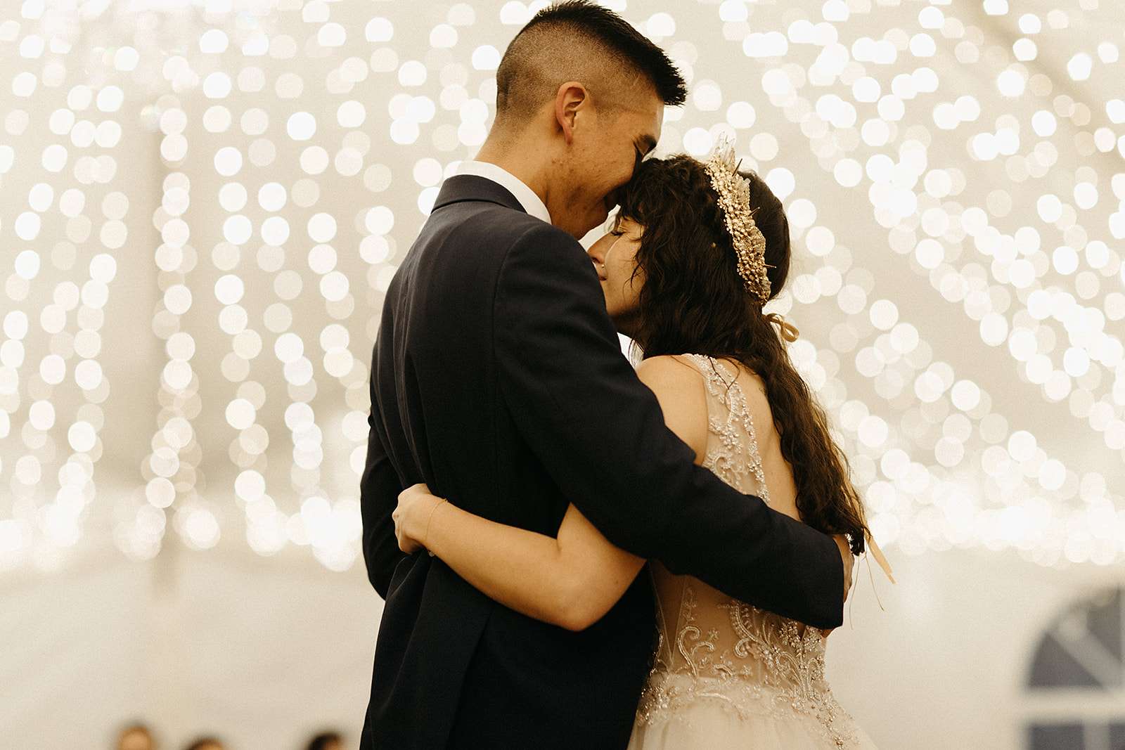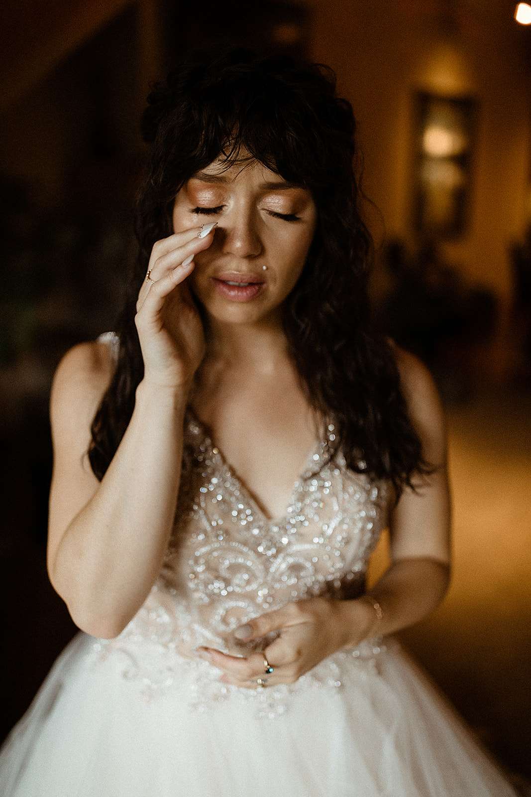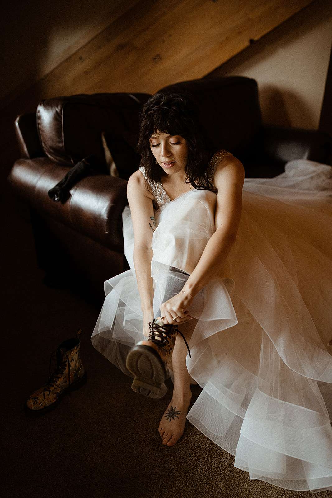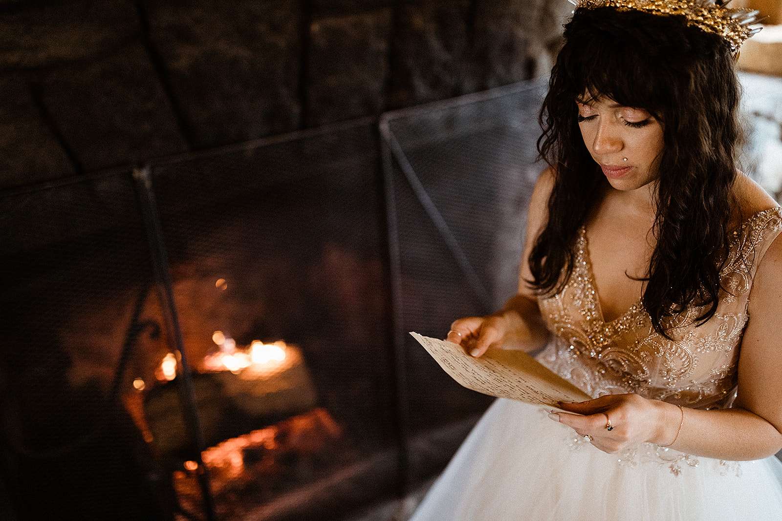 “I think there were a lot of things that made our wedding unique”, explained the bride. “We married a day before the equinox and the shift is season was extremely present (as I’m sure you could see by our foggy and rainy photos). We married on the side of a mountain overlooking a volcano (which unfortunately couldn’t be seen because of the fog). We were married on indigenous sacred land and when we arrived at the base of the mountain a Native tribe was having a ceremony asking for blessings from the earth for rain and protection for salmon during their travel in winter months.”