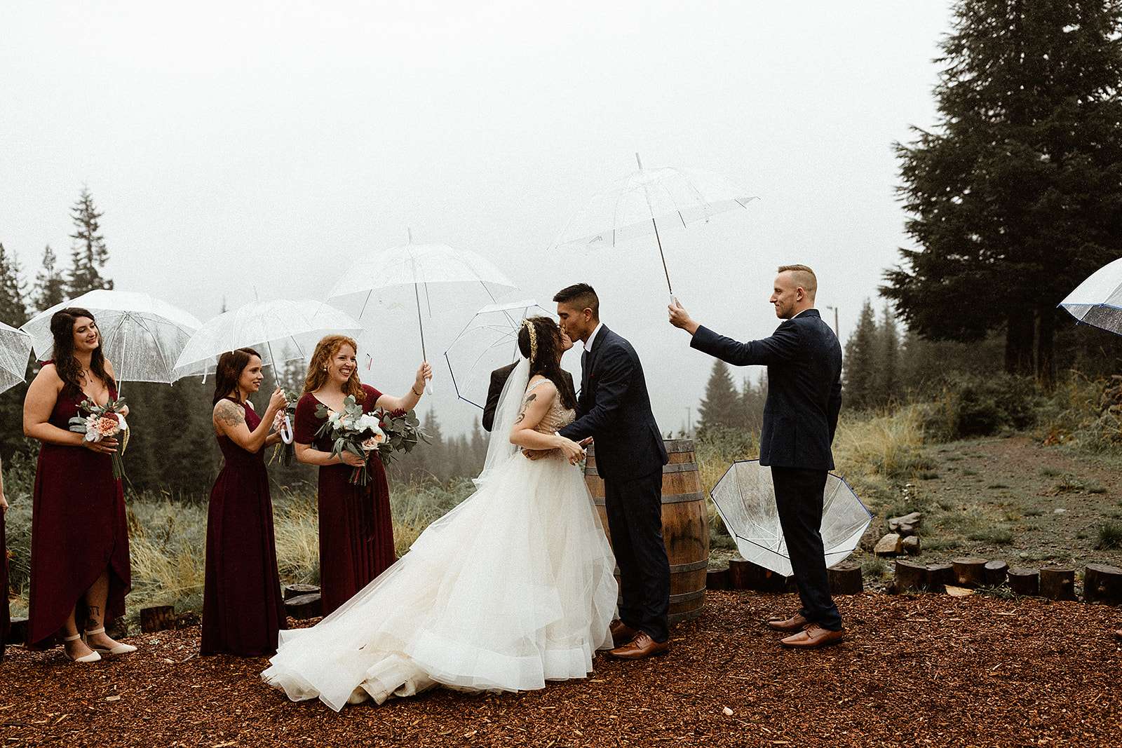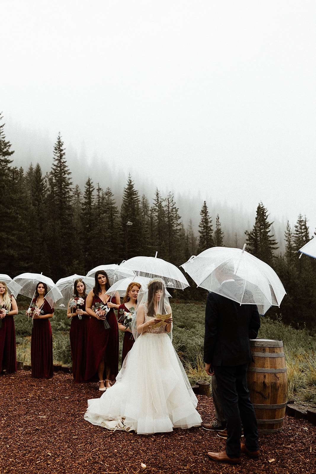 Worried about rain on your wedding day? Well, don’t! Not only is it something you literally can not control, but Ashley and Andrew’s day proves that stereotypical ‘bad’ weather can make for the most beautiful images and special moments. They were married in October at Mt Hood in Oregon. They wanted their day to have a autumnal fairytale wedding with whimsical touches. They were inspired a lot by nature and the beauty of the area.