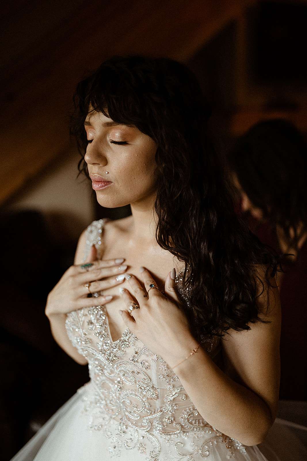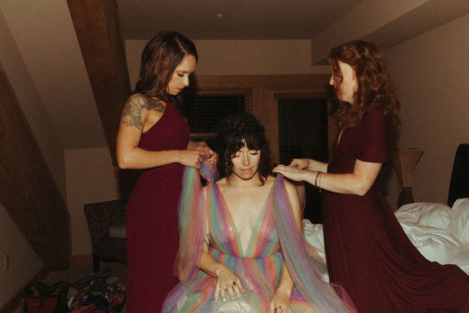 “Our advice to others would be to have fun planning and don’t lose sight of the real purpose of this day when the stress kicks in”, Ashley concluded. “When the actual day comes don’t be afraid to say ‘fuck the plan!’ if you need to – it rained our entire day and I could have been upset about the fact that my hair looked like a mop; that the venue we specifically rented for the view of this stunning mountain could not been seen, and all the cool features (slides and ski lift) could not be used – but that’s not the point. When the day comes nothing else matters but the love you share. Don’t allow yourself to even entertain letting the ‘mishaps’ effect your special day. Rain or shine make it yours; cherish it, if you allow it to be it’s going to be the best day of your life. Also, ditch your phone for the whole day. Stay present. We were so happy we did this.”