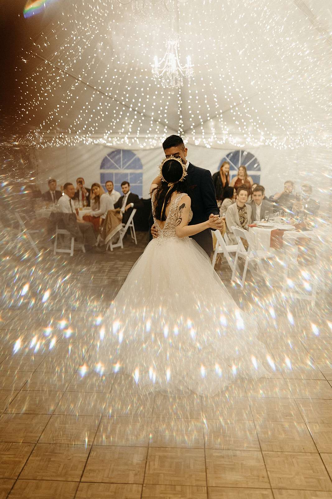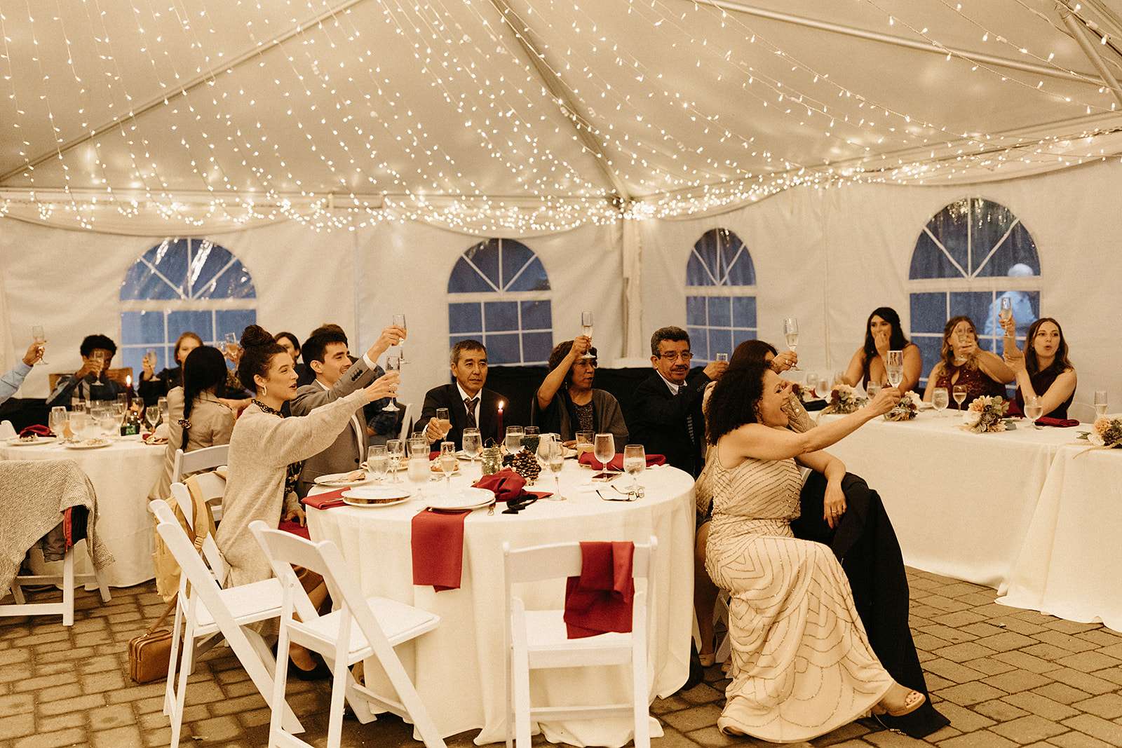 The ceremony was held at the base of the mountain and for their reception they erected a white tent, adorned in beautiful lights and chandeliers. All of the décor and table settings were made by the bride and her bridal party and everything they could was either done by the couple themselves or married by close friends or family members.