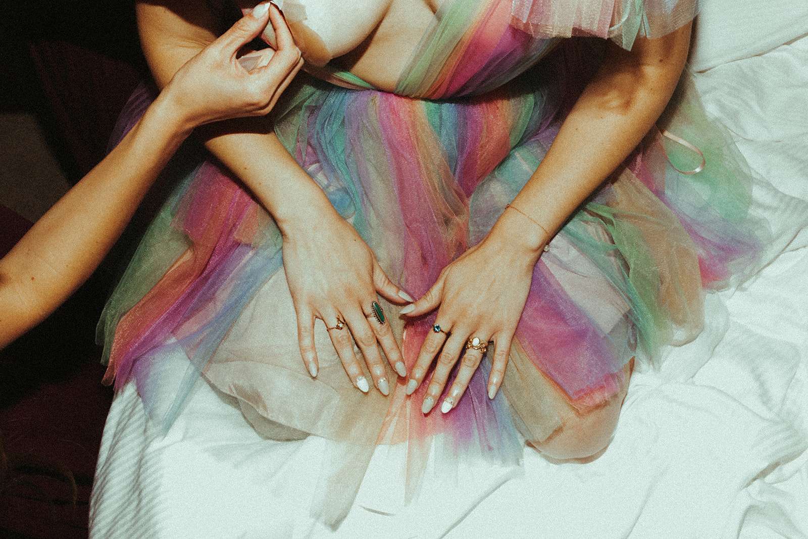 “We didn’t follow any ‘rules’ for our day”, she continued, “we just wanted it to be an extension of ourselves, and our love for each other. We basically cut all florals out of the wedding except my bouquet which was arranged professionally.”