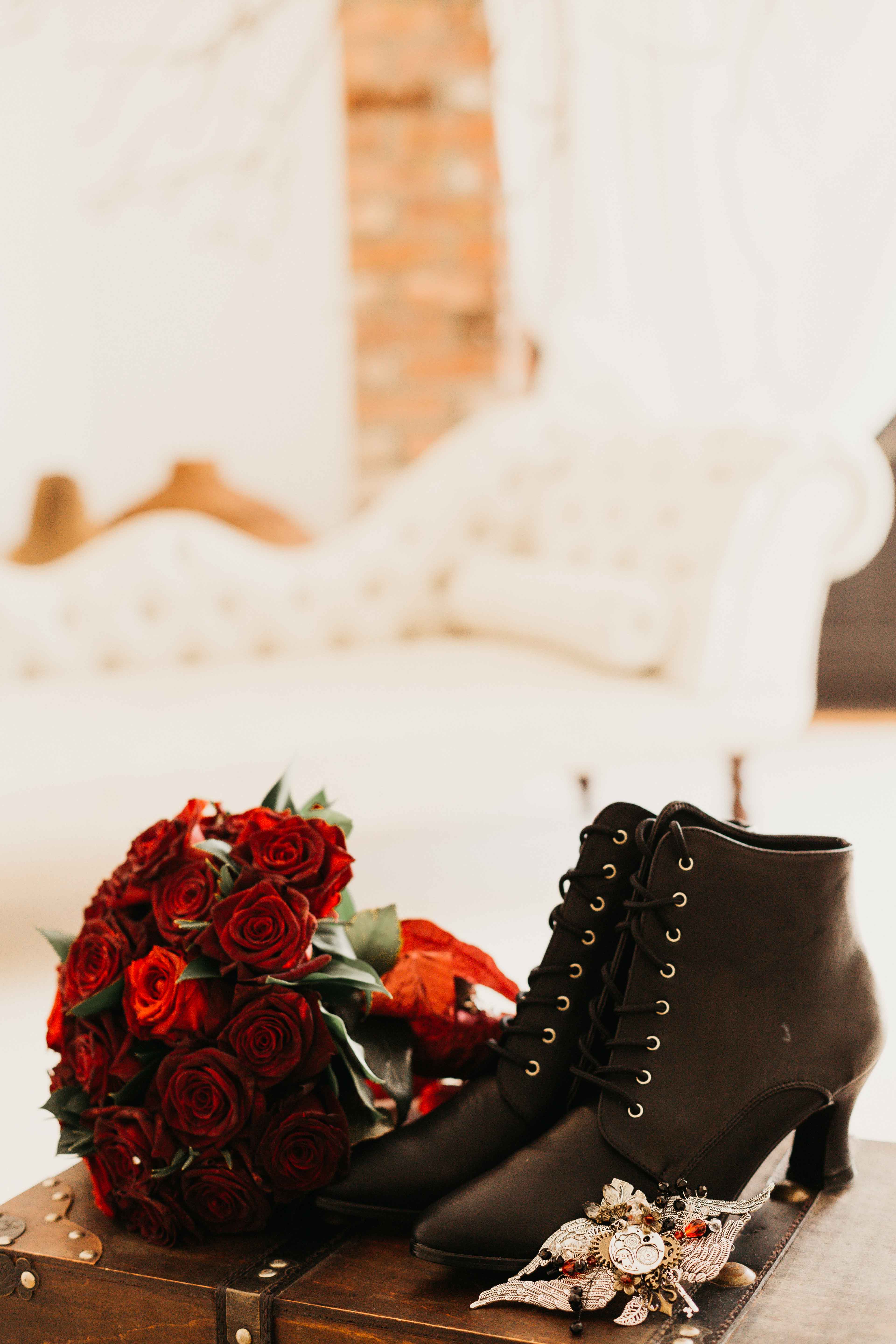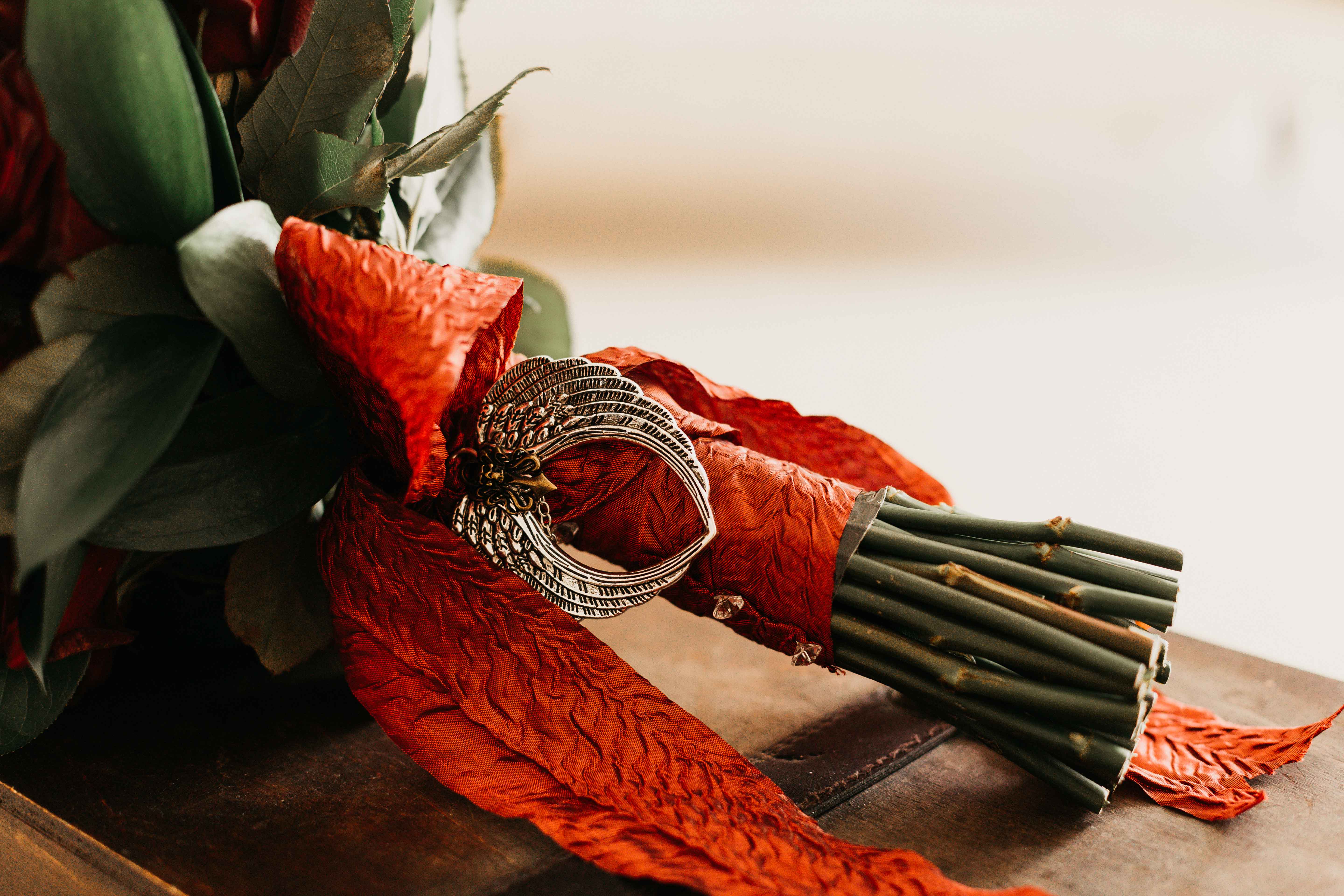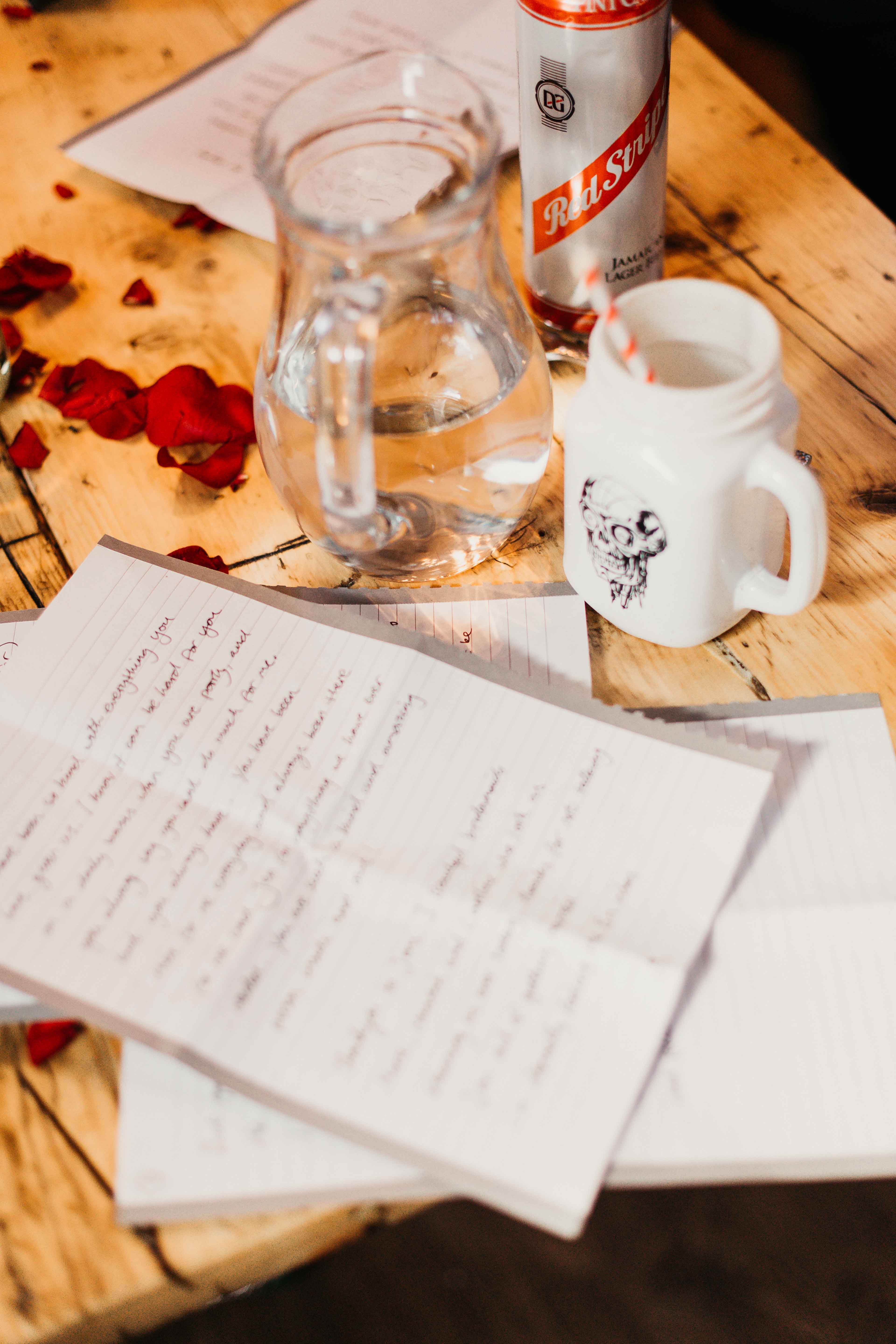 Their ceremony was a quick, informal affair with red petals scattered everywhere. Jen walked in to Ecstasy of Gold – Metallica’s entrance theme. Joe’s nephew read lyrics from A Love Unreal by Black Label Society and the bride’s sister-in-law read an extract from Ernest Hemingway. They exchanged rings (black, of course) and signed the register to songs by Black Label Society before kicking off their very metal wedding reception with personalised metal-themed cocktails served out of a VW van.