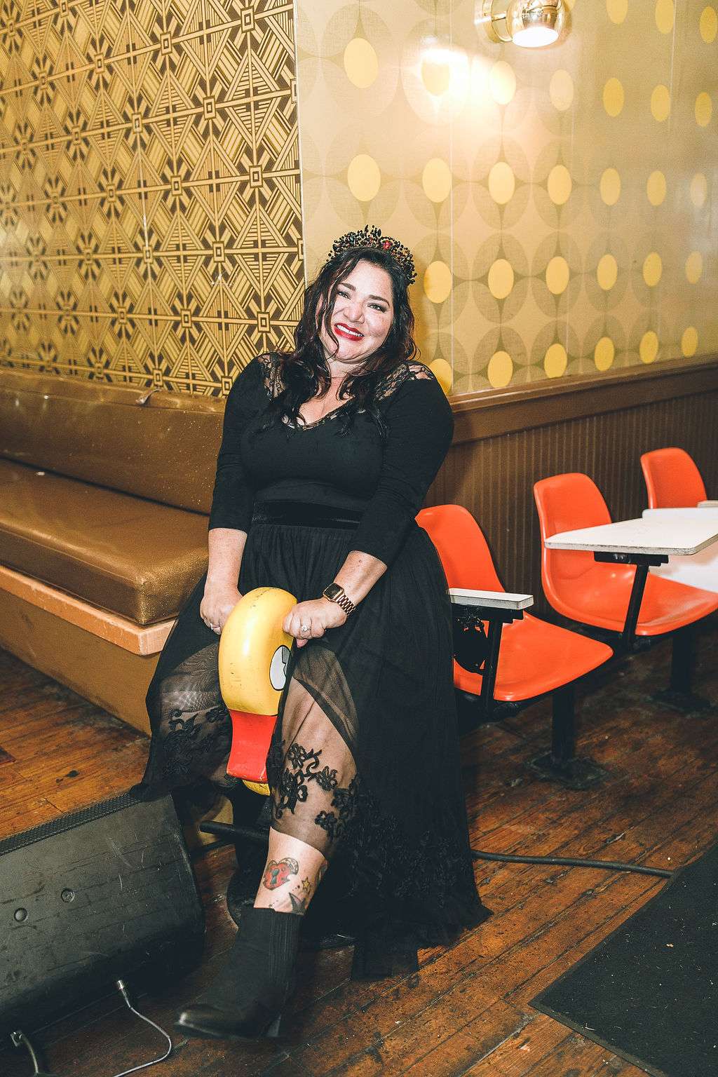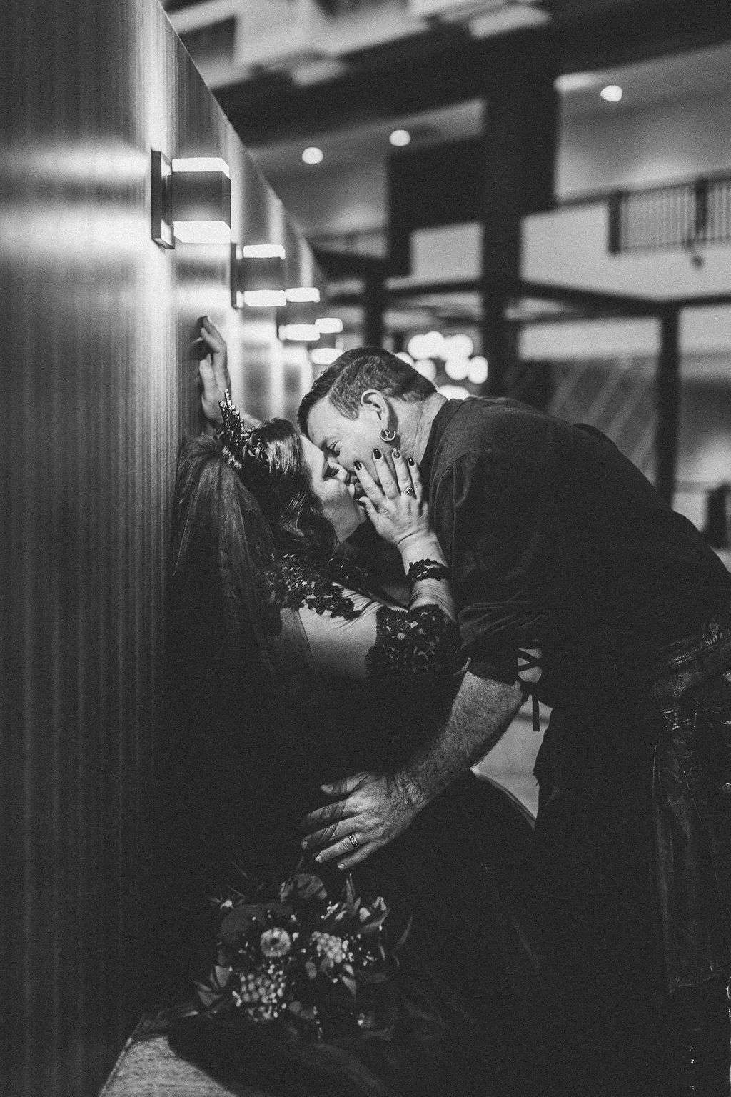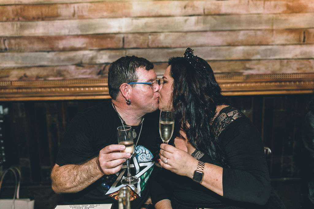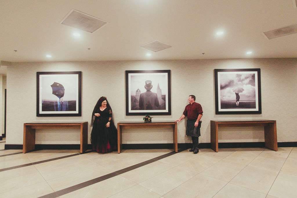 They skipped most traditional wedding elements like invitations, a cake and gifts, instead focusing on creating a memorable experience to enjoy with their friends. Rather than a formal reception, the ceremony was followed by drinks at a nearby lounge, then dinner and they wrapped up the evening with a haunted pub crawl.