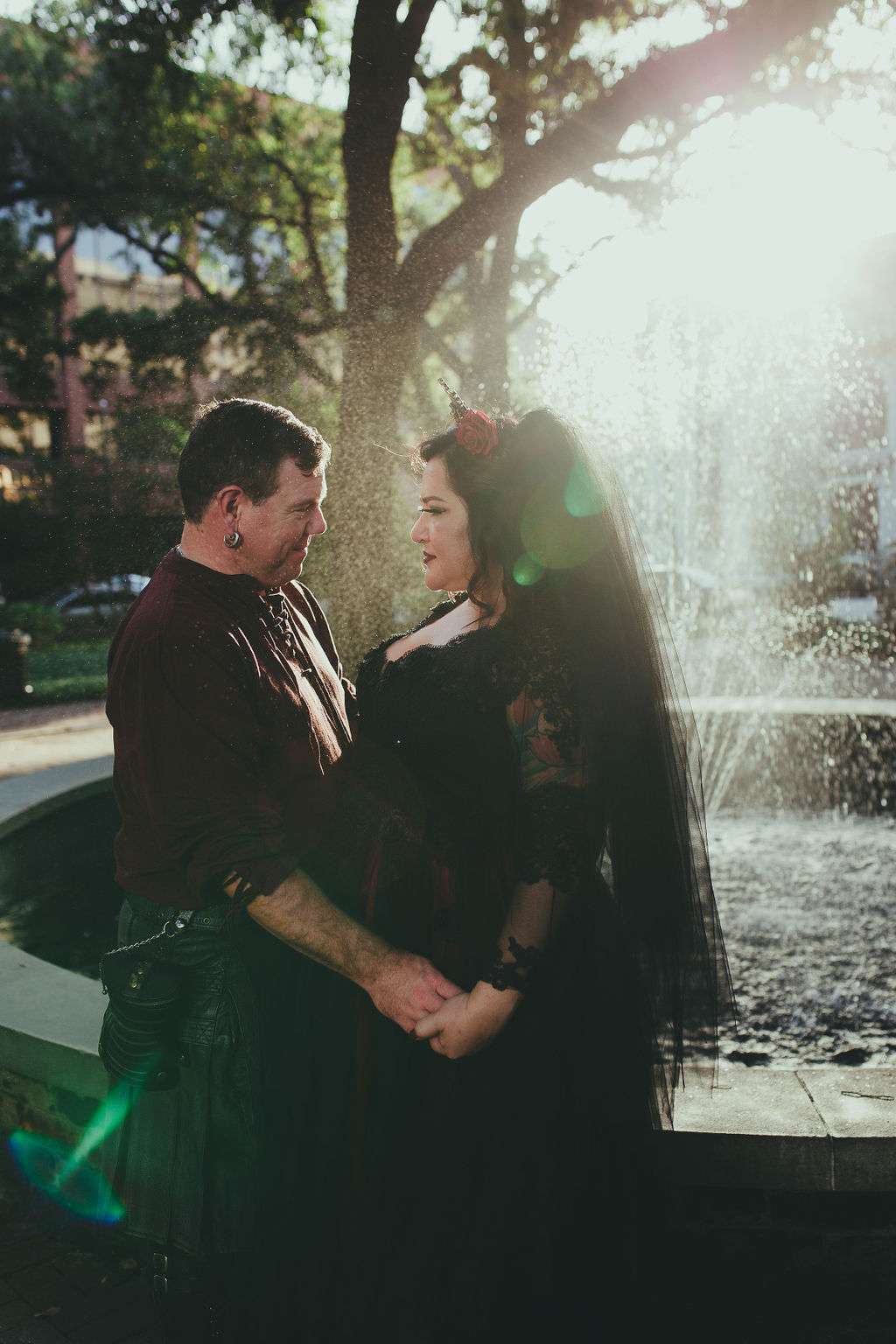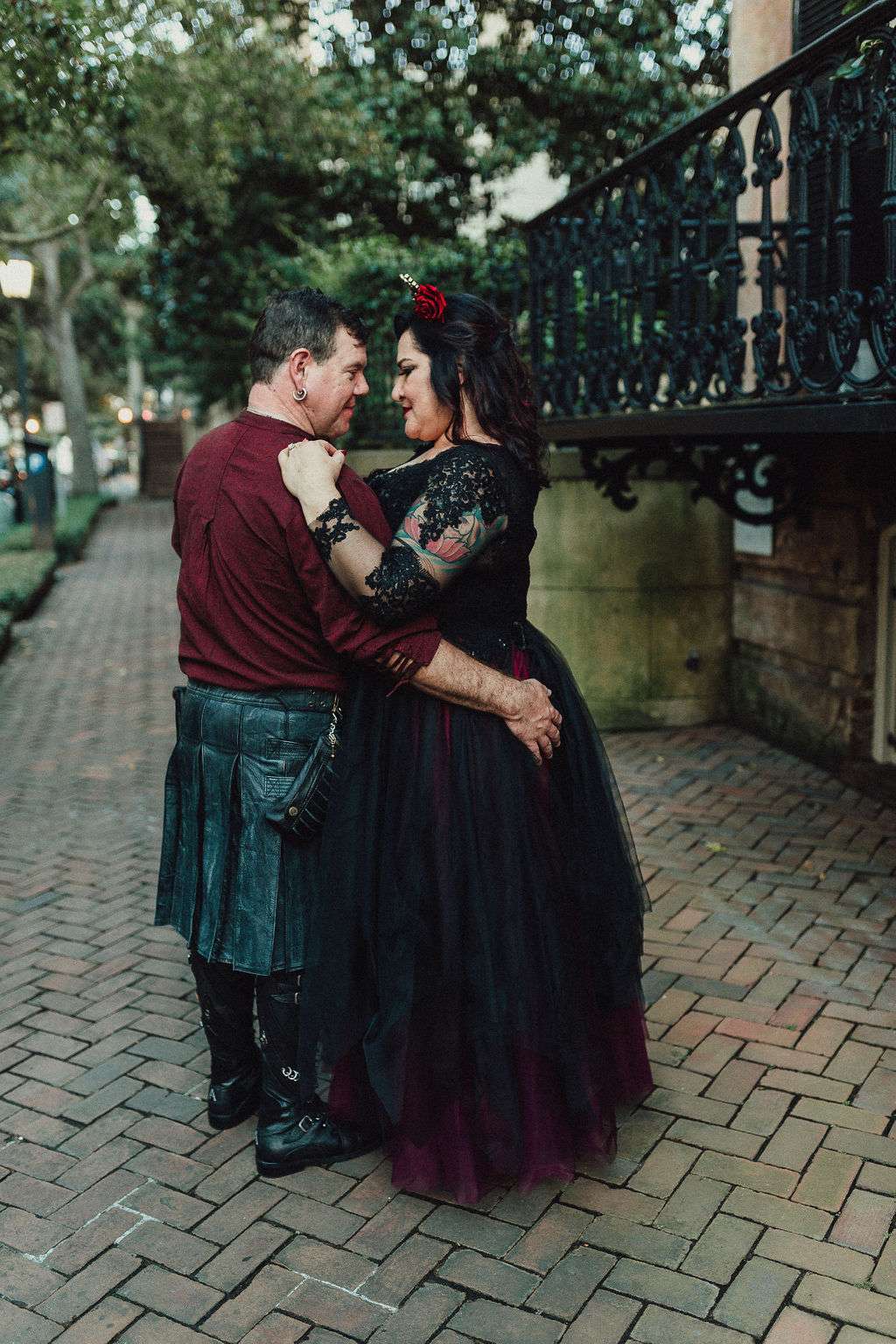 Tim and Natasha were inspired by the city of Savannah itself for their October wedding. They wanted an intimate, destination wedding to celebrate simply with their closest friends in a manner that was true to them and the things they enjoy; great food, craft cocktails and fun! “The city of Savannah was the perfect setting for our vision of an intimate, darkly romantic celebration,” said Natasha.