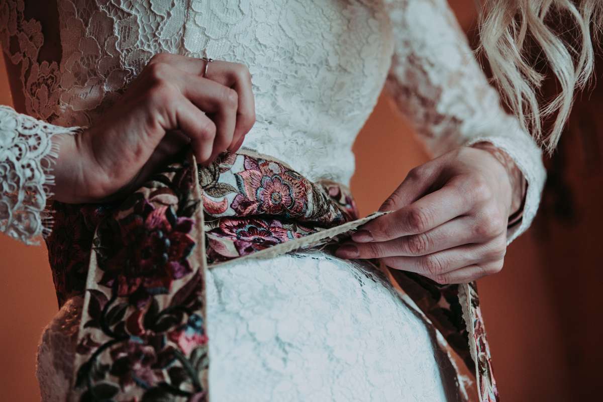 Kristý wore a dress which was the second she tried on, 20 minutes after she started looking! The boutique she visited was closing so the dress was reduced by 80% and it was just what she was looking for. “It was €300 and exactly what I had in mind, it was incredible and I didn’t hesitate buy it. I wanted to give it a special touch so I searched for a traditionally handmade embroidered dupion sash. I found beautiful pieces on marlen.cz. My party dress was comprised of secondhand pieces.”