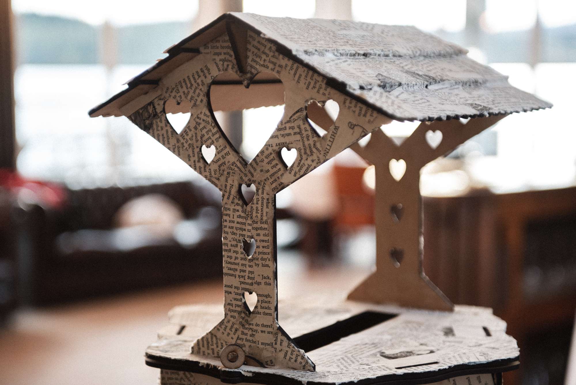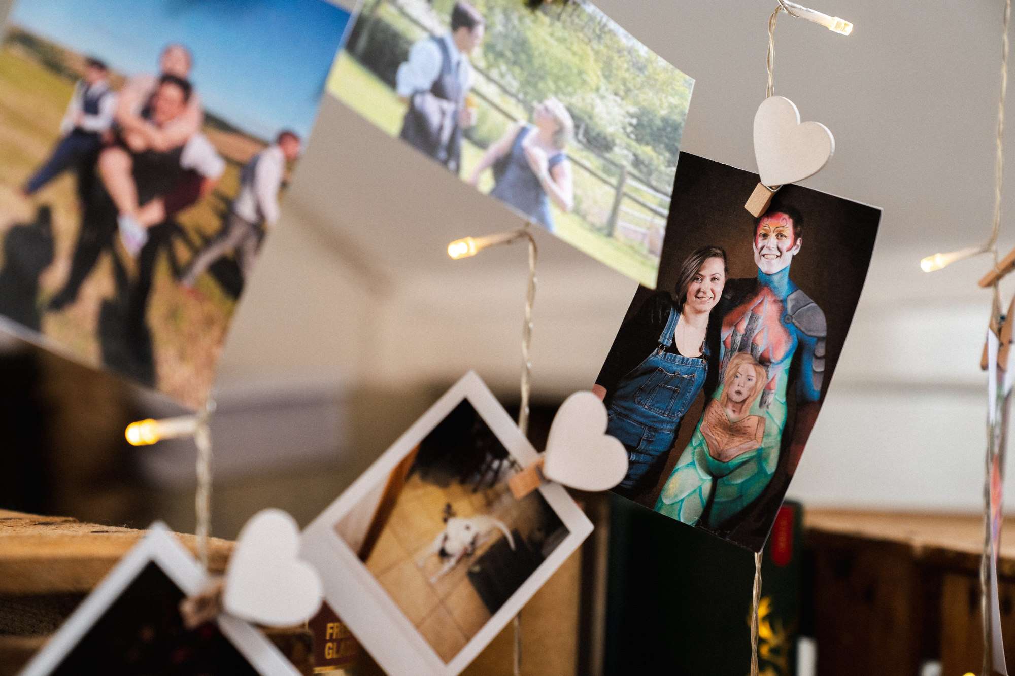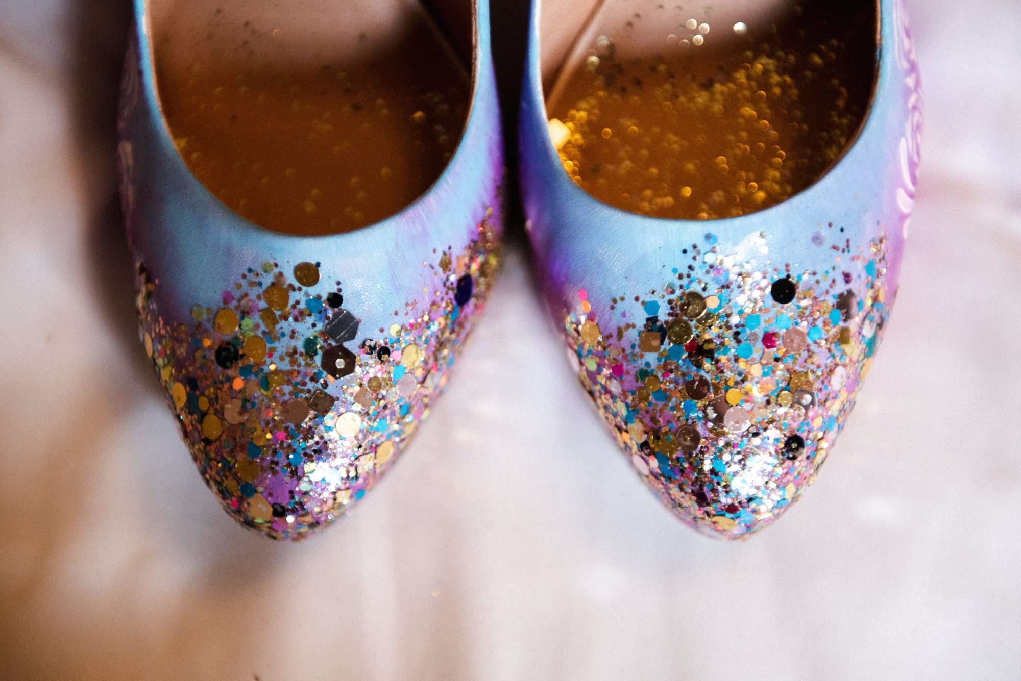 “My dress was a nice dusky rose colour with a pale blue top corset to combine the colours in our two family tartans”, she explained. “I also LOVE fairies and fairytales, and my favourite story in the whole world is Peter Pan, so I painted an amended Peter Pan quote on my shoes, and asked Rosie to sew a crescent moon with some stars, and the second star to the right to be bigger than the rest as a reference. We also decorated the wishing well with pages from a fairy story book we found in a charity shop when we went to give notice, and used the same book to make our confetti cones.”