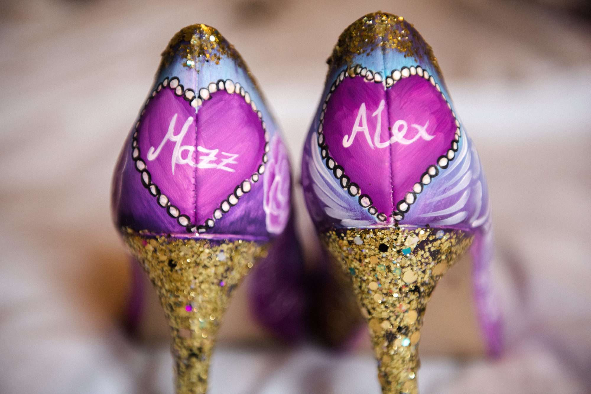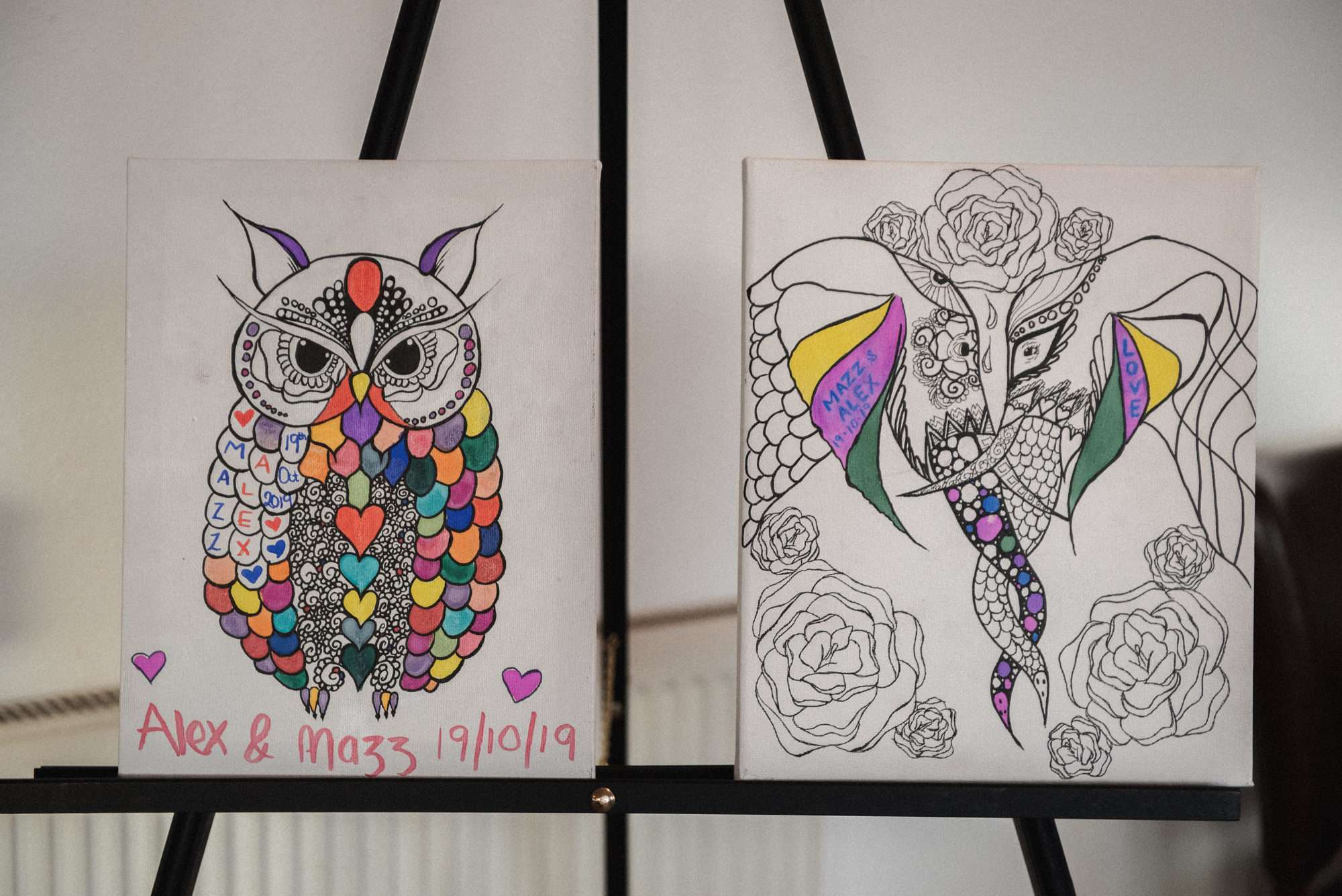 They did do a LOT of DIY though – from the bride’s shoes, which she painted herself, the colouring-in boards (which were a huge hit with their guests, young and old alike!), the signage, the wishing well, the confetti cones and almost all the reception and table decorations. “It was amazing to see everything come together!”, she said, “It was also lovely to see Alex get excited about things I had no idea he would even take an interest in, like stationery and details! All the things in the lead up to the wedding like making our rings and everything becoming ‘real’. My sister got me Kat’s book for Christmas which was amazing for inspiration, but also really satisfying to tick things off along the way!”