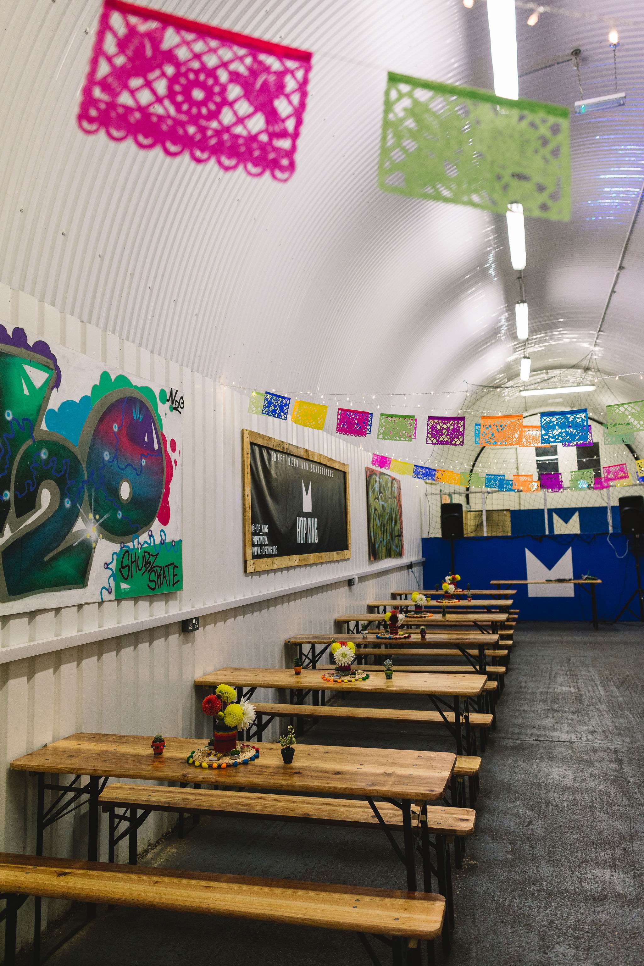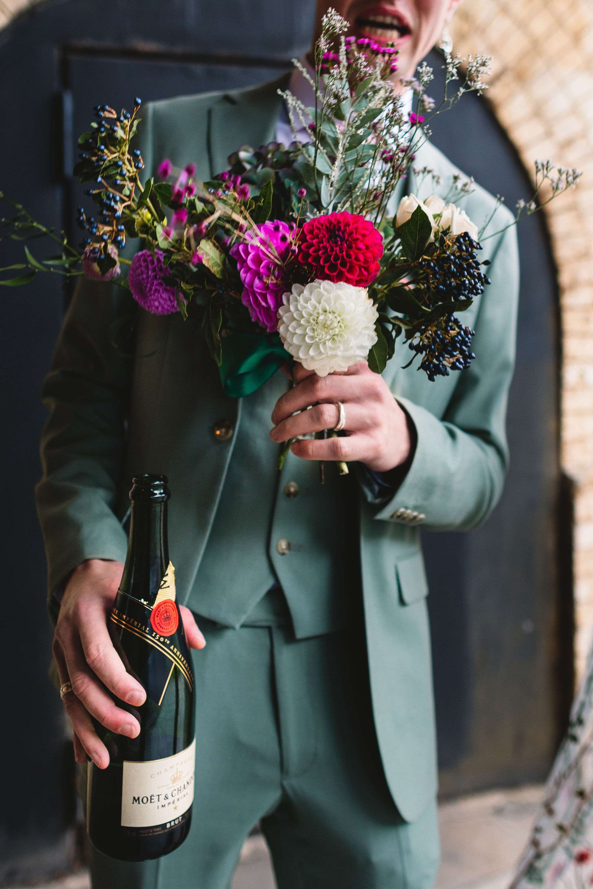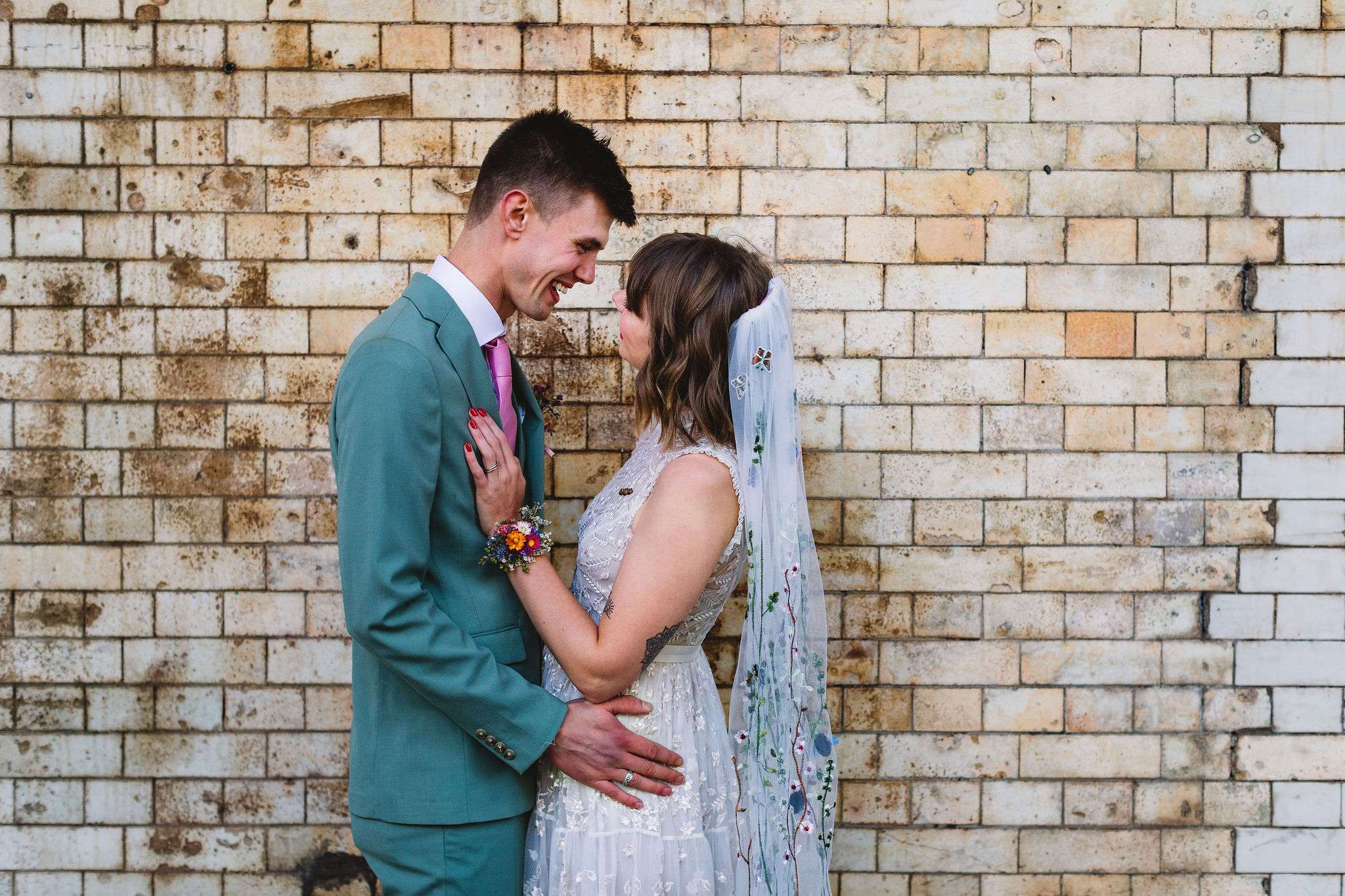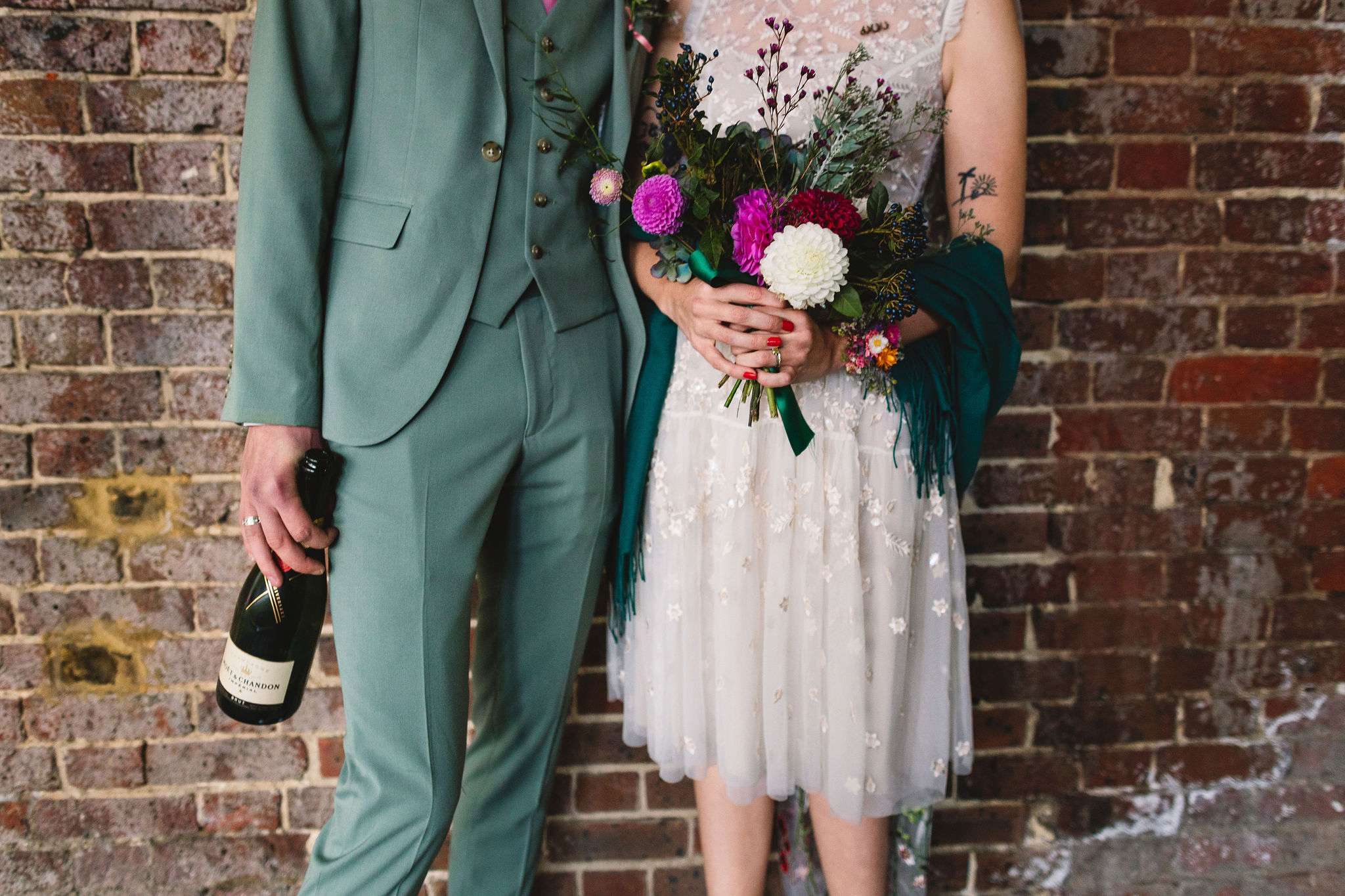 Their reception was held at Hop Kingdom in London, this nod to their love of skating was actually a happy accident – their original pub venue fell through a couple of weeks before. They did a lot of stuff themselves – they made all their decorations, from pom pom trimmed place mats to decorating plant its to fill with succulents and cacti. Jake sanded down an old skateboard to use as a guestbook and played DJ for the evening, and Suzanna took a flower arranging class in order to do her own flowers for the day, heading to Covent Garden Flower Market at 5am the day of the wedding and making bouquets, corsages and table flower arrangements themselves.