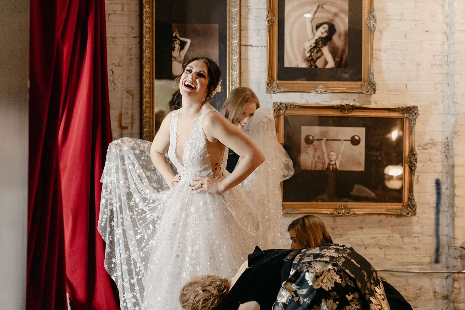 It was held Marathon Music Works in Nashville, Tennessee – a venue the couple used to go to concerts together at during school. They used sentimental details throughout their day; they were married on the vintage rug that Abby played on as a child in her grandparents house, Evan used a stone from Abby’s late grandmother’s wedding ring to incorporate into her band, and her sister read a letter from their late grandmother that she had sent to her on her own wedding day in 2012 – it was dated January 19th, Abby and Evan’s wedding date.