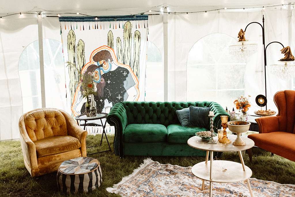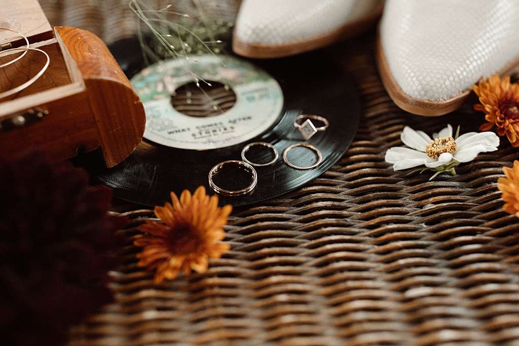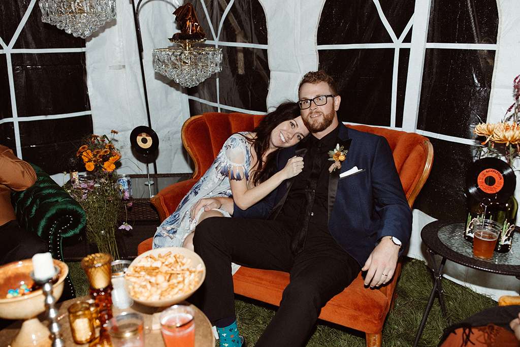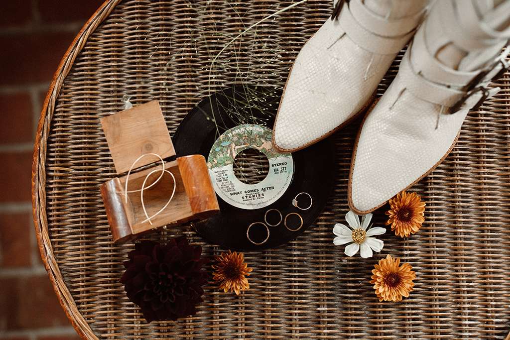 Allie and Brian describe their first moments of falling in love as ‘like the same existential self-discovery that so many people waxed lyrical about in the late ’60’s and early 70s’. So, coupled with their love of music from the same era (cosily nestled between the folk and Rock n Roll genres), they used this as a starting point for the shaping their wedding around that same kind of ‘groovy, grounding energy.’