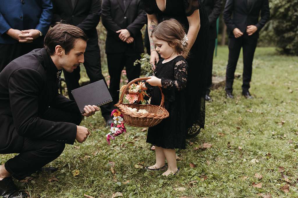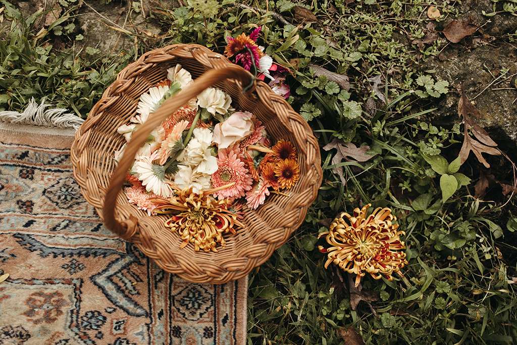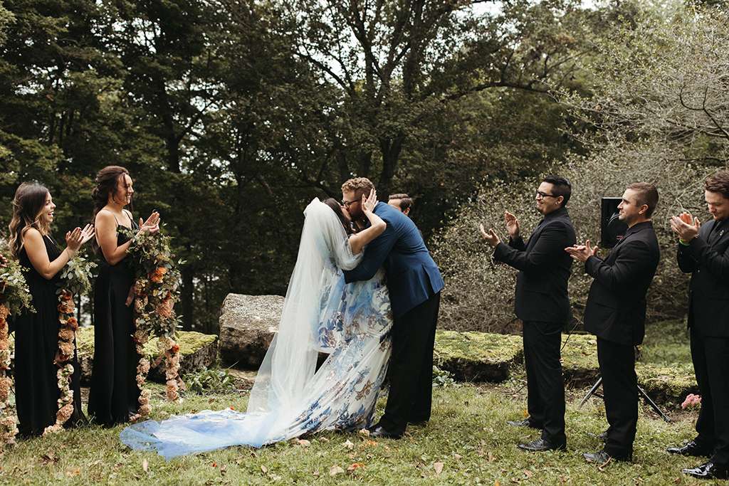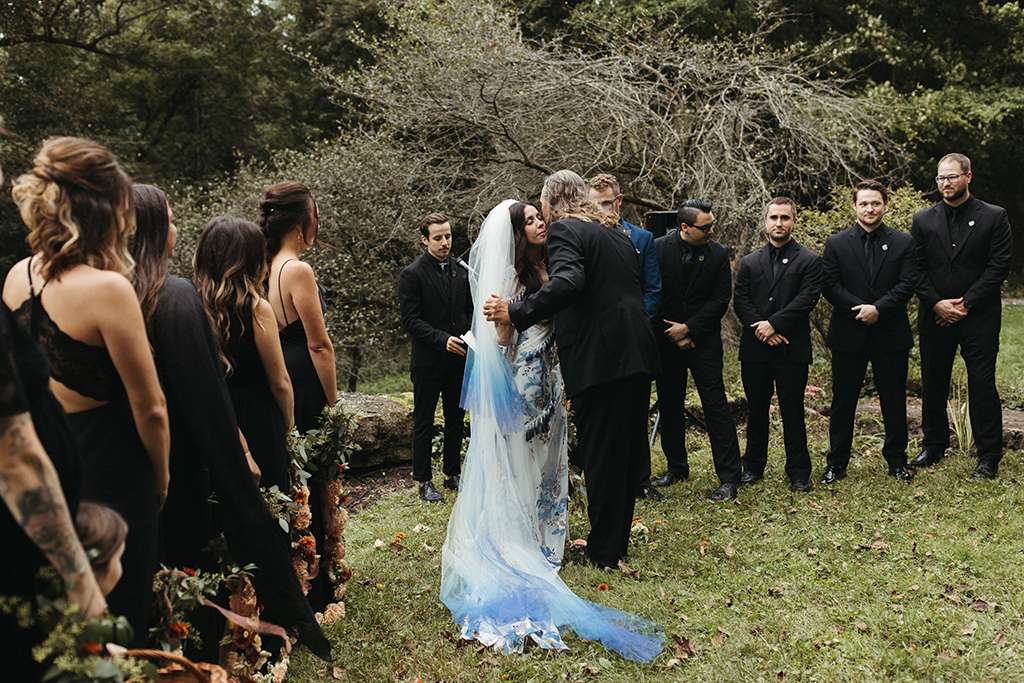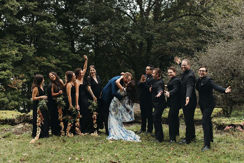 Allie and Brian describe their first moments of falling in love as ‘like the same existential self-discovery that so many people waxed lyrical about in the late ’60’s and early 70s’. So, coupled with their love of music from the same era (cosily nestled between the folk and Rock n Roll genres), they used this as a starting point for the shaping their wedding around that same kind of ‘groovy, grounding energy.’