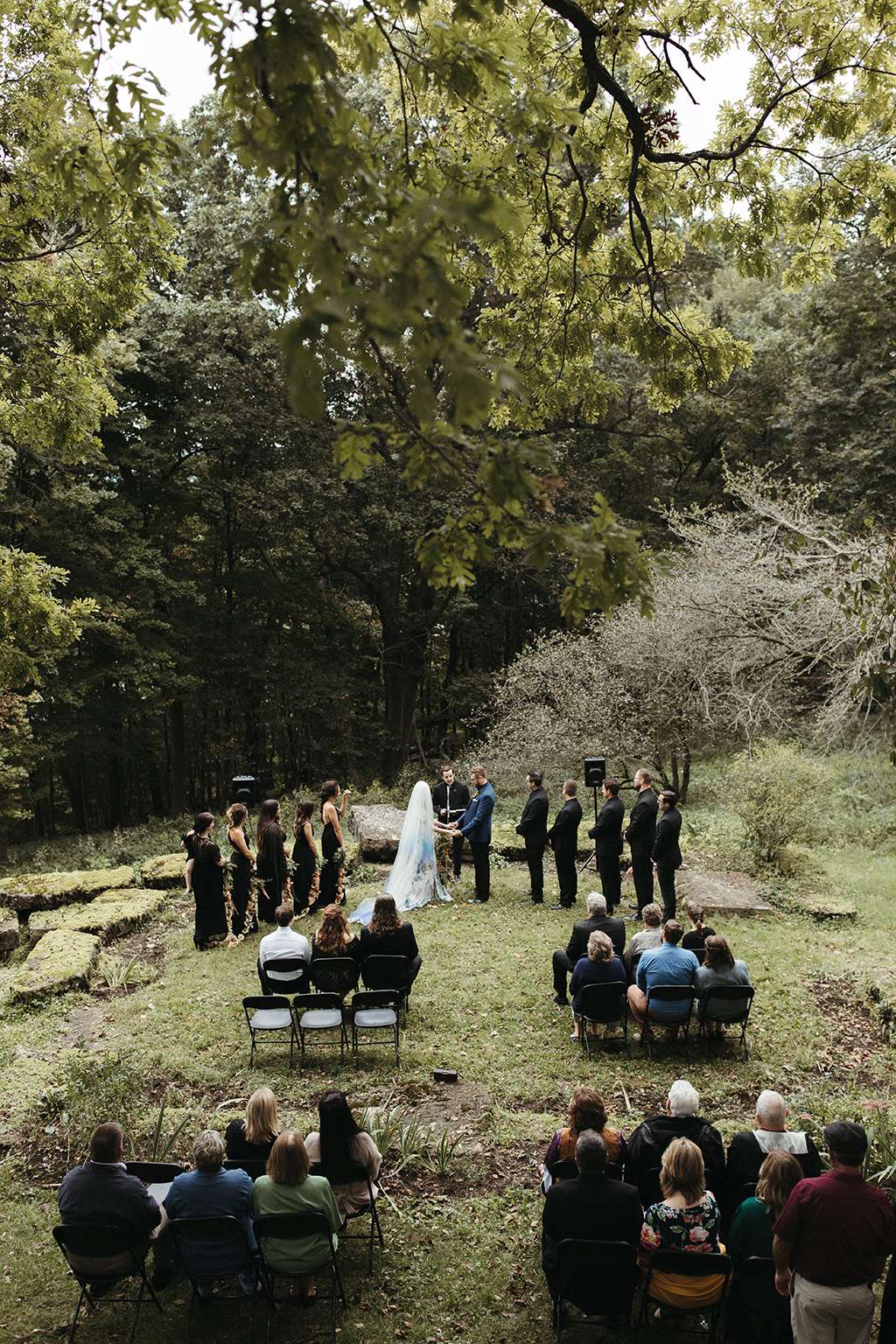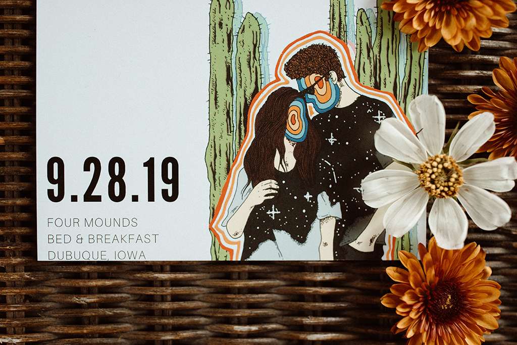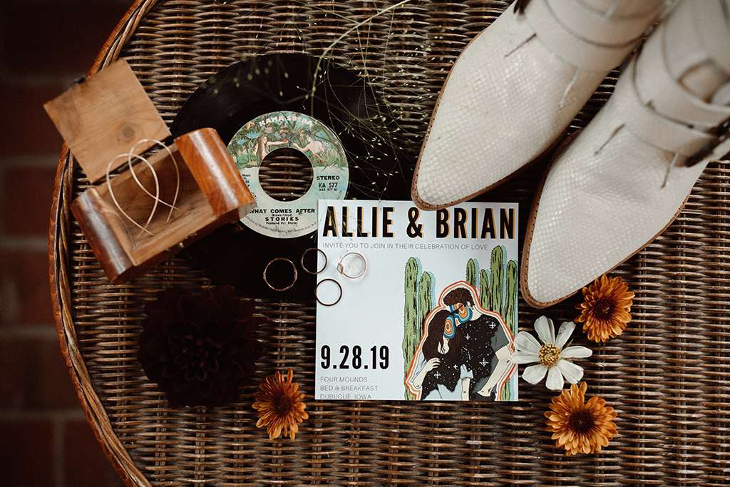 They also have the benefit of not really knowing what’s ‘expected’ from a wedding – neither had attended that many, so they were able to plan their day free from the weight of societal expectations. They simply followed their hearts and told their wedding party, officiant and families to do the same. “We wanted the weekend to feel like a music festival or camp-out experience,” explained Allie. They hit up a booze cruise with all their friends a couple of days prior to the wedding, and their wedding party stayed for the weekend at the bed-and-breakfast venue with them. “It was important to us, since we were celebrating in the city that Brian used to live in when we first fell in love, that we really live it up the way we used to back in our Dubuque days.”