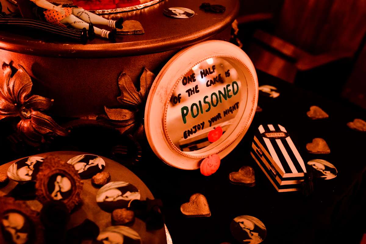 The Nightmare Before Christmas cake and all the flowers were made by friends and family members. For the invites and paper goods, they went DIY too, ordering little coffins and putting green chocolate zombie fingers with tags on for a Save the Date. The invites themselves were made to look like a Ouija board. “We saved a lot of money by doing these ourselves, plus who wouldn’t want to eat a zombie finger!?” Rachael said. “We also saved a lot with our friend Debbie doing the flowers and Aunty Chrissy making our dream wedding cake. They both did an amazing job. We also had constant help from our family buying trinkets and being absolute gems helping to decorate everything. We are so lucky to have their help, it meant a lot that everyone really got involved.”