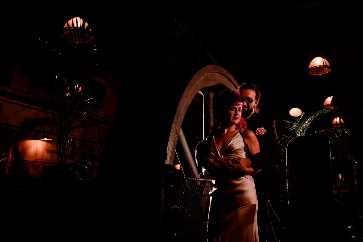 Getting married on October 31st, Rachael and Olly were always going to have a Halloween inspired day. In particular, they were influenced by Tim Burton and The Addams Family. Rachael chose her dress because it reminded her of something Dita Von Teese or Morticia Addams might wear, and Olly’s outfit, pieced together from various places, was reminiscent of something Gomez Addams might be seen in.