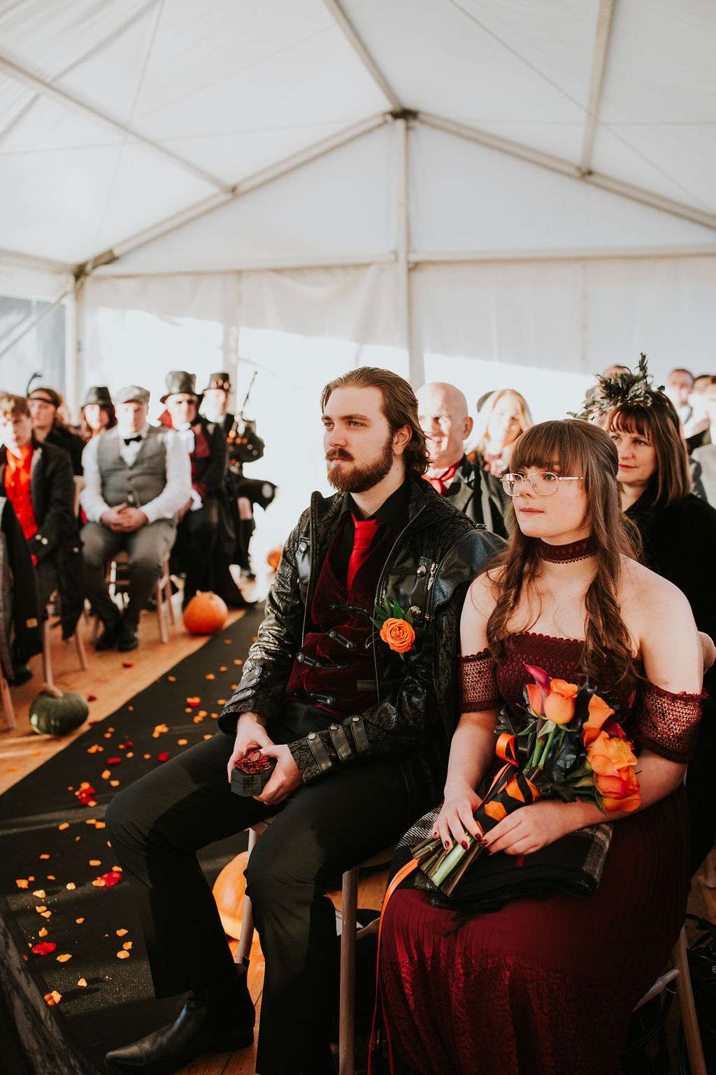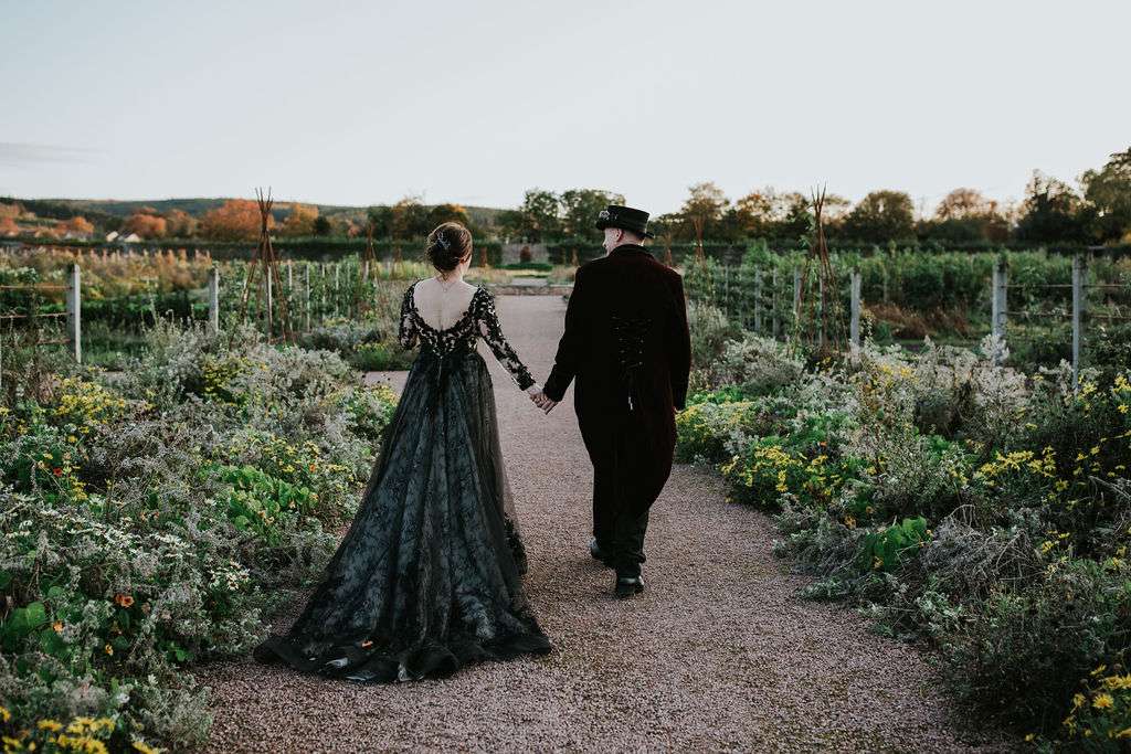 From a gothic inspired wedding dress to the use of Scottish wedding traditions, Halloween touches to a sparkler ‘confetti shot’, they used lots of different elements to make the day their own. They also wanted a day that was fun for their guests – and why not give them an excuse to dress up, too!? They stated costume desires on their invites and included the tagline ‘be as devilishly dapper as you dare!’