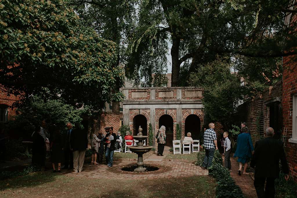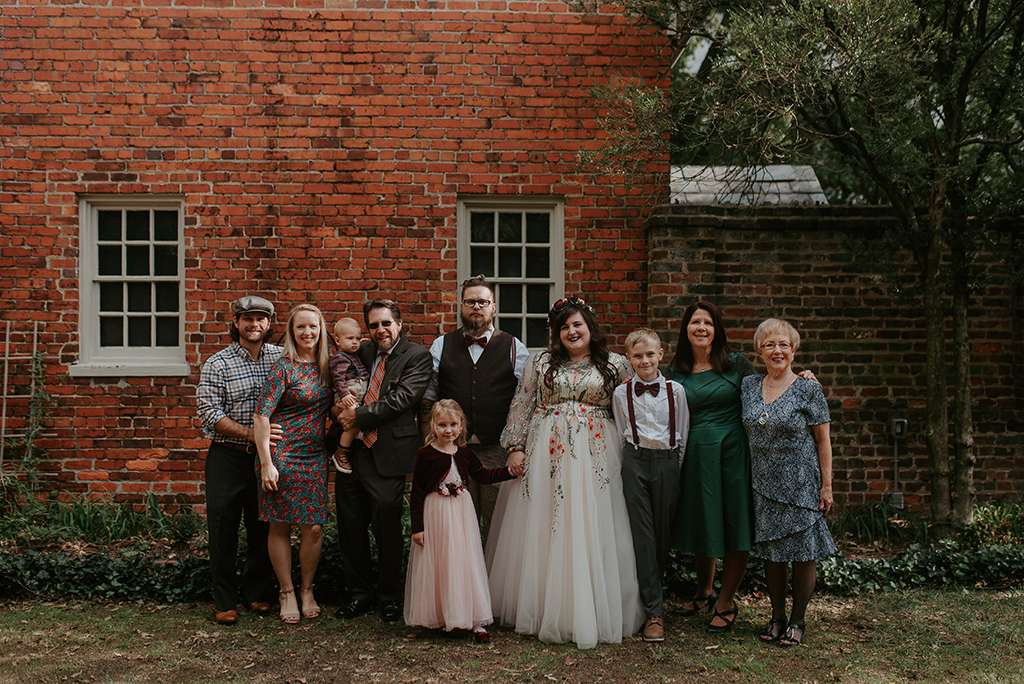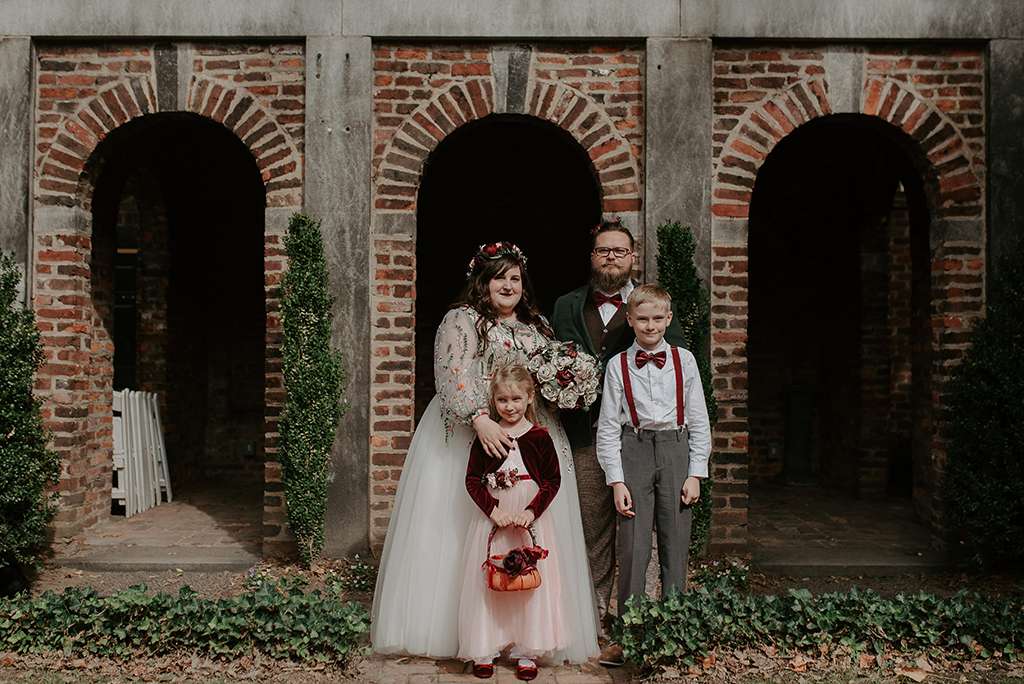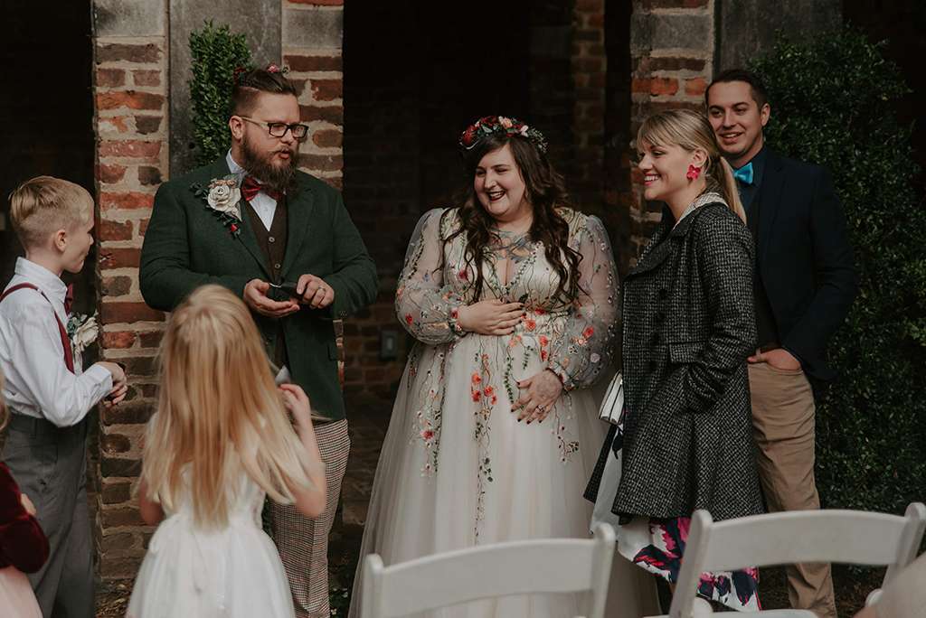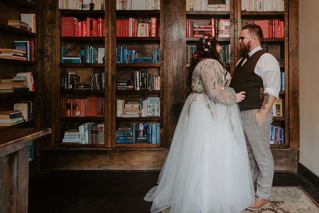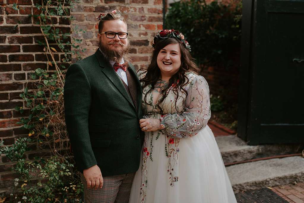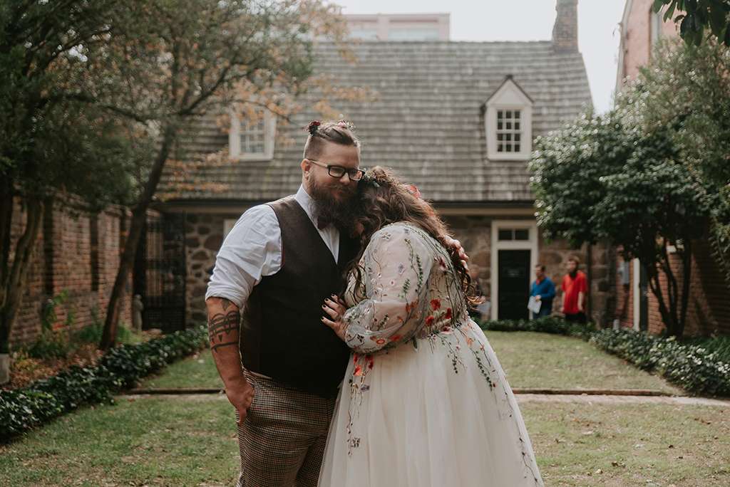 They picked two unique venues close to their bibliophilic hearts; their ceremony was held in the enchanted garden at the Edgar Allan Poe Museum in Richmond, Virginia. Faith was walked in by both her parents. They included vows to their children as well as writing their own vows to each other. These included lots of jokes between them, and Shawn promised never to wear cargo shorts again (after turning up to their first date in them… Faith almost didn’t go out with him again!) “Our ceremony was short, sweet and personal – exactly what we wanted,” she said.