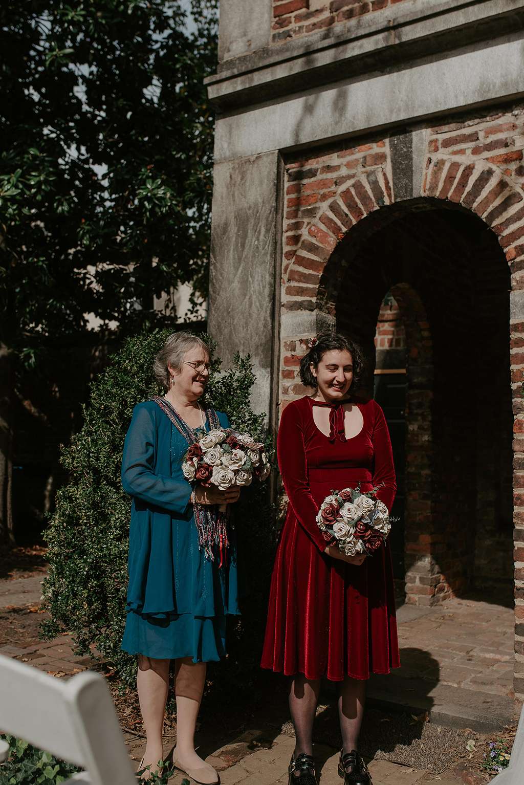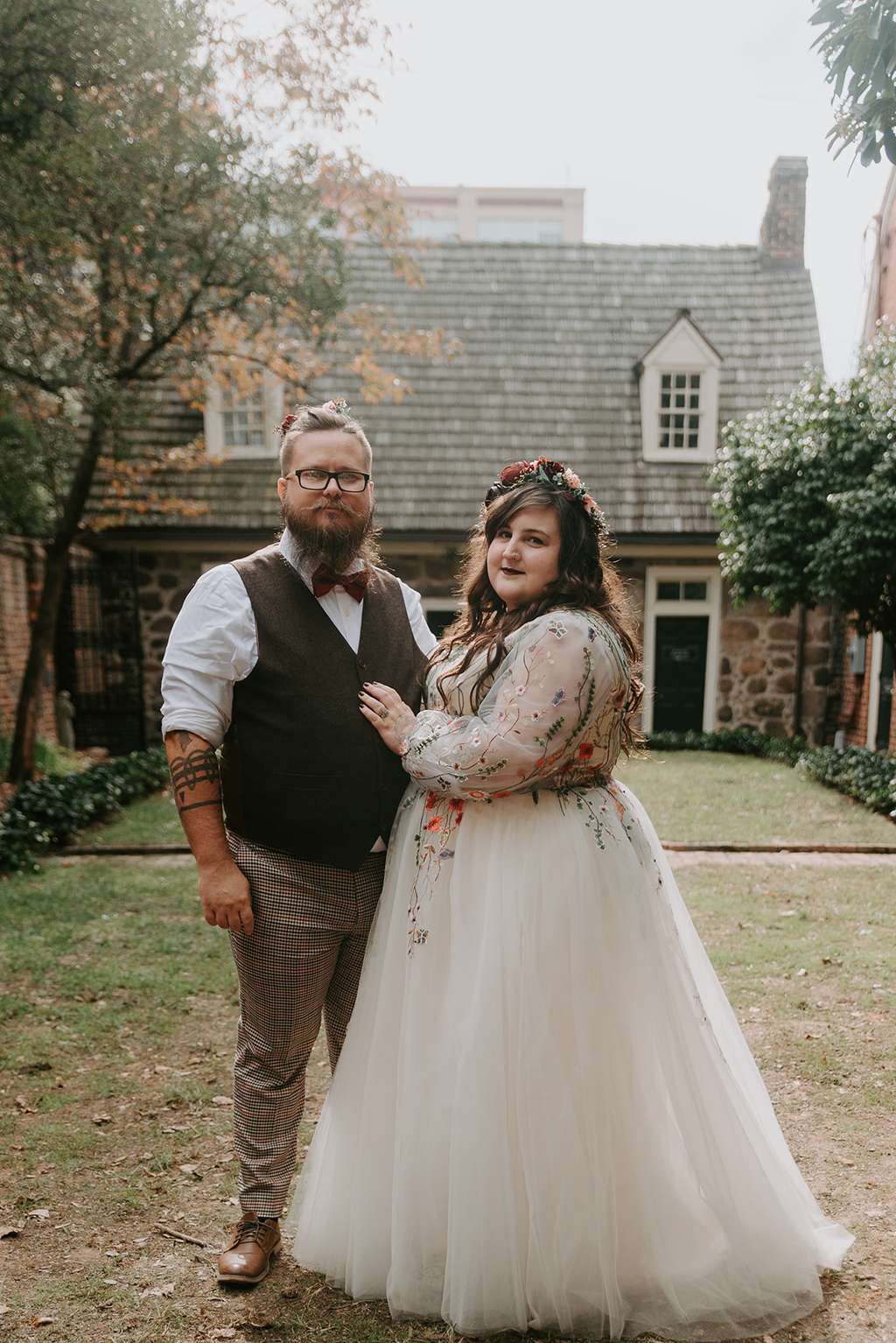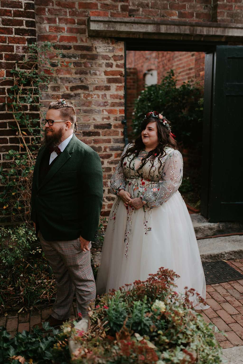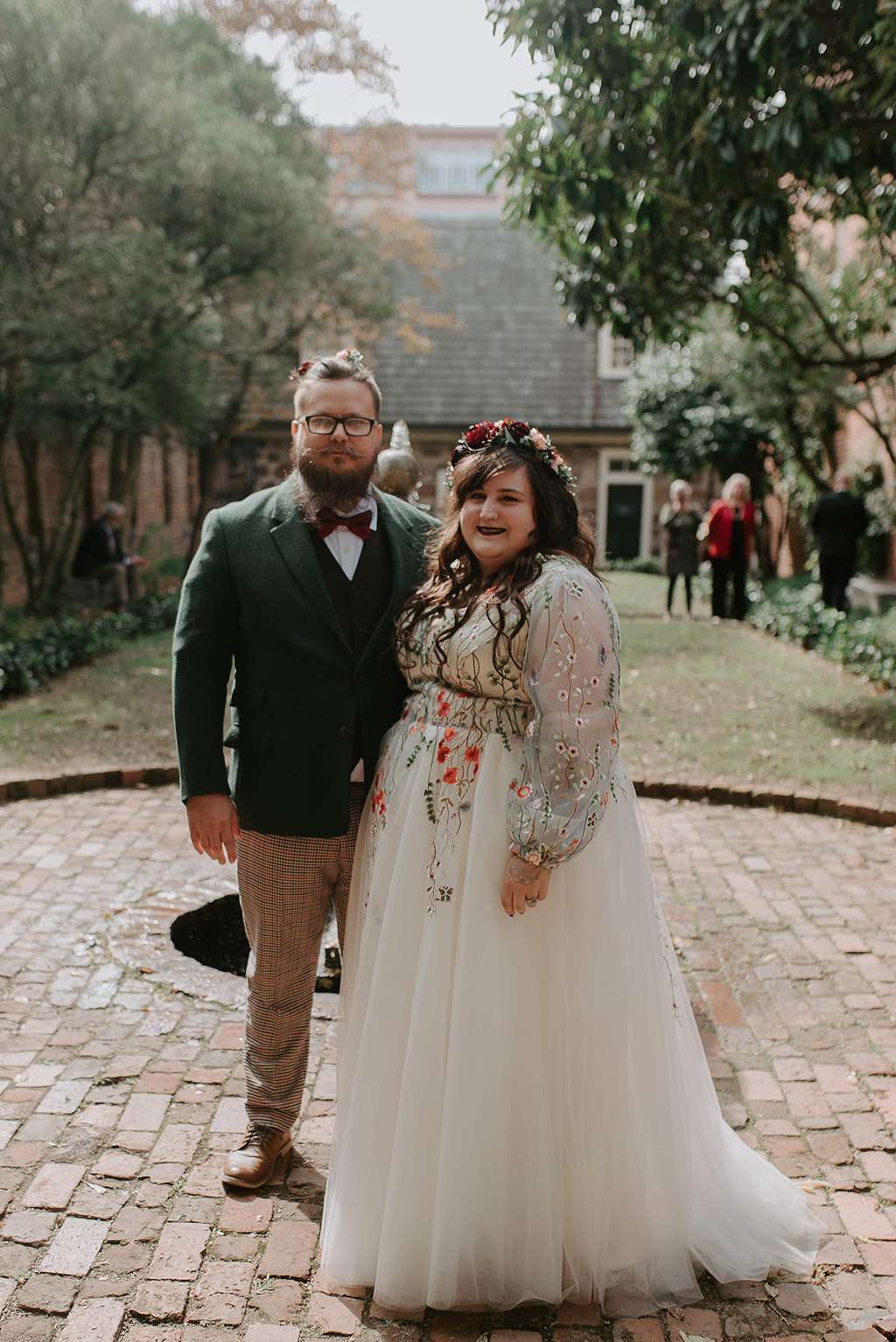They picked two unique venues close to their bibliophilic hearts; their ceremony was held in the enchanted garden at the Edgar Allan Poe Museum in Richmond, Virginia. Faith was walked in by both her parents. They included vows to their children as well as writing their own vows to each other. These included lots of jokes between them, and Shawn promised never to wear cargo shorts again (after turning up to their first date in them… Faith almost didn’t go out with him again!) “Our ceremony was short, sweet and personal – exactly what we wanted,” she said.