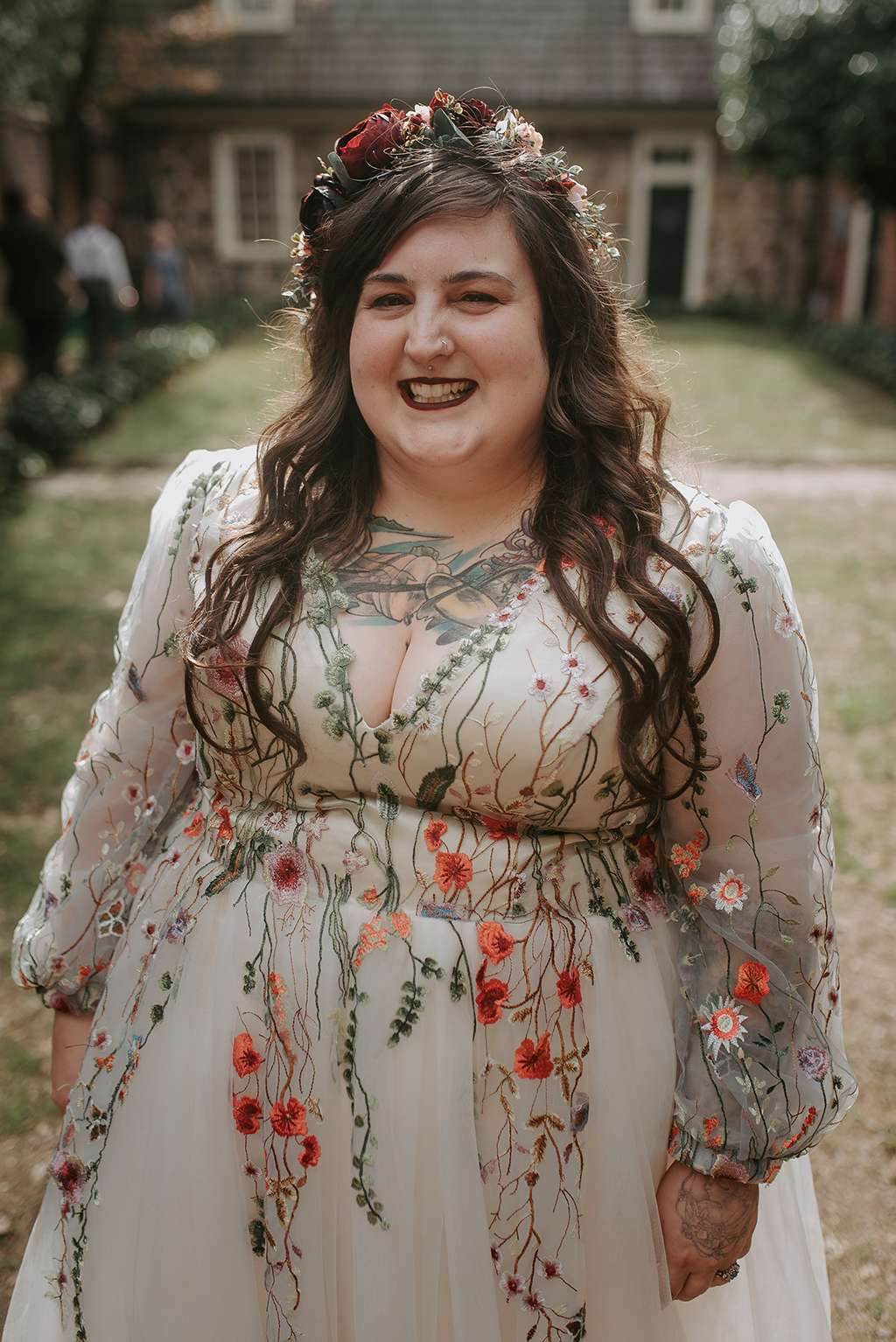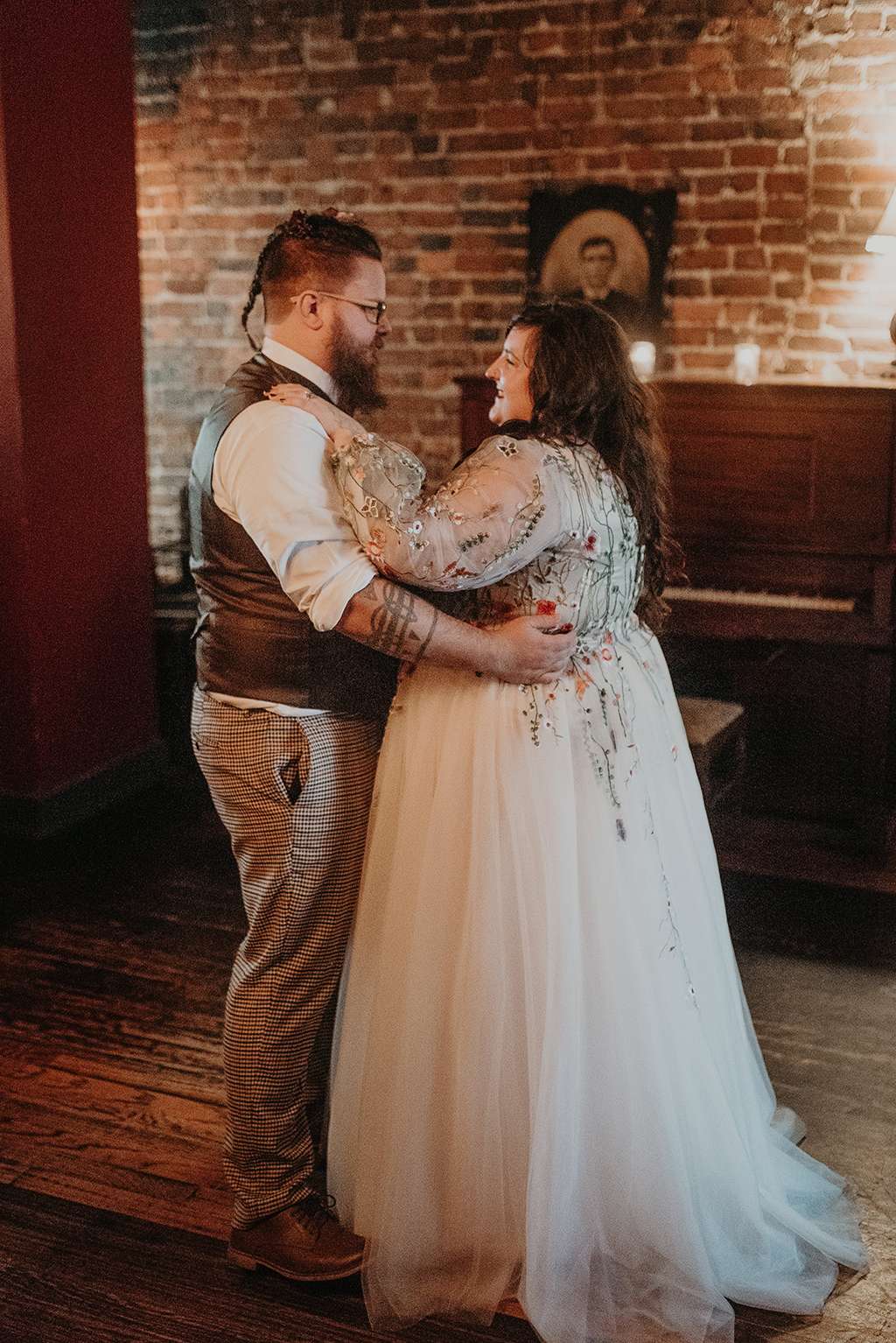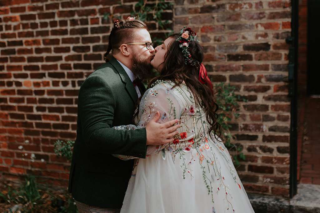 One thing they did wish they’d had budget for was an on-the-day coordinator. “Having someone that wasn’t family, making sure everything was going to plan would’ve cut down a lot on the stress for me,” advises Faith. “And for plus size/fat brides, don’t let anyone (or any shop) make you feel like there’s something wrong with your body. I went shopping and immediately hated everything and hated myself and my look. Until I decided on going custom for my dress. I was able to have my dream gown and I felt like I was in a fairy tale. And all sizes of brides and grooms deserve to feel amazing on their day and in their style.”