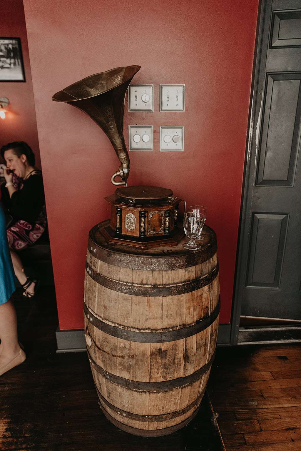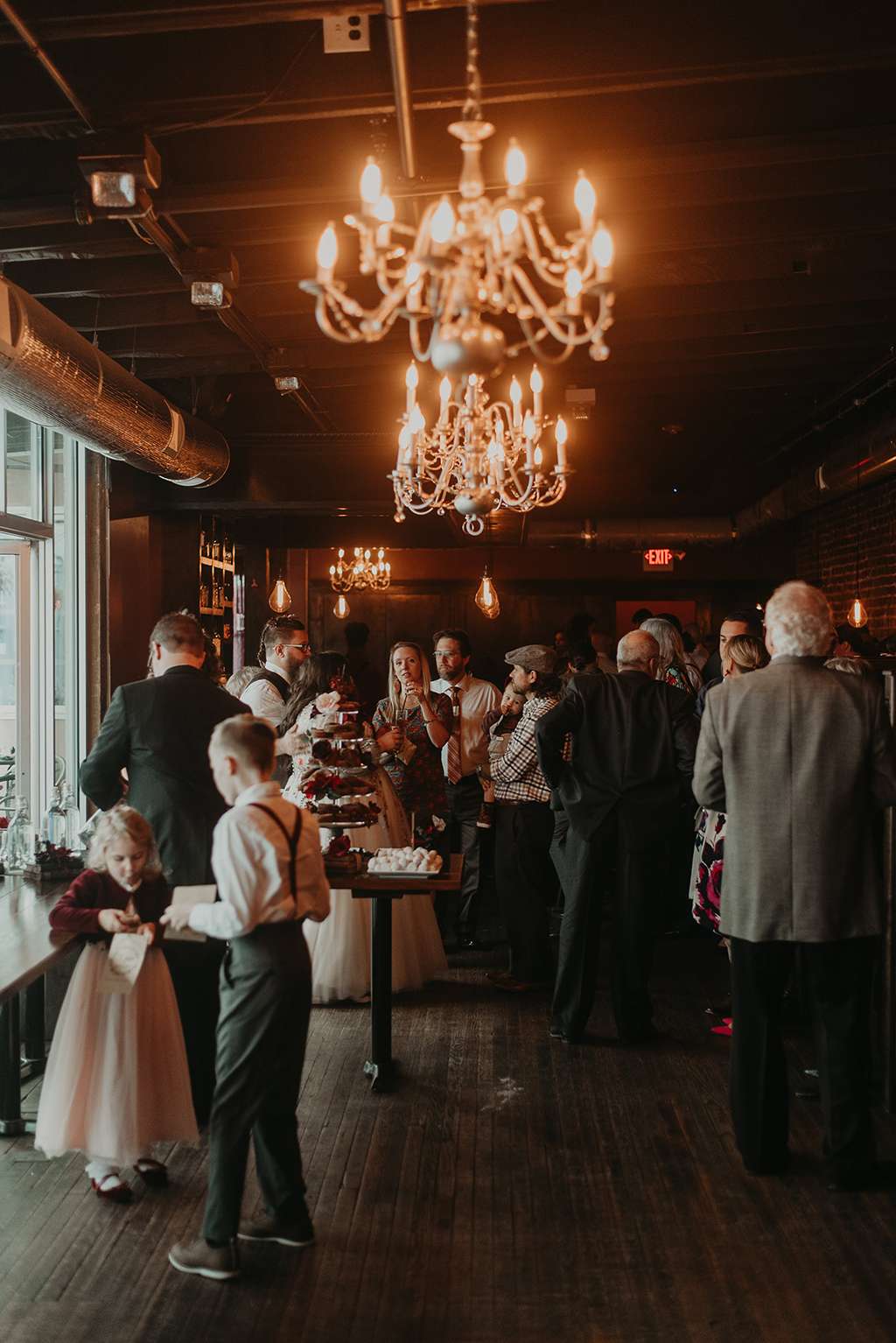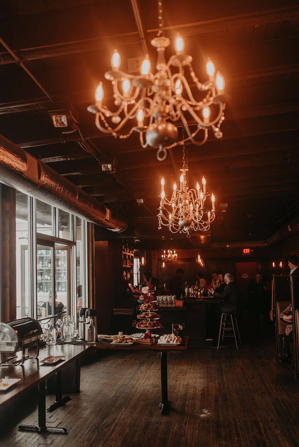 Their reception at was held at Granstaff and Stein, just down the road. Being a speakeasy, guests were required to offer a password to enter; they used ‘nevermore’ to tie in with the Poe theme of the wedding. Instead of a traditional three-tier wedding cake, the couple opted for an apple doughnut tower and cider toast in lieu of champagne toast. To cut costs they only served appetisers instead of a full sit down meal. They had a traditional Pittsburgh cookie table, where family members baked cookies for people to help themselves to and even take home.