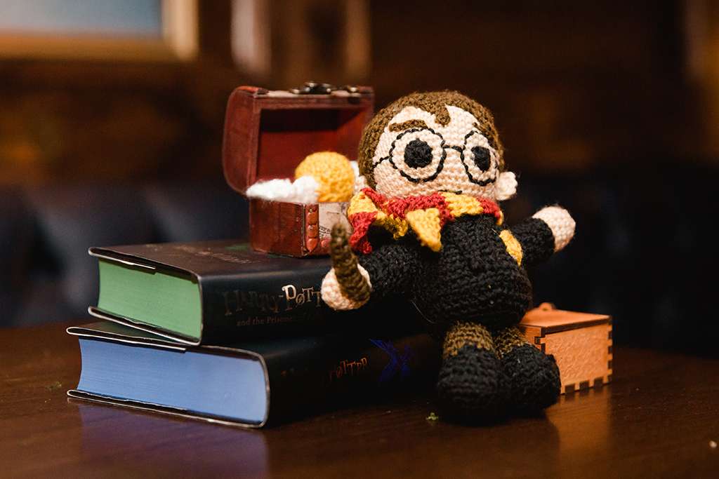 A friend created Deathly Hallows decorations with willow woven with florals, her mum crocheted Harry Potter figures (complete with golden snitch) and one of her bridesmaids helped make an owl cage for the cards. For dessert, they made trays of golden snitches from Ferrero Rocher, and designed a custom ‘potion’ cocktail complete with light-up wands to order them with during happy hour. “In hindsight bringing all the little touches together was pretty stressful,” admits Julia, “Even though I’m very organised – my wedding spreadsheet, with matching moon and stars theme header, was my favourite part of wedding planning – the little bits took way longer than I thought they would. My advice would be to always allow more time than you think you’ll need!”