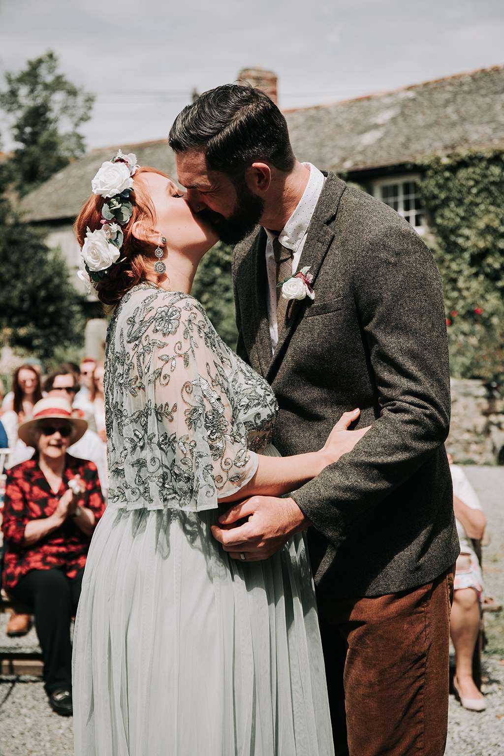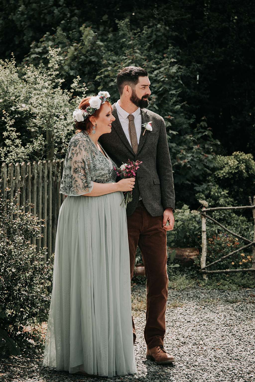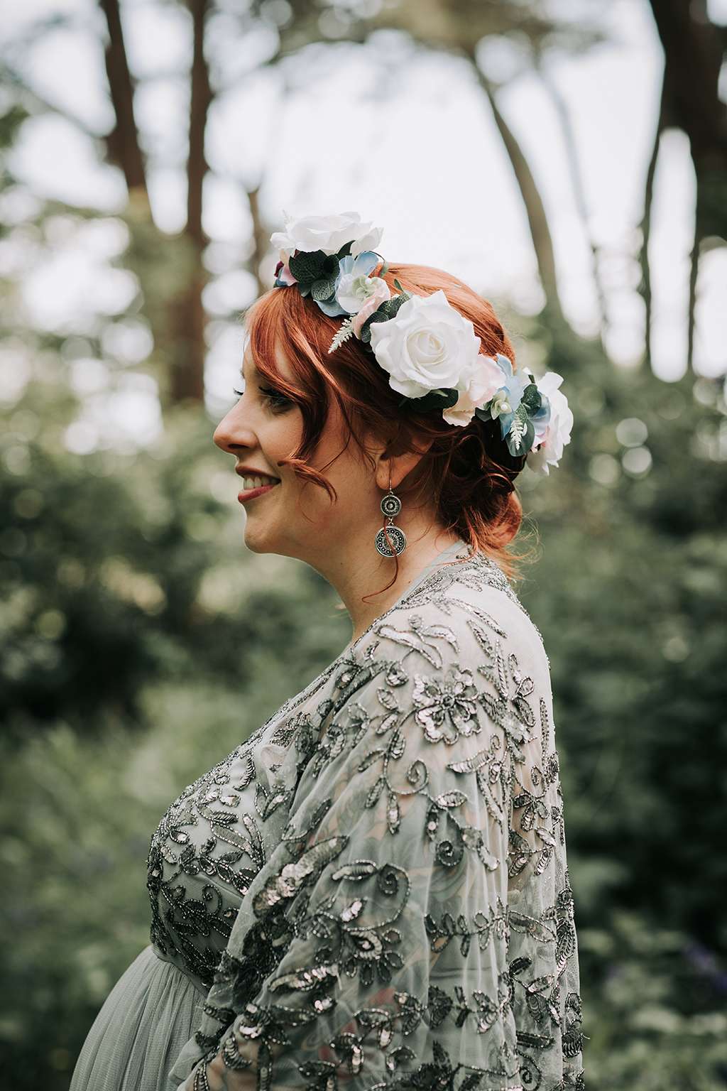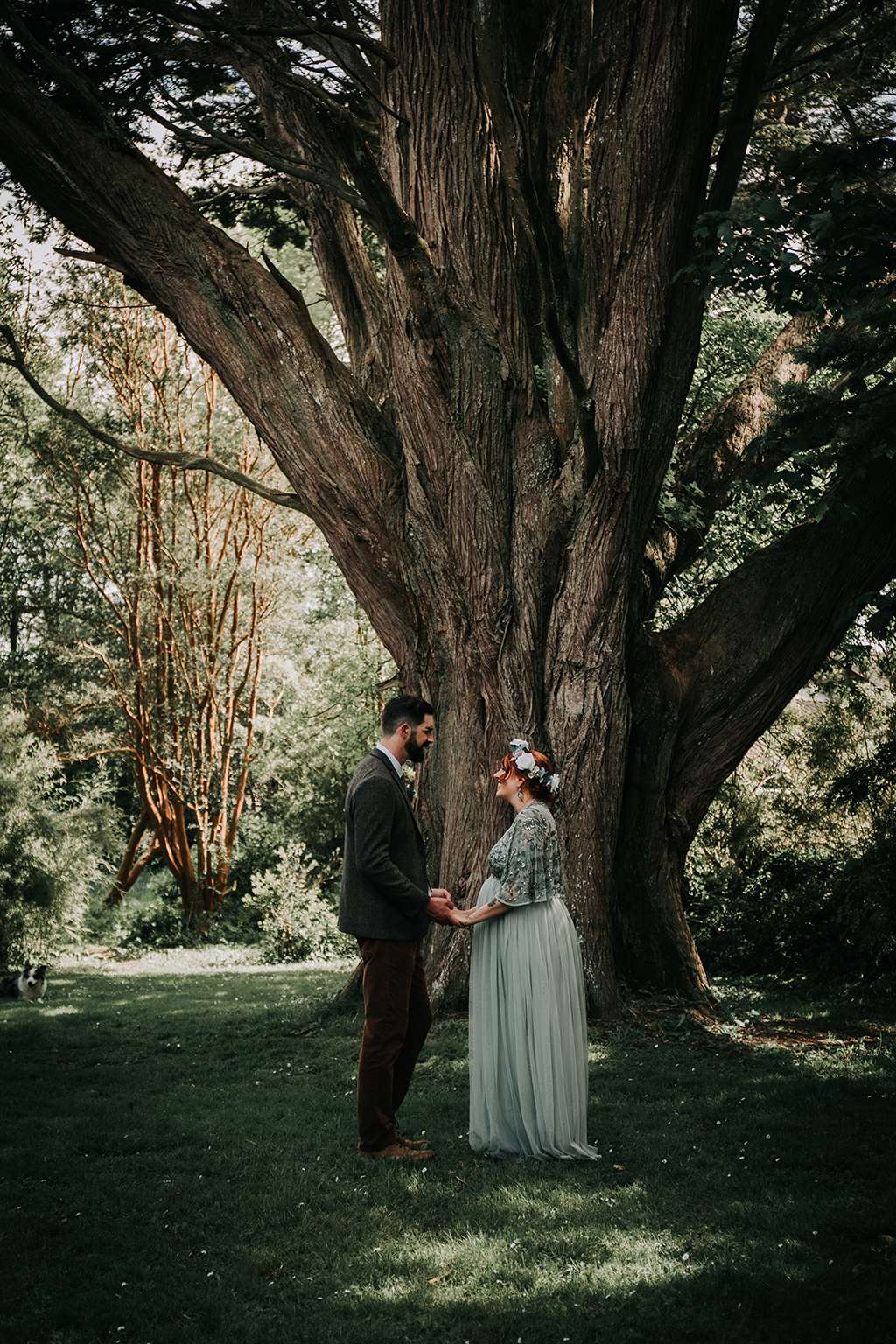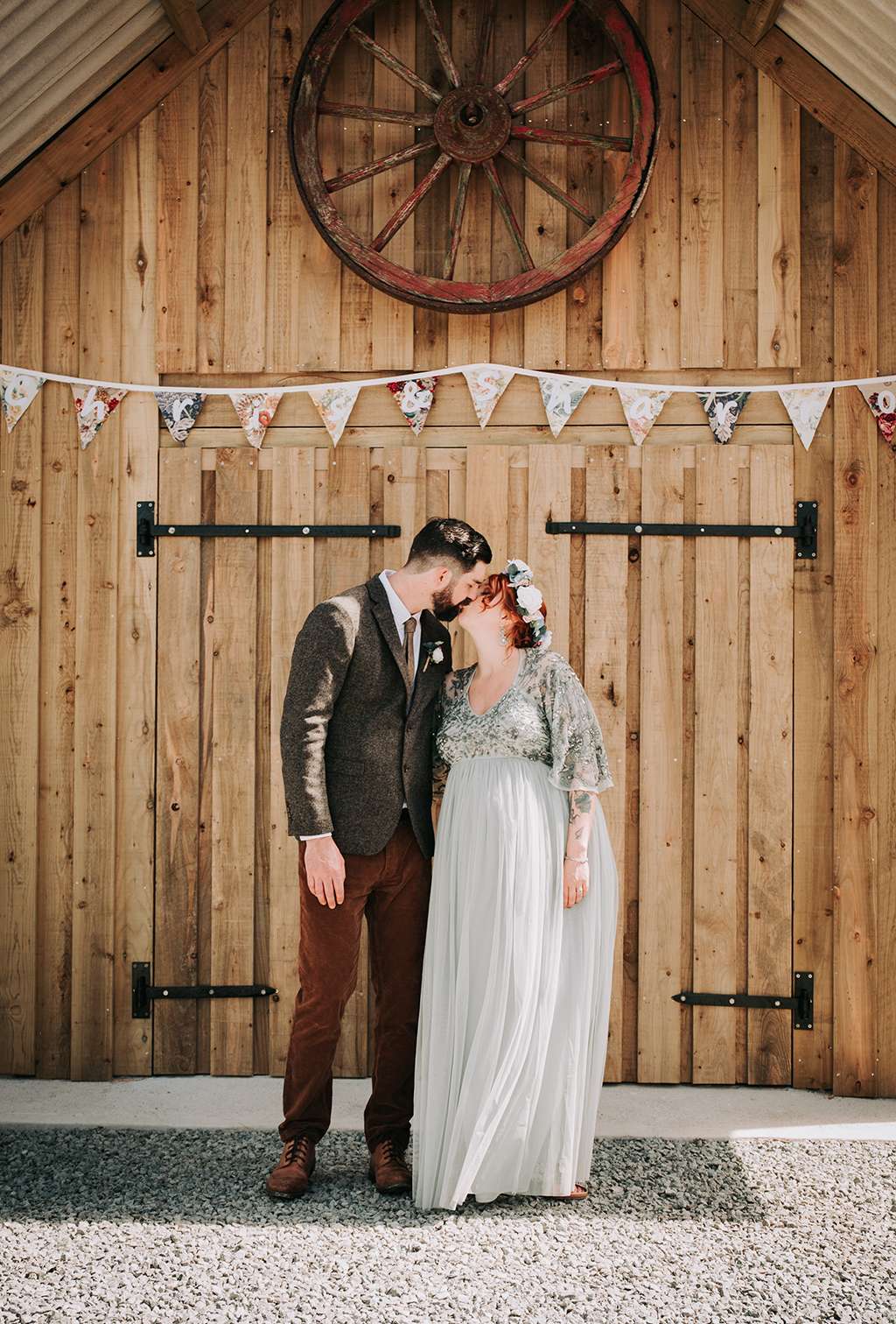 Sharron was seven months pregnant for their big day and they nearly cancelled when they found out, but instead worked with the venue to make some changes to fit their budget. The bride wore a green maternity dress from Maya at ASOS, paired with a real floral crown from Cornish Flower Crowns. Her friends, and bridesmaids, kindly gifted her hair and make up as budget wouldn’t allow for it. Keeping the catering casual helped keep costs down, and another friend kindly made their cake.