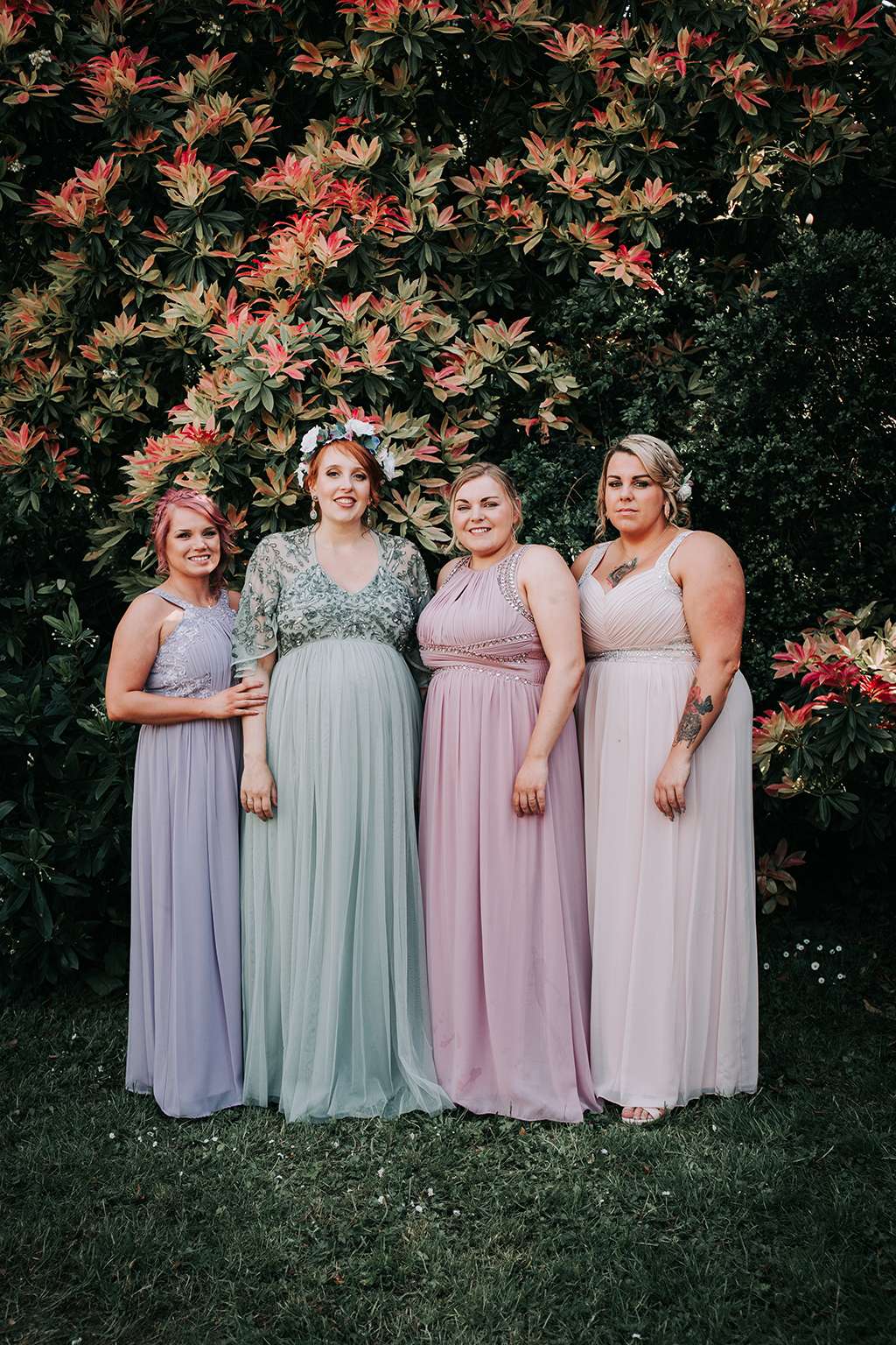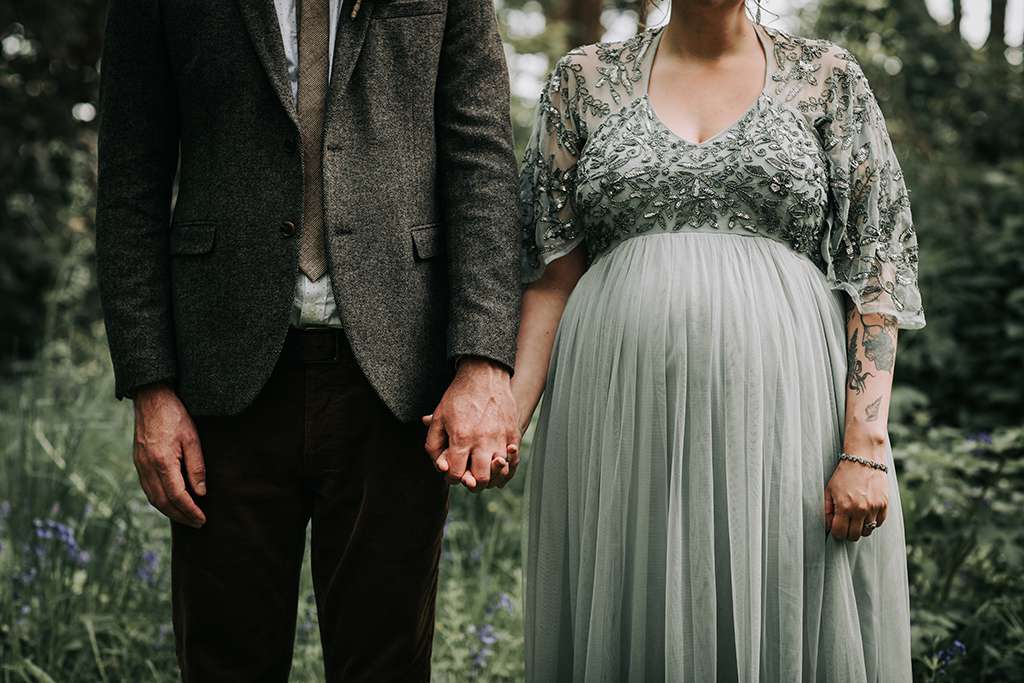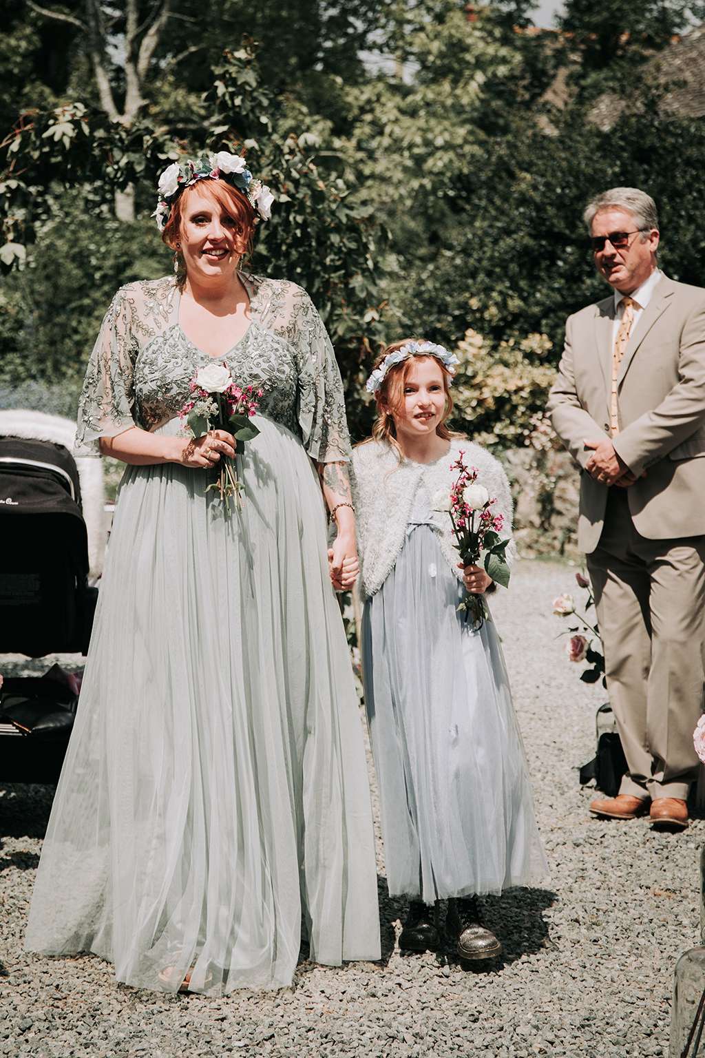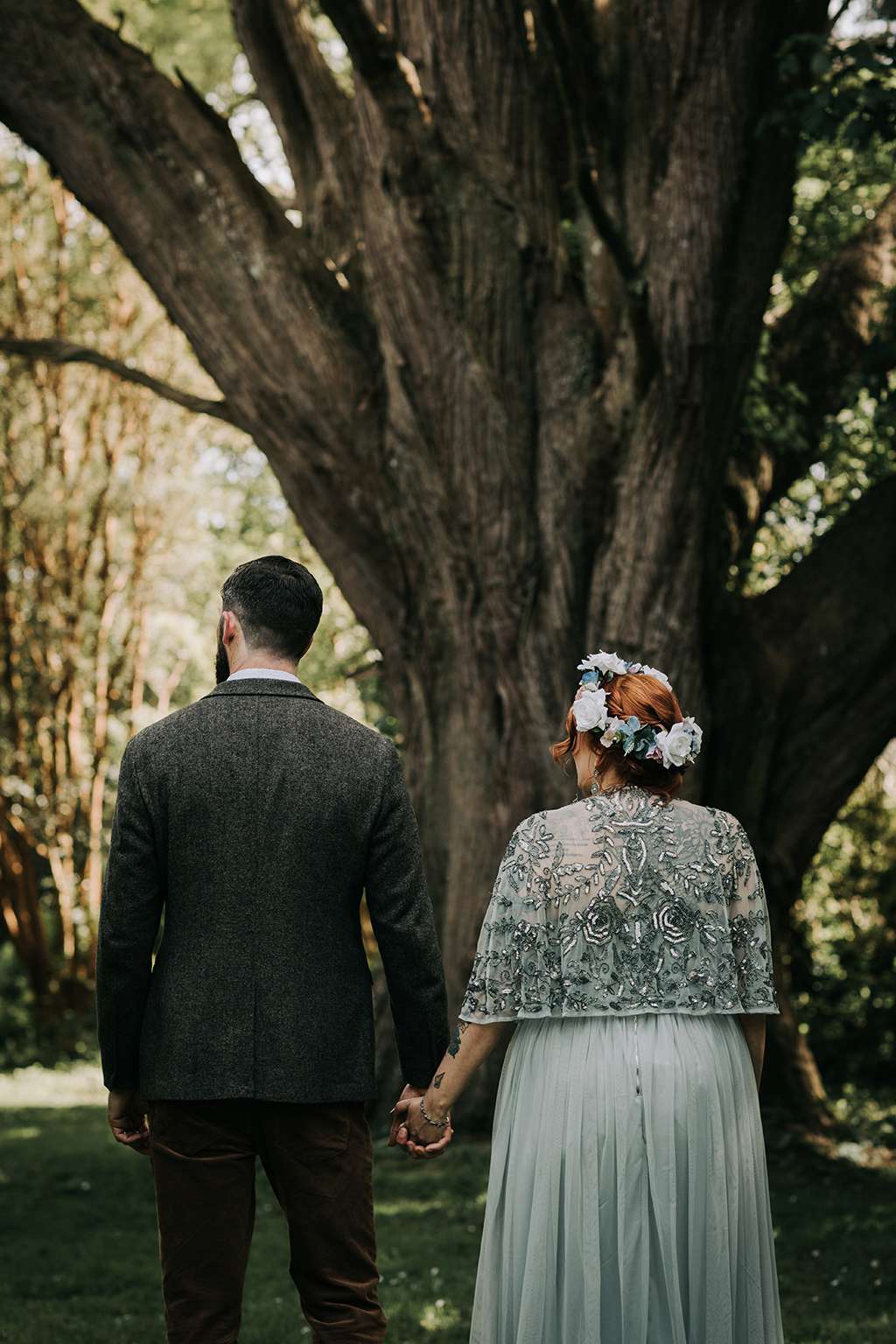 Sharron was seven months pregnant for their big day and they nearly cancelled when they found out, but instead worked with the venue to make some changes to fit their budget. The bride wore a green maternity dress from Maya at ASOS, paired with a real floral crown from Cornish Flower Crowns. Her friends, and bridesmaids, kindly gifted her hair and make up as budget wouldn’t allow for it. Keeping the catering casual helped keep costs down, and another friend kindly made their cake.