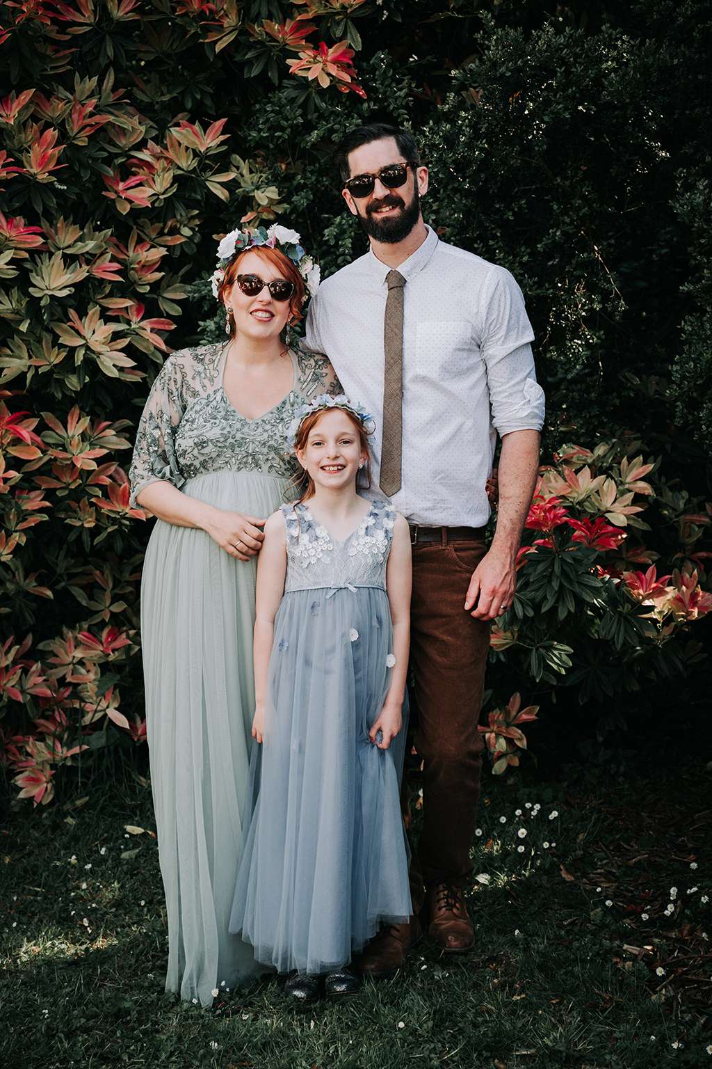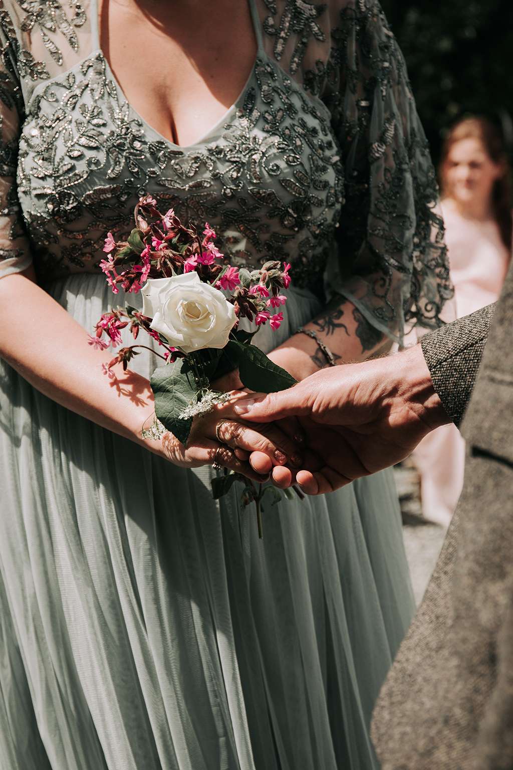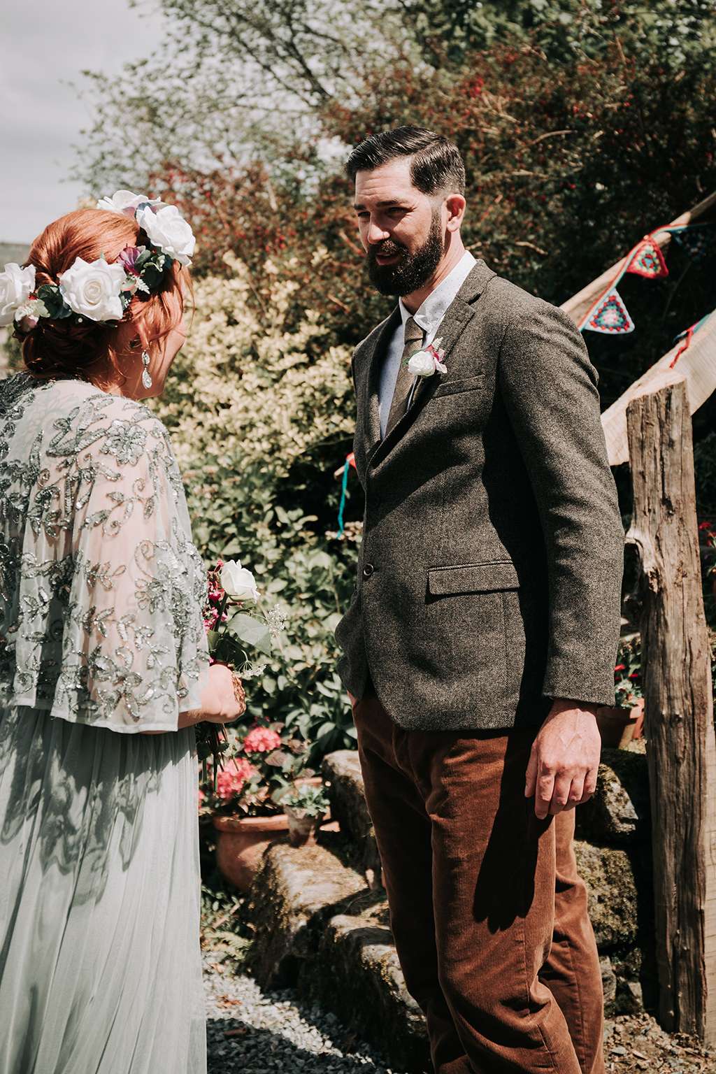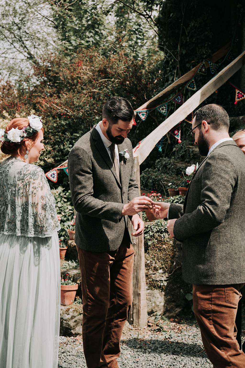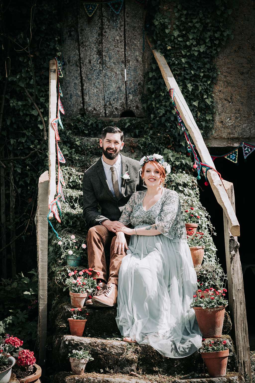 Sharron was seven months pregnant for their big day and they nearly cancelled when they found out, but instead worked with the venue to make some changes to fit their budget. The bride wore a green maternity dress from Maya at ASOS, paired with a real floral crown from Cornish Flower Crowns. Her friends, and bridesmaids, kindly gifted her hair and make up as budget wouldn’t allow for it. Keeping the catering casual helped keep costs down, and another friend kindly made their cake.