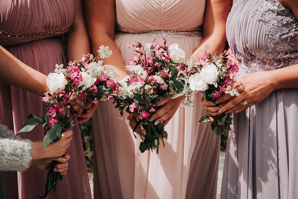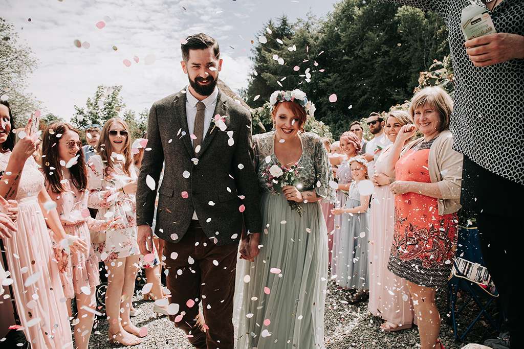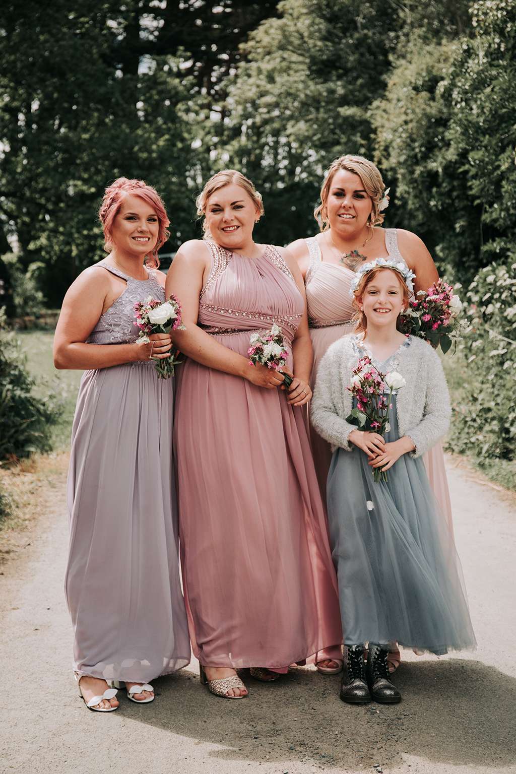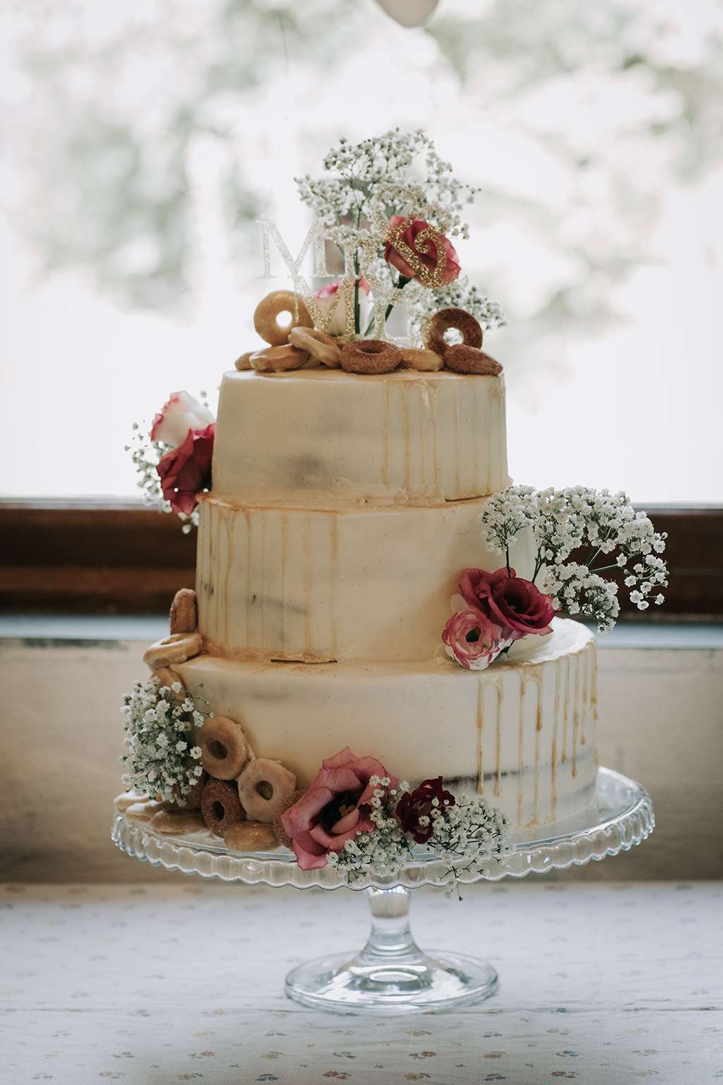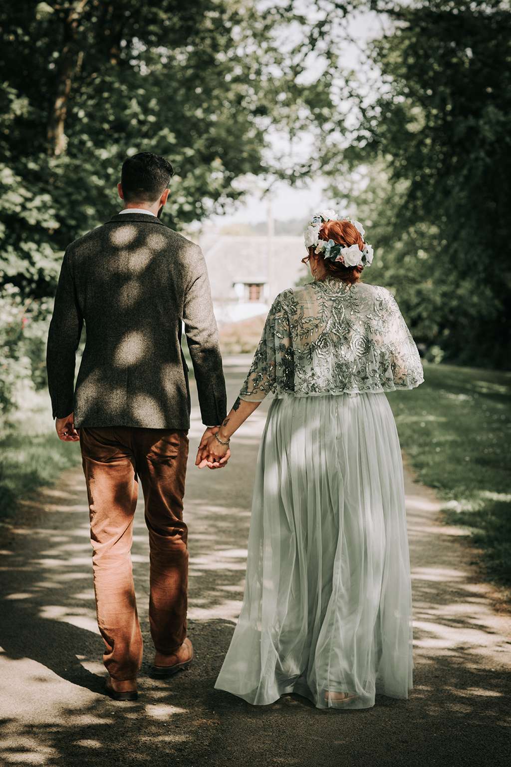 Sharron was seven months pregnant for their big day and they nearly cancelled when they found out, but instead worked with the venue to make some changes to fit their budget. The bride wore a green maternity dress from Maya at ASOS, paired with a real floral crown from Cornish Flower Crowns. Her friends, and bridesmaids, kindly gifted her hair and make up as budget wouldn’t allow for it. Keeping the catering casual helped keep costs down, and another friend kindly made their cake.