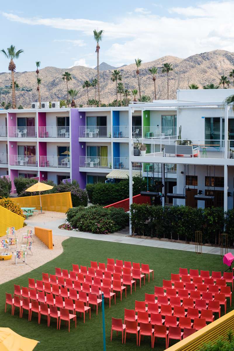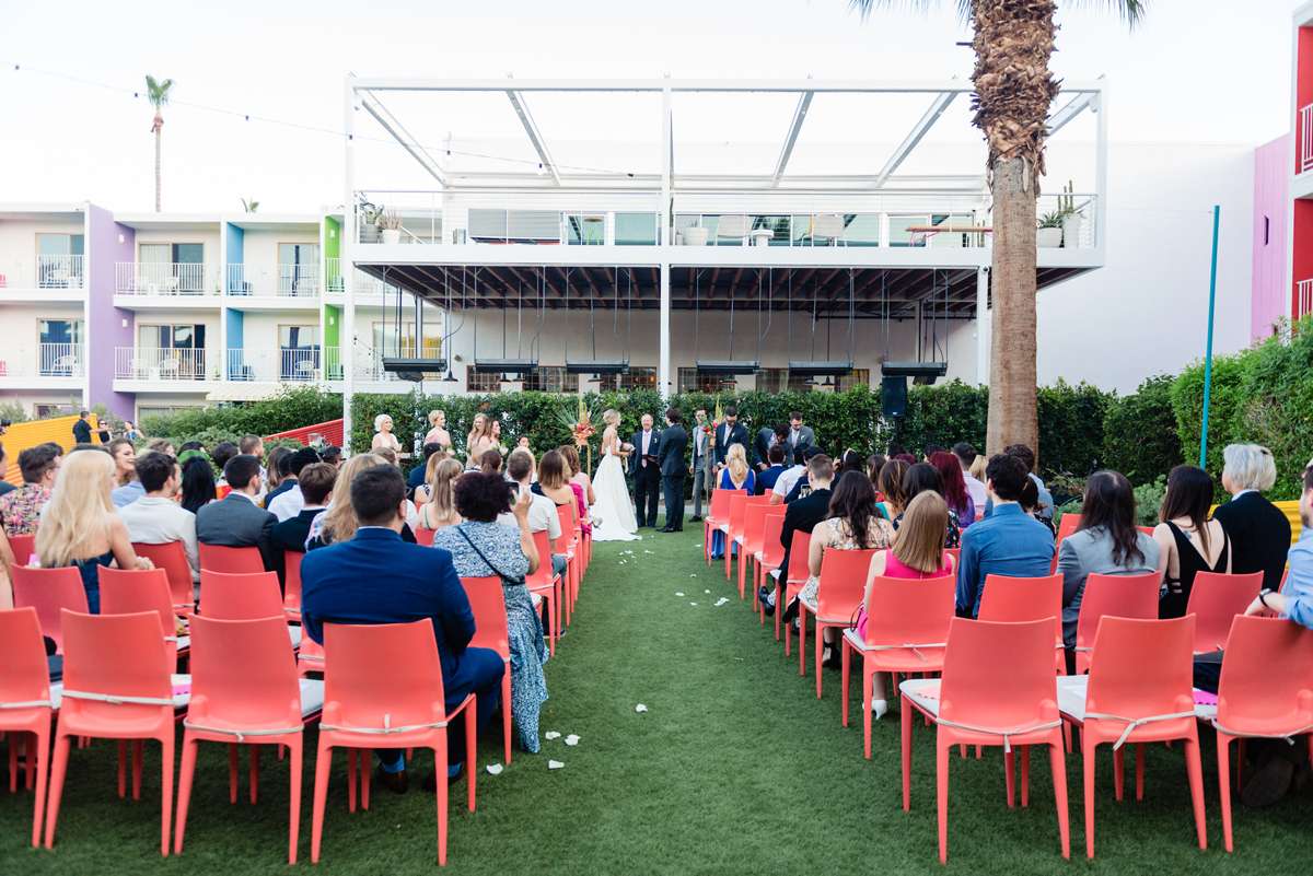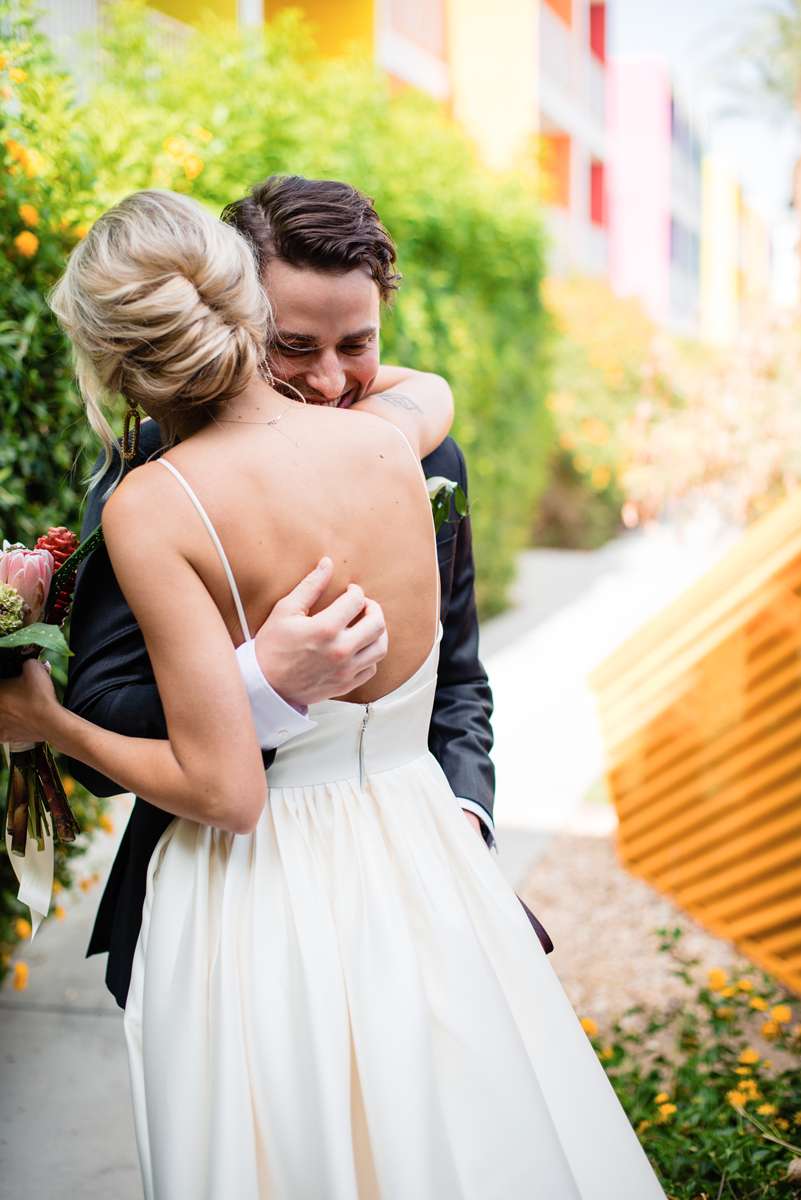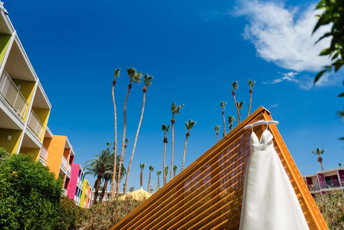 Ali’s main goal for her June wedding to Mike was for it to feel modern and contemporary with a colourful edge. They chose the iconic Saguaro Hotel in Palm Springs which obviously ticked all the colourful boxes! They didn’t need to add much in the need of extra decor at all, using the rainbow backdrop of the hotel in all their photos.
