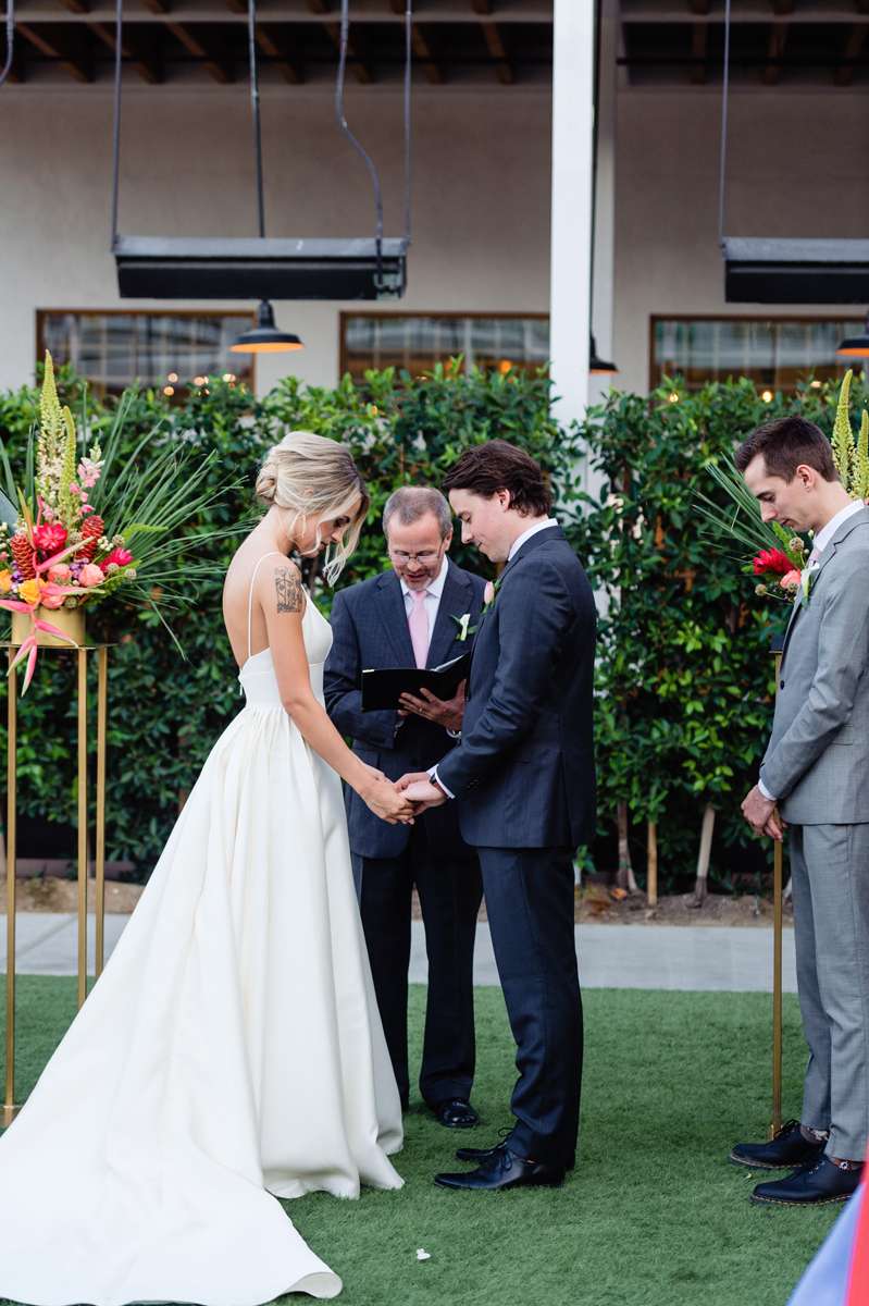 “We both knew we wanted a desert wedding, but didn’t want to ‘rough it’ out in the middle of no where”, Ali said. “Palm Springs has always been a special getaway for us since early in our relationship, and it has the look and feel of the desert vibe we wanted. Mike and I are also big fans of the tiki world. We knew we wanted to incorporate some of that into the wedding, but without having it be a ‘tiki themed’ wedding. As soon as I saw The Saguaro Palm Springs, I knew that’s where we’d be getting married one day!”