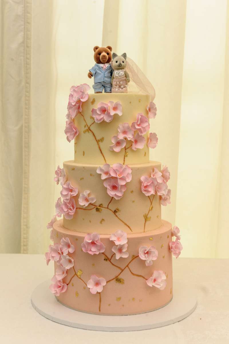 “We love pink, flowers and general cuteness, so centred the wedding around this”, Amy said. “We also had a few nods to Japan, cats and ethereal fairies. As I am a huge fan of Sofia Coppola’s Marie Antoinette, we had fans as favours which were a hot commodity!”