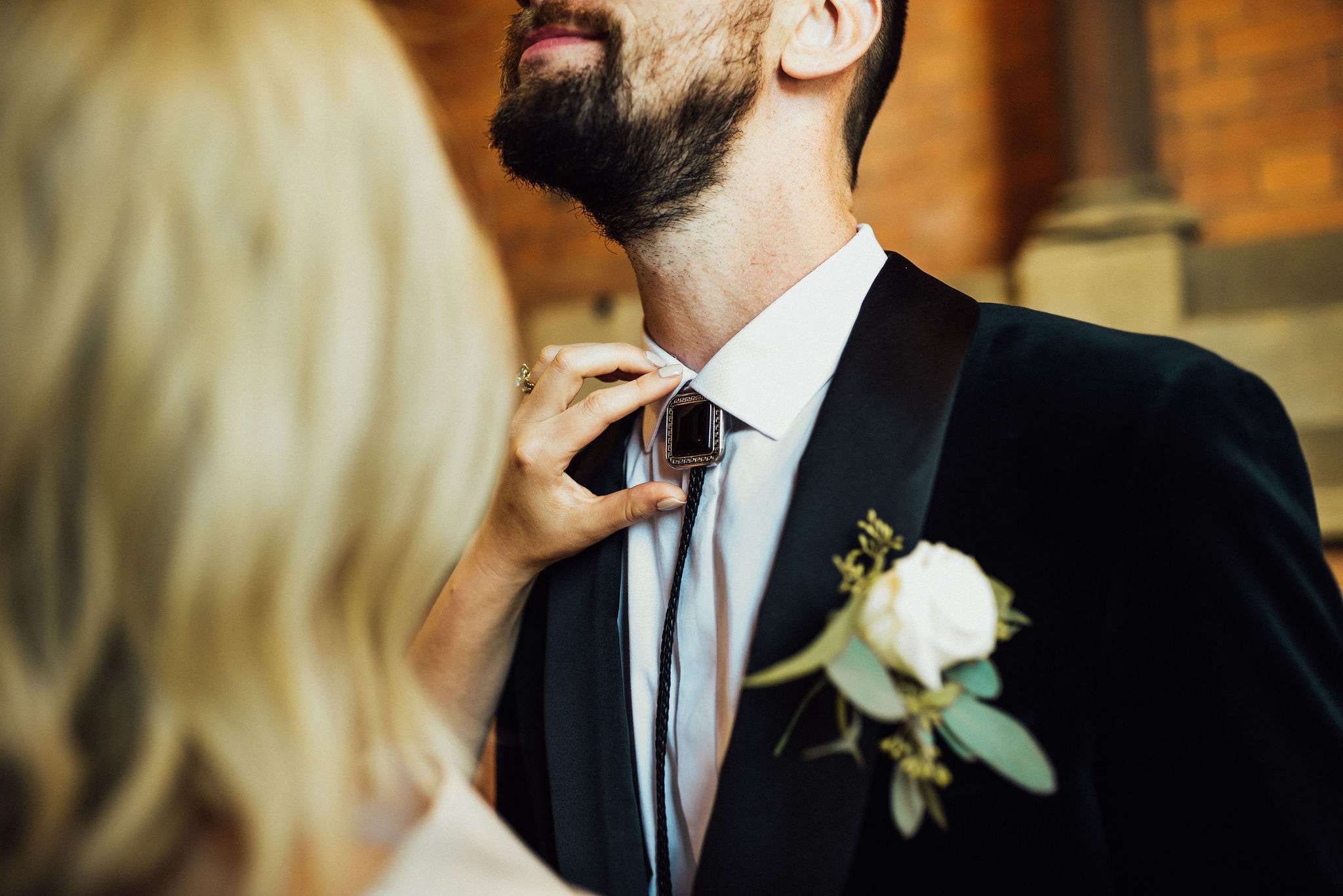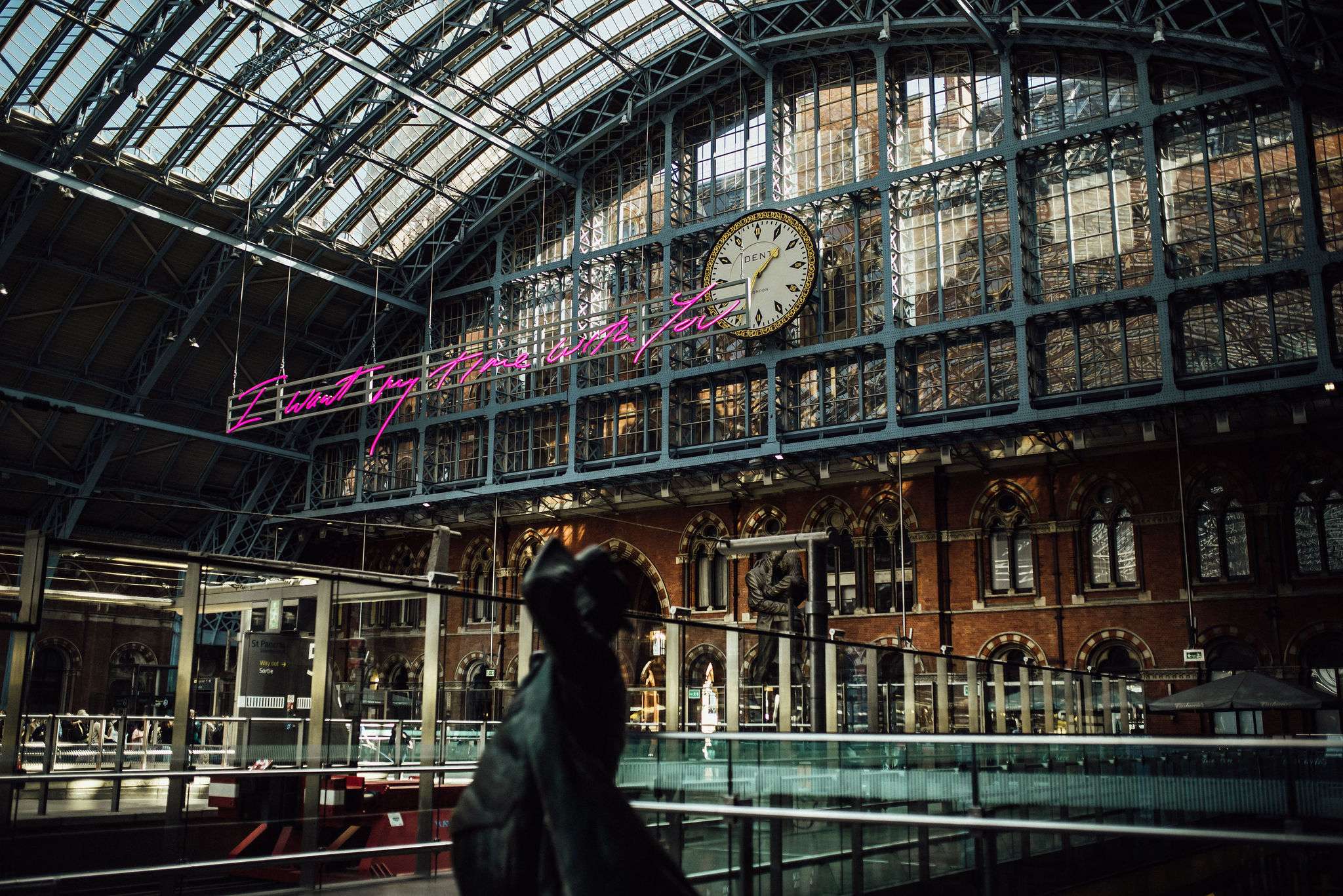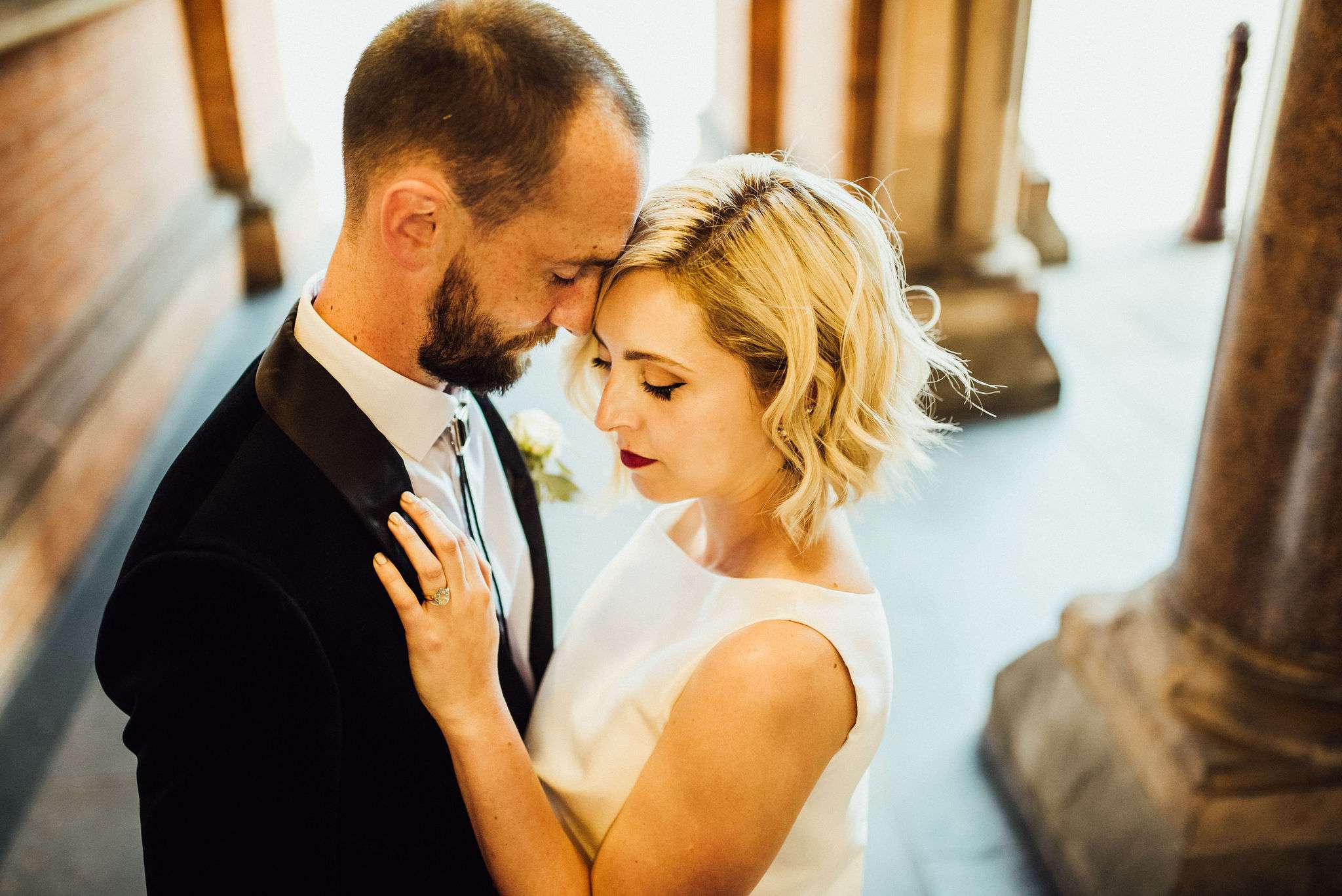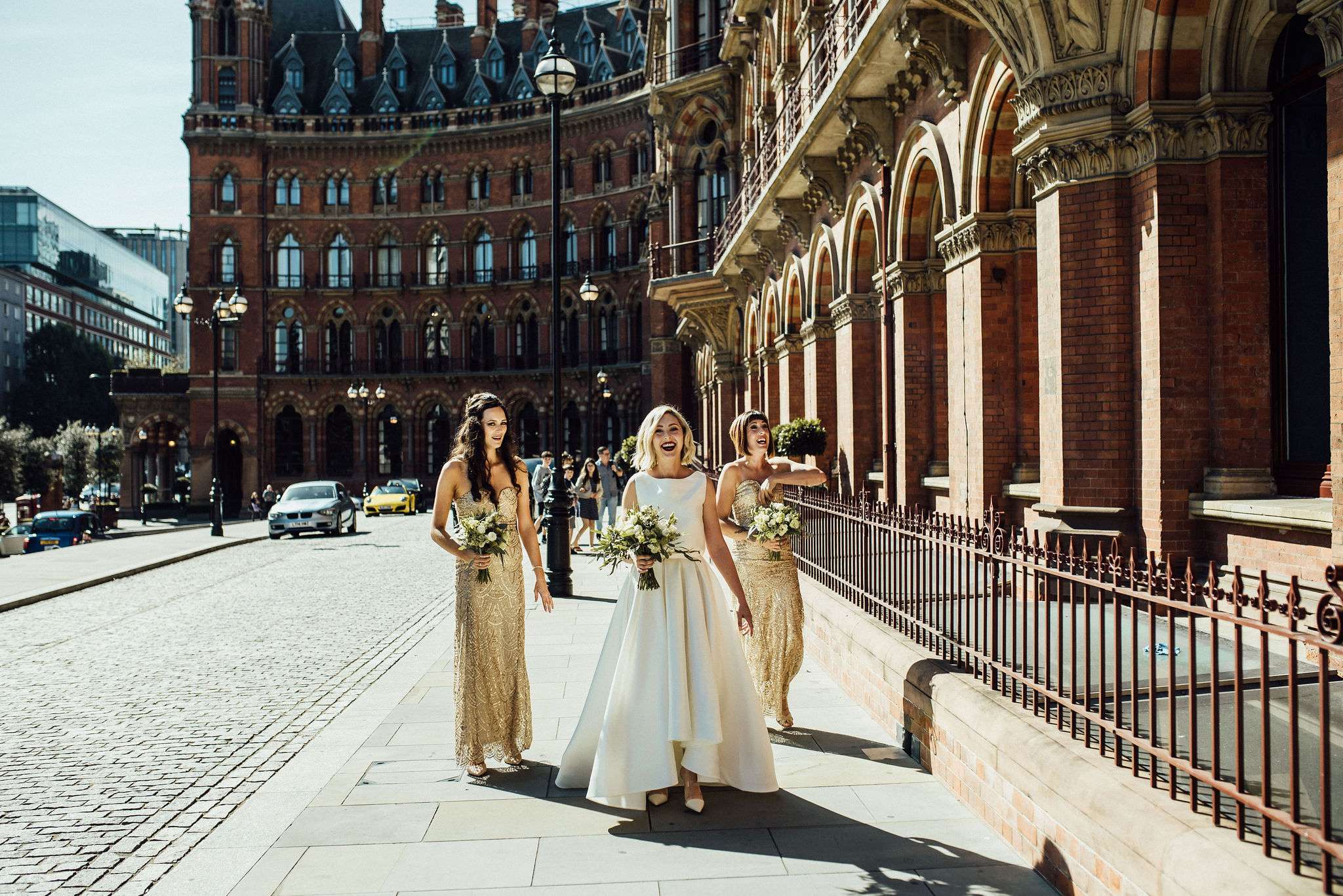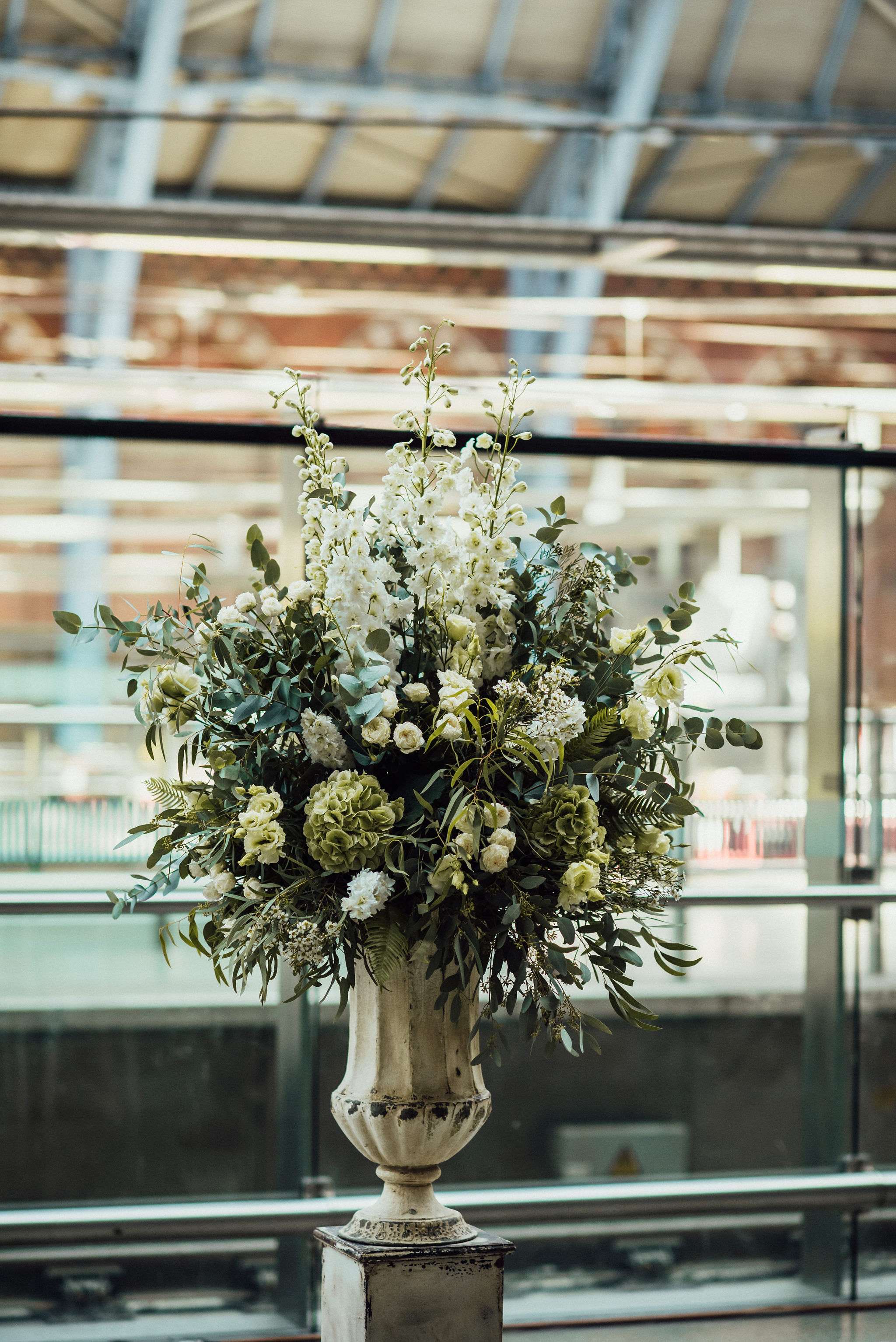 Gemma and Jon chose St Pancras Station as their unusual wedding location and were married at the exact spot where they first met for their first date! They were married on the concourse with the trains behind them, and had their reception at Searcys Champagne Bar. They were inspired by the art deco vibes of the location, but also their love of Bowie through their choice of music and the bride’s accessories (Bowie is also their son’s name!)