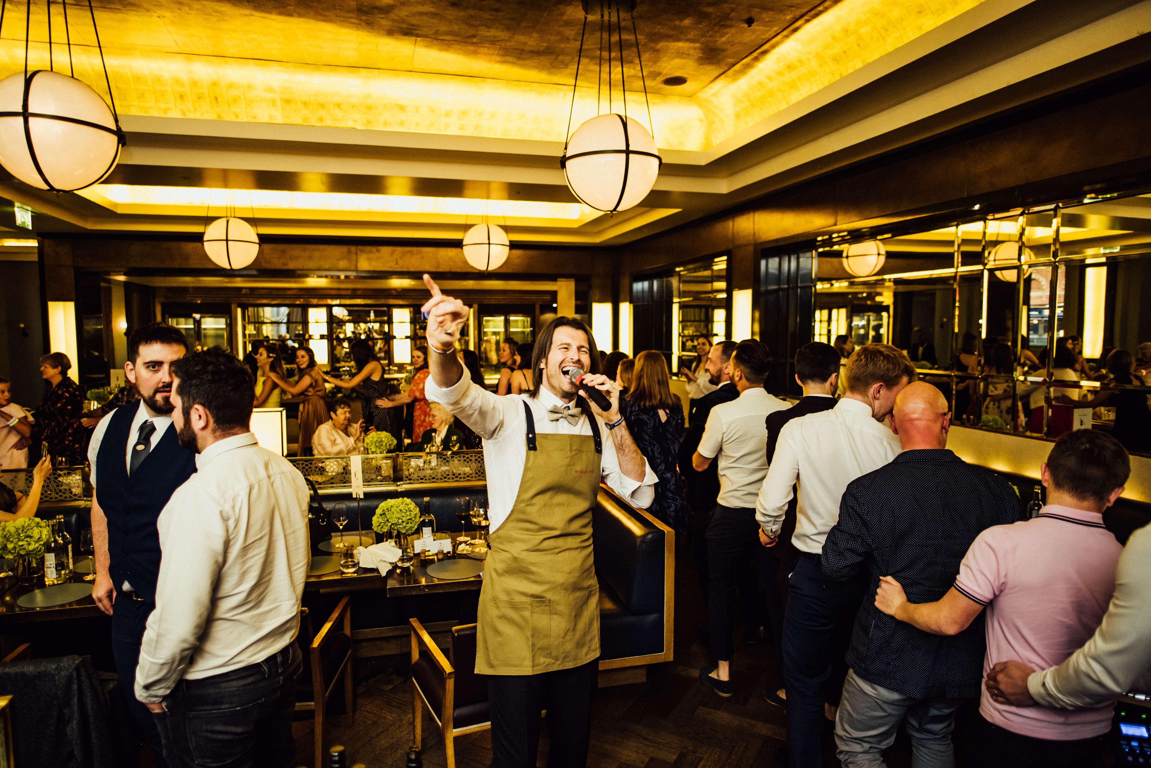 As their entertainment they singing waiters, something they’d definitely recommend! ” We hired them through Silver Service Singers and they were totally amazing – only me, Jon and our photographer Michelle knew they were coming. If I could recommend anything to add to any wedding this cost is worth it a million times over. They totally helped bridge the gap between dinner and dancing and got every single person in the room dancing. When one tripped over – as per the rouse – some of my friends and family rushed over to help him. One was nearly on the phone to 999 while a good friend of mine was very vocal in telling me how disgusted he was that my photographer was taking close up pictures of the whole thing which he felt very insensitive! It was a joke of course!”