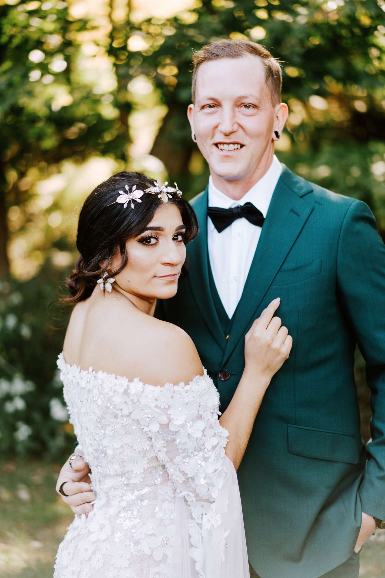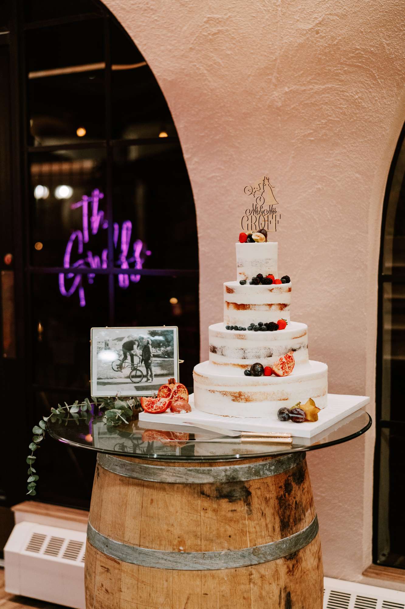 They incorporated Mike’s love of BMX bikes into the day too. Their card basket was made from a bike that Mike restored especially for the job. Their custom cake topper was also based on one of their favourite photos of the two of them with Mike doing a wheelie! “I think our sweetheart table was quite different”, Megan said. “I wanted to feel like we were tucked away in a little forest palace. Mike grew up riding BMX his whole life so turning the tandem bike into our card basket was awesome and had a lot of meaning.”