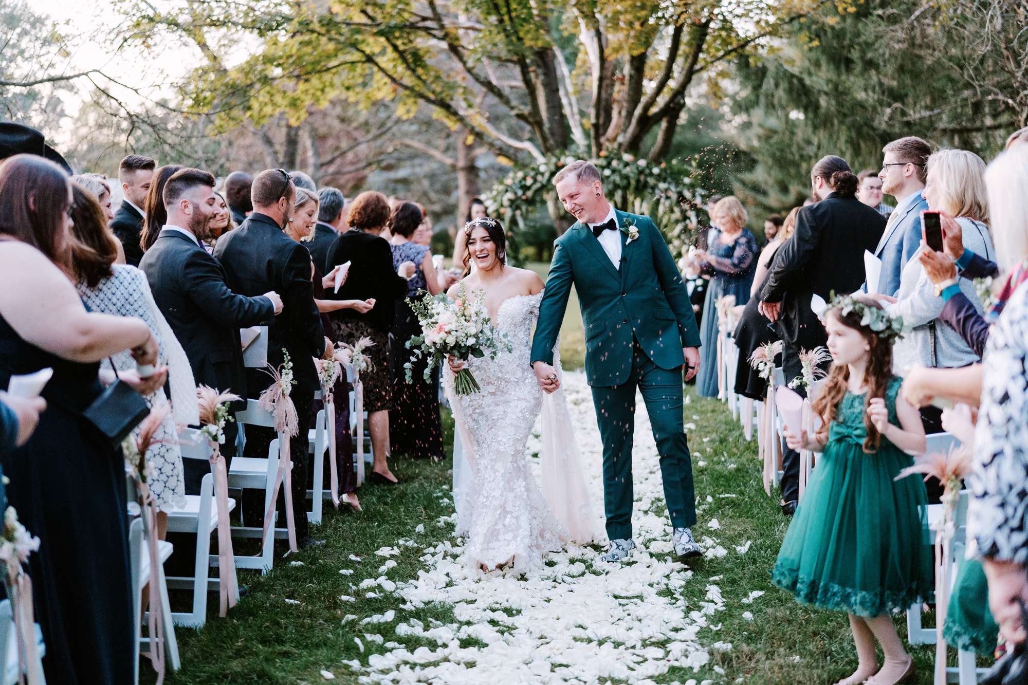 “I remember standing at the start of the aisle, staring at Mike, and saying to my dad ‘is this seriously real life right now?'”, Megan said. “I felt like I was in a dream. Everyone we loved was at the same place and watching me marry the man I love. it was an insane feeling. We shared vows that made our ceremony super personal. I cried and we laughed, It couldn’t have been more perfect.”