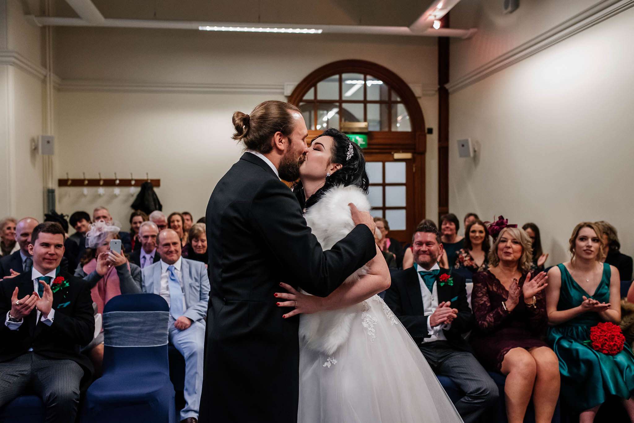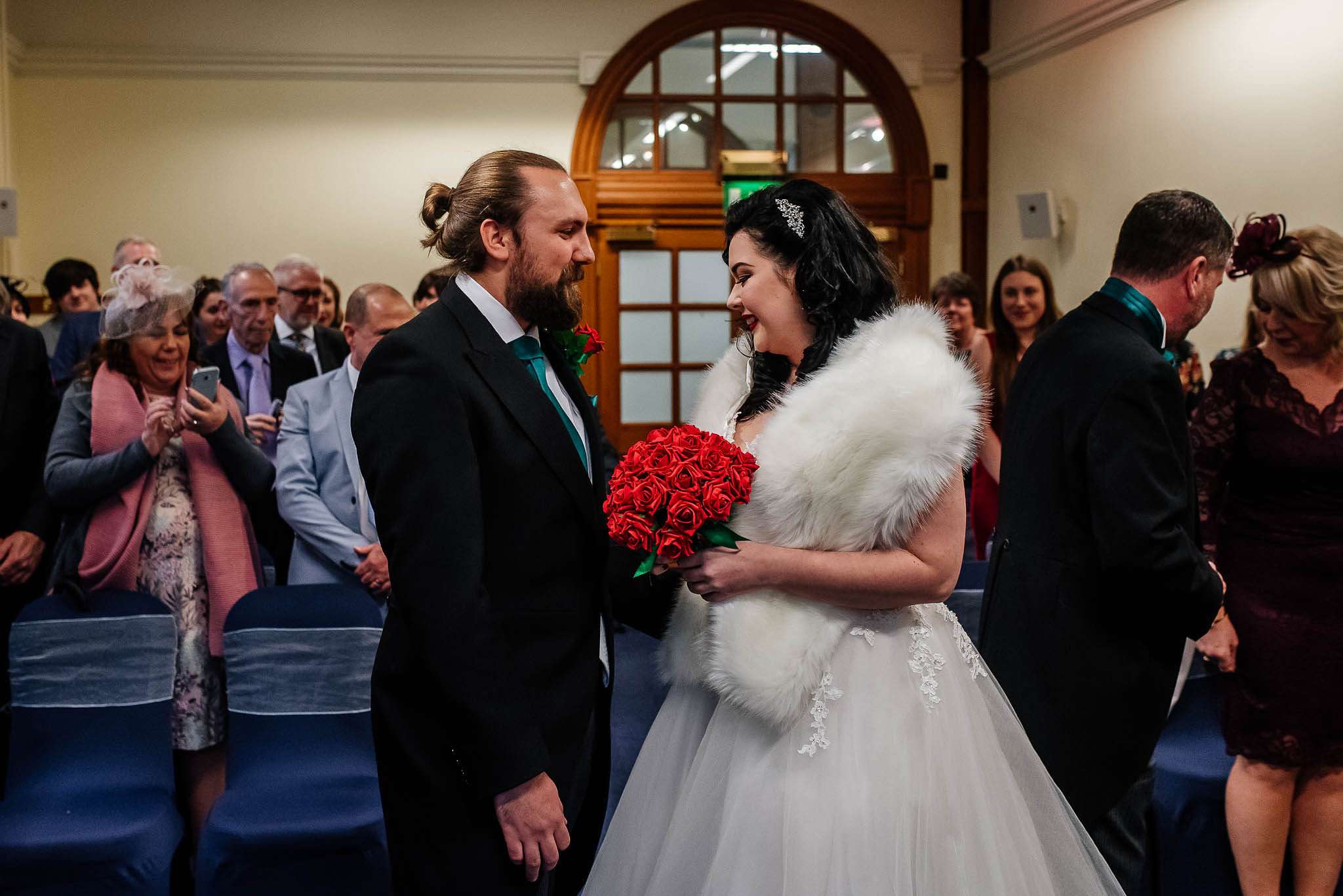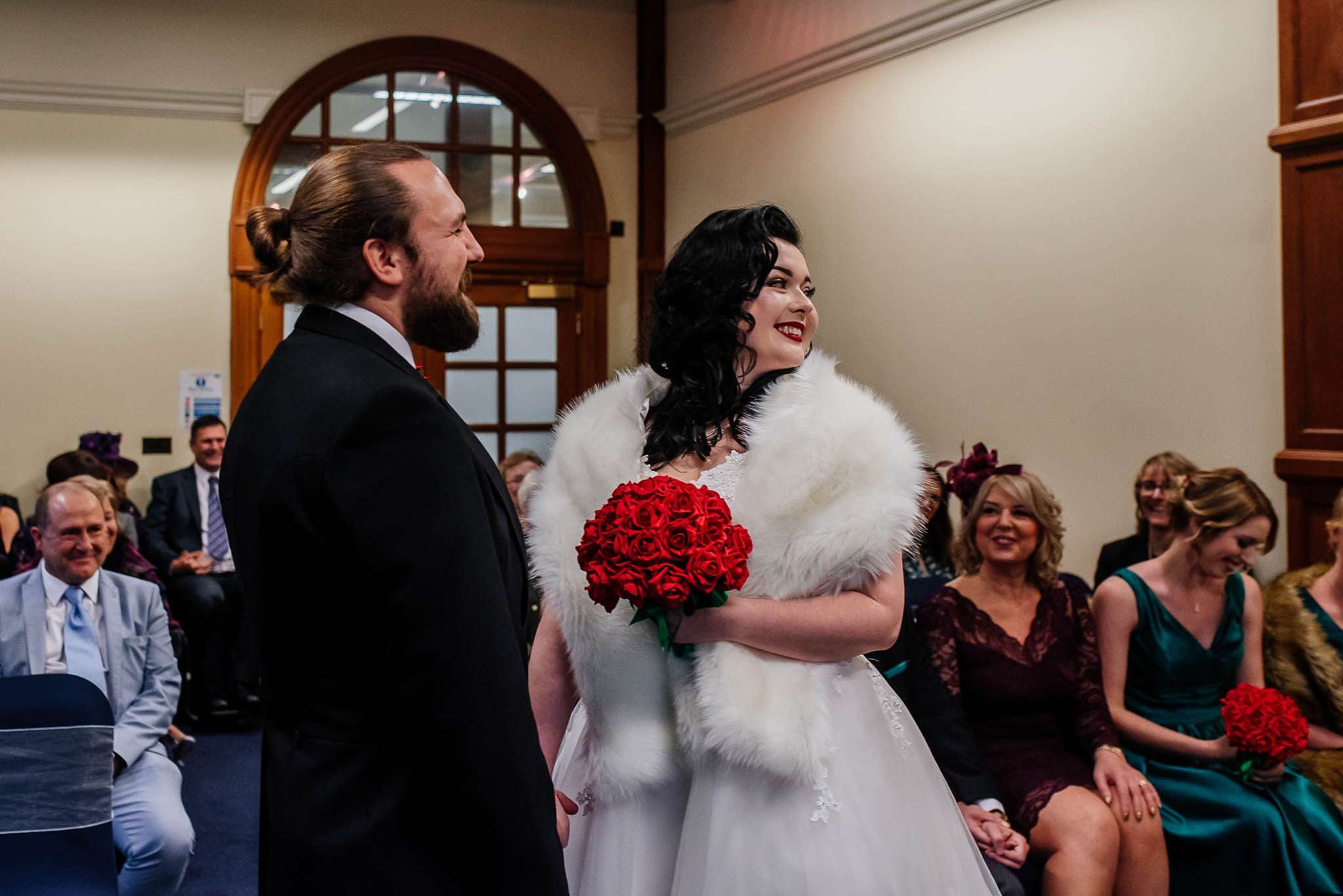 They were married at Sheffield Town Hall with a reception at The Old Rectory in Sheffield afterwards with a budget of £9000. Jess wore a Brighton Belle dress with a vintage inspired faux fur stole and family heirloom jewellery. Tom had subtle skull touches with the lining of his Twisted Tailor waistcoat, a vintage inspired pocket watch and personalised cuff links as a gift from the bride.
