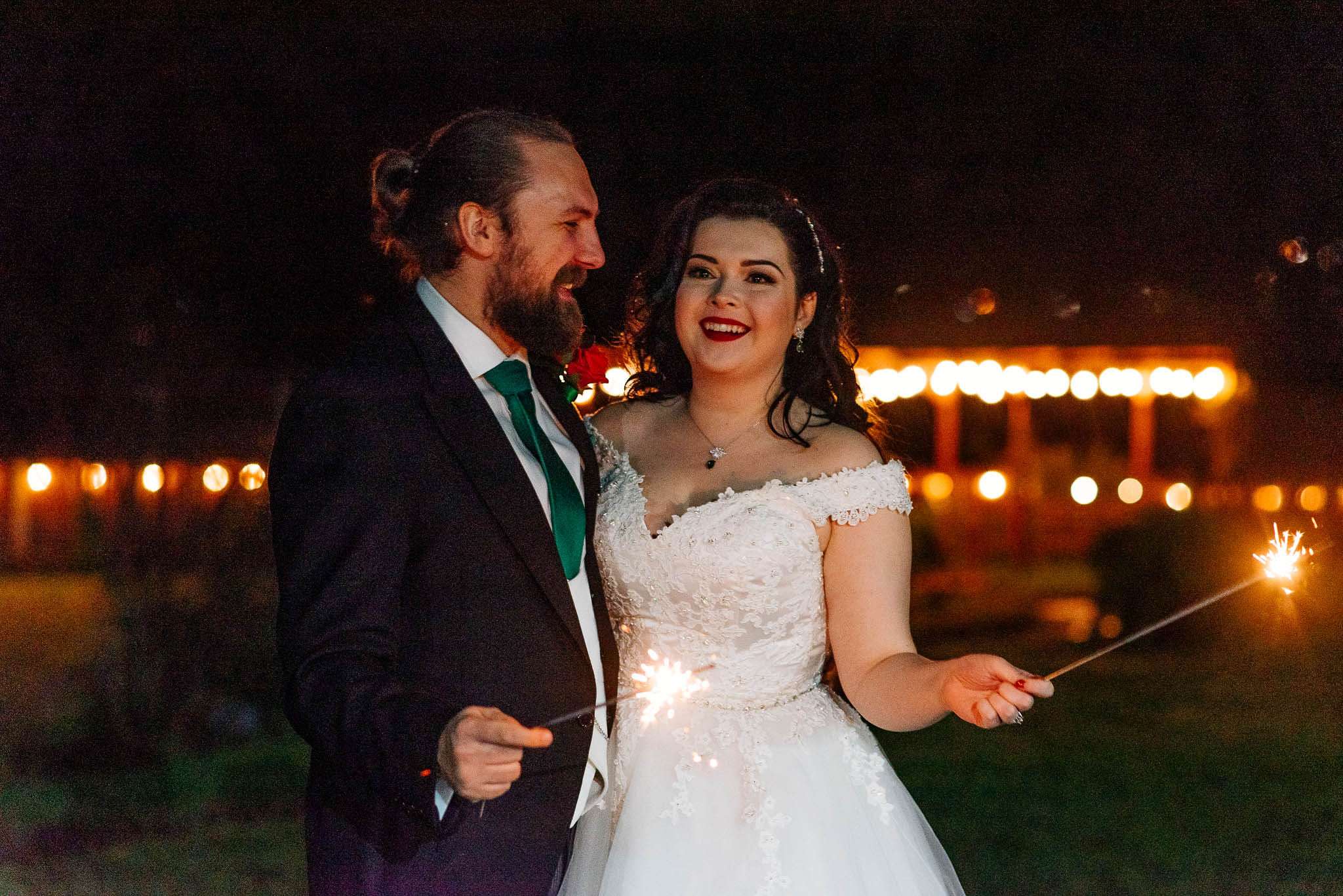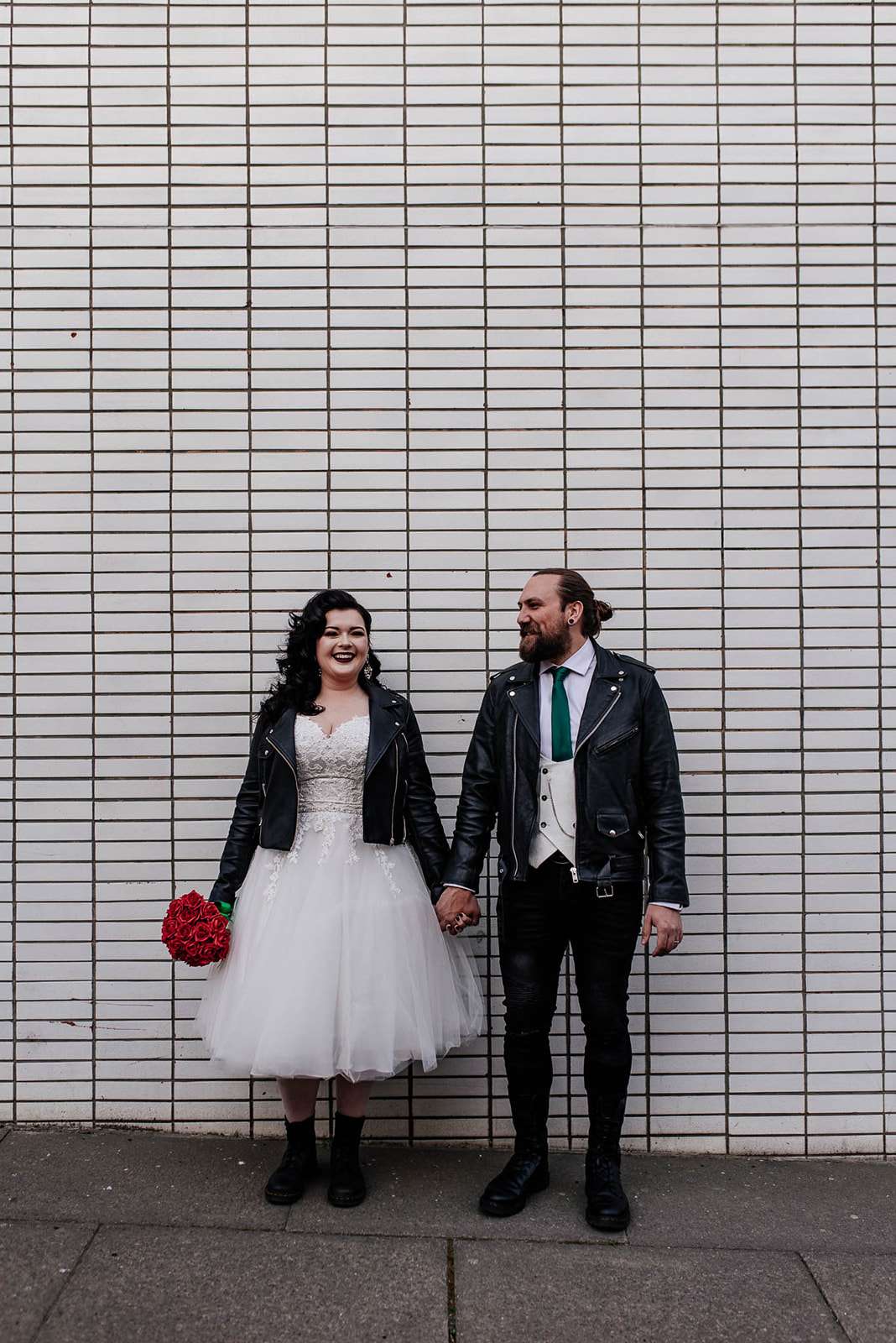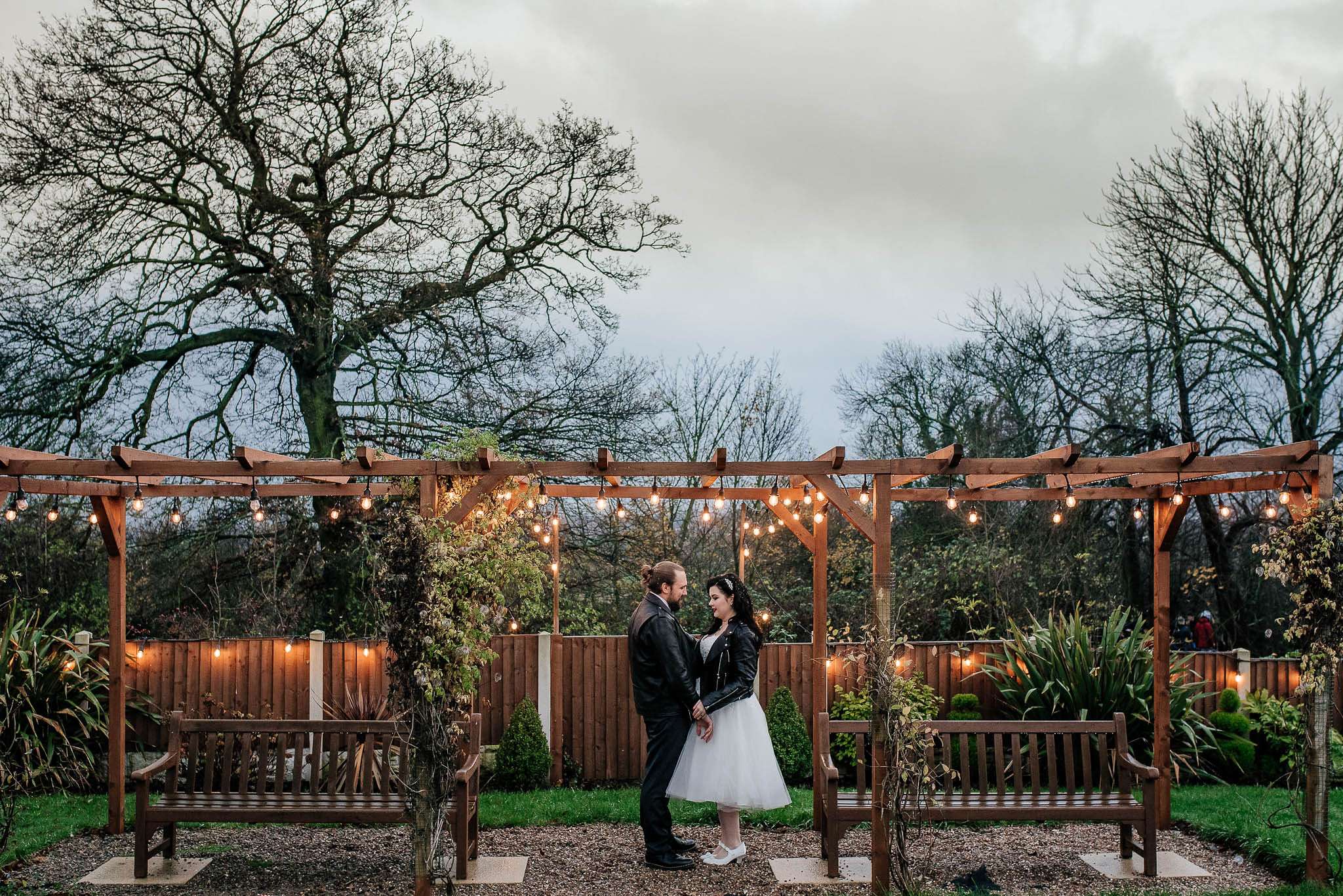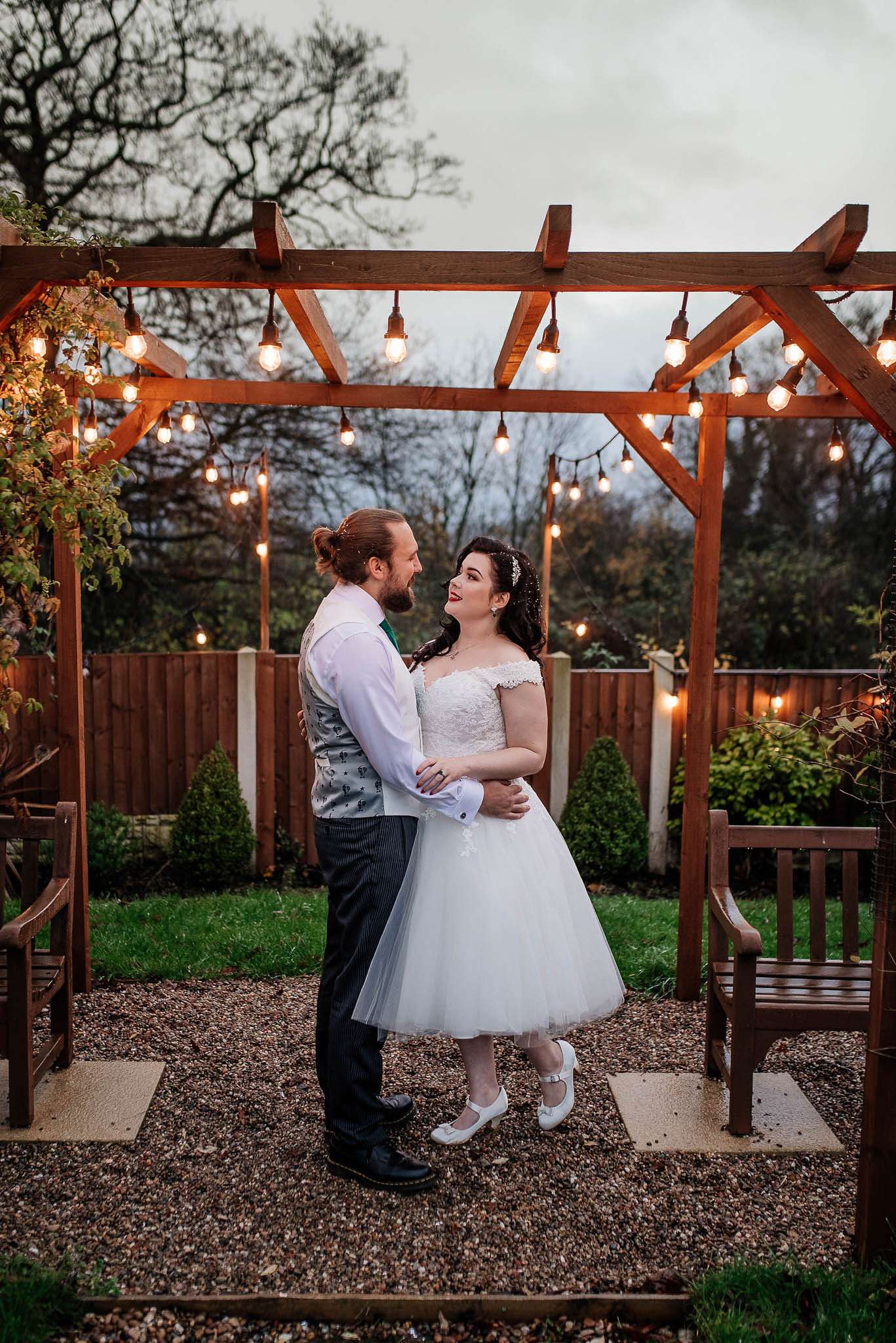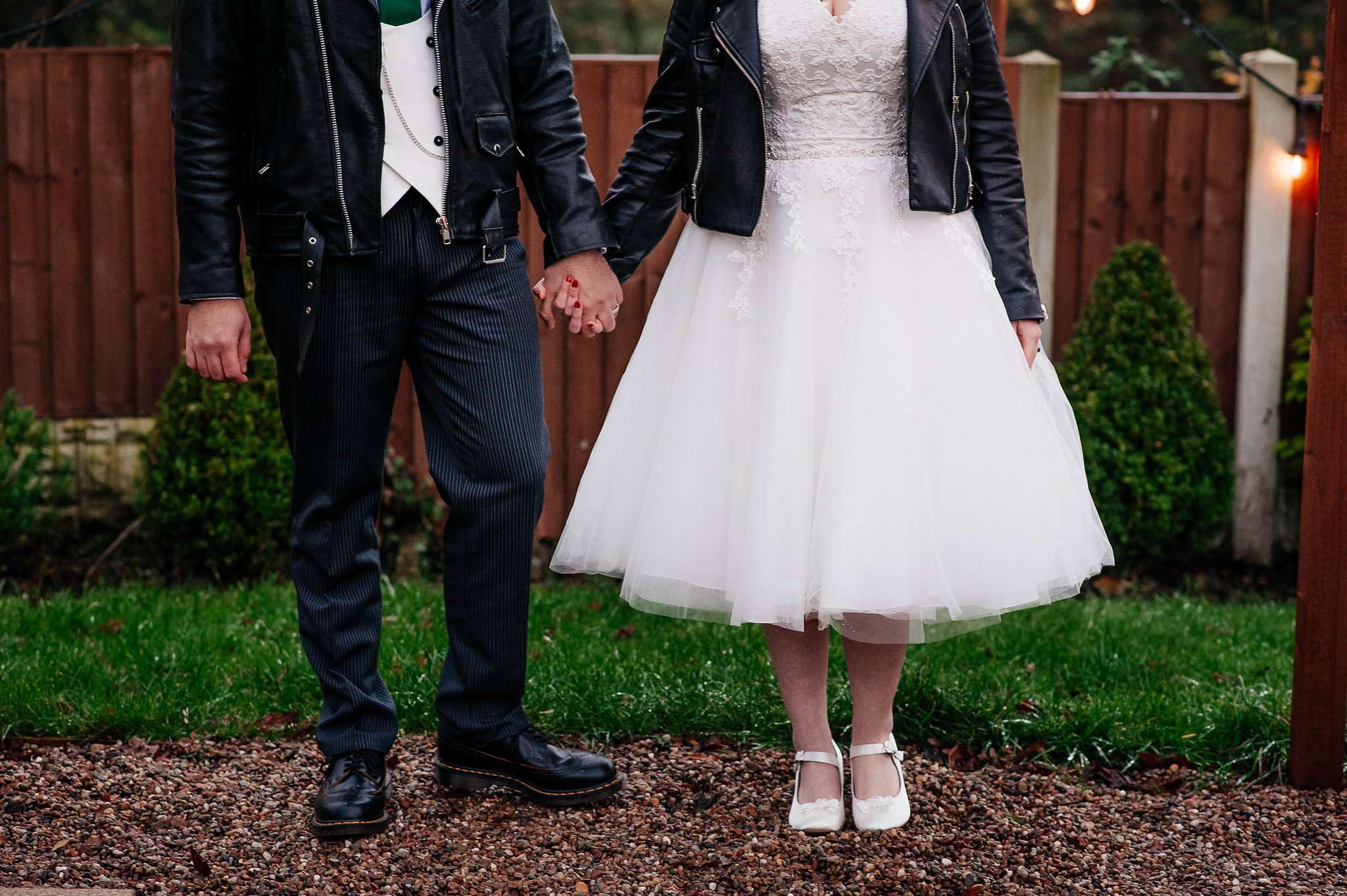 If you’ve had to postpone your summer wedding until the winter, you’re going to love the festive inspo from Jess and Tom’s December 2018 celebration. The couple had been dating since they were teenagers and ten years later Tom proposed to Jess with the most perfect 1920s emerald ring. This, and the fact that they desperately wanted to keep their early December anniversary as they’d been celebrating it so long together, inspired their festive theme, but they kept it true to their everyday style with plenty of rock n roll touches.