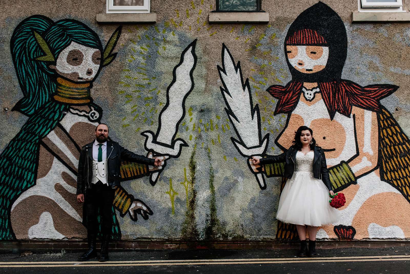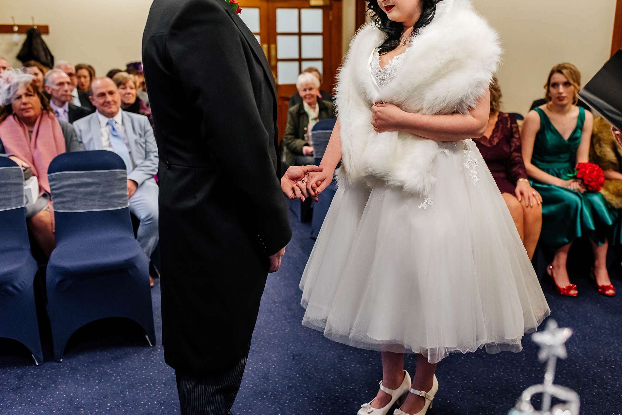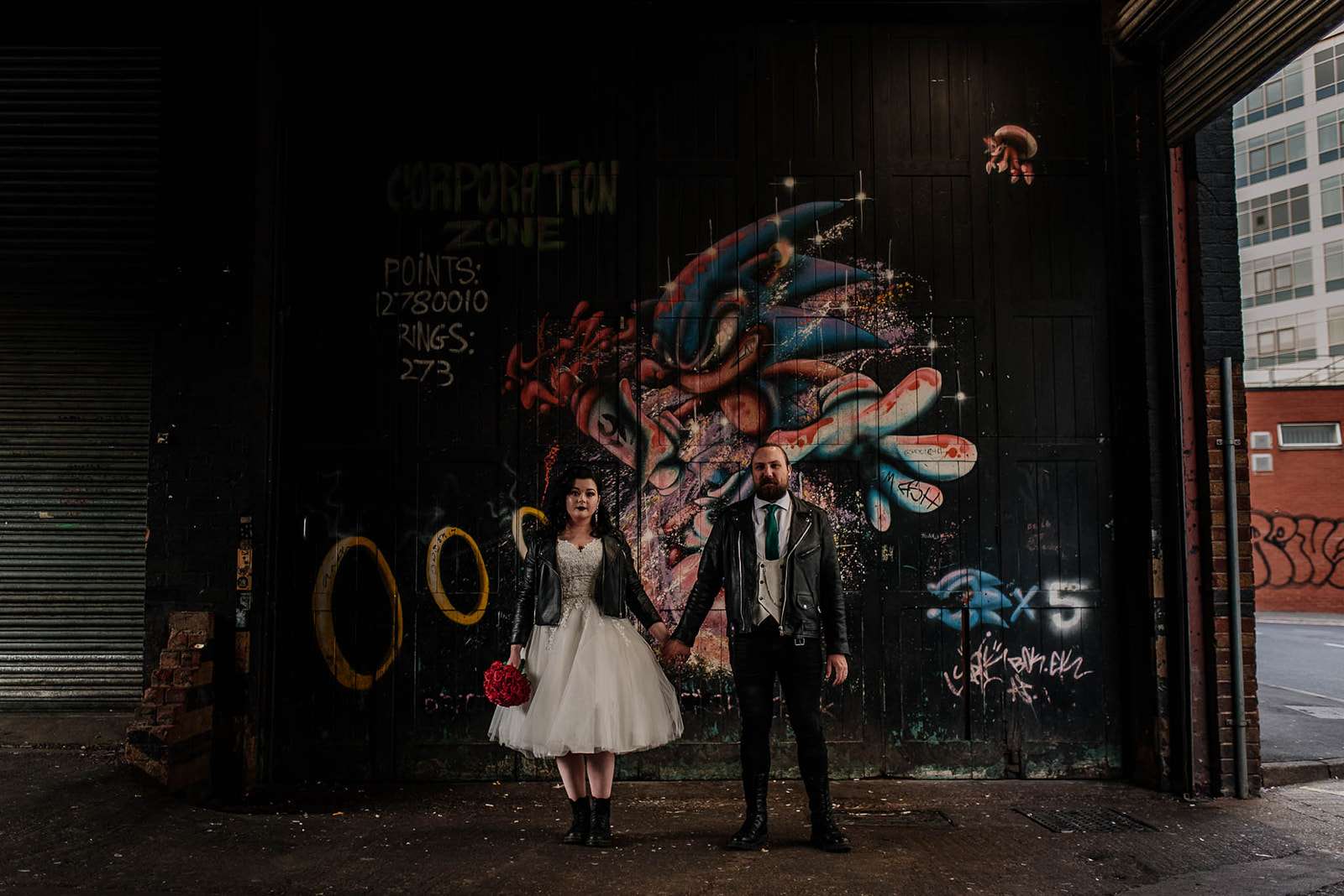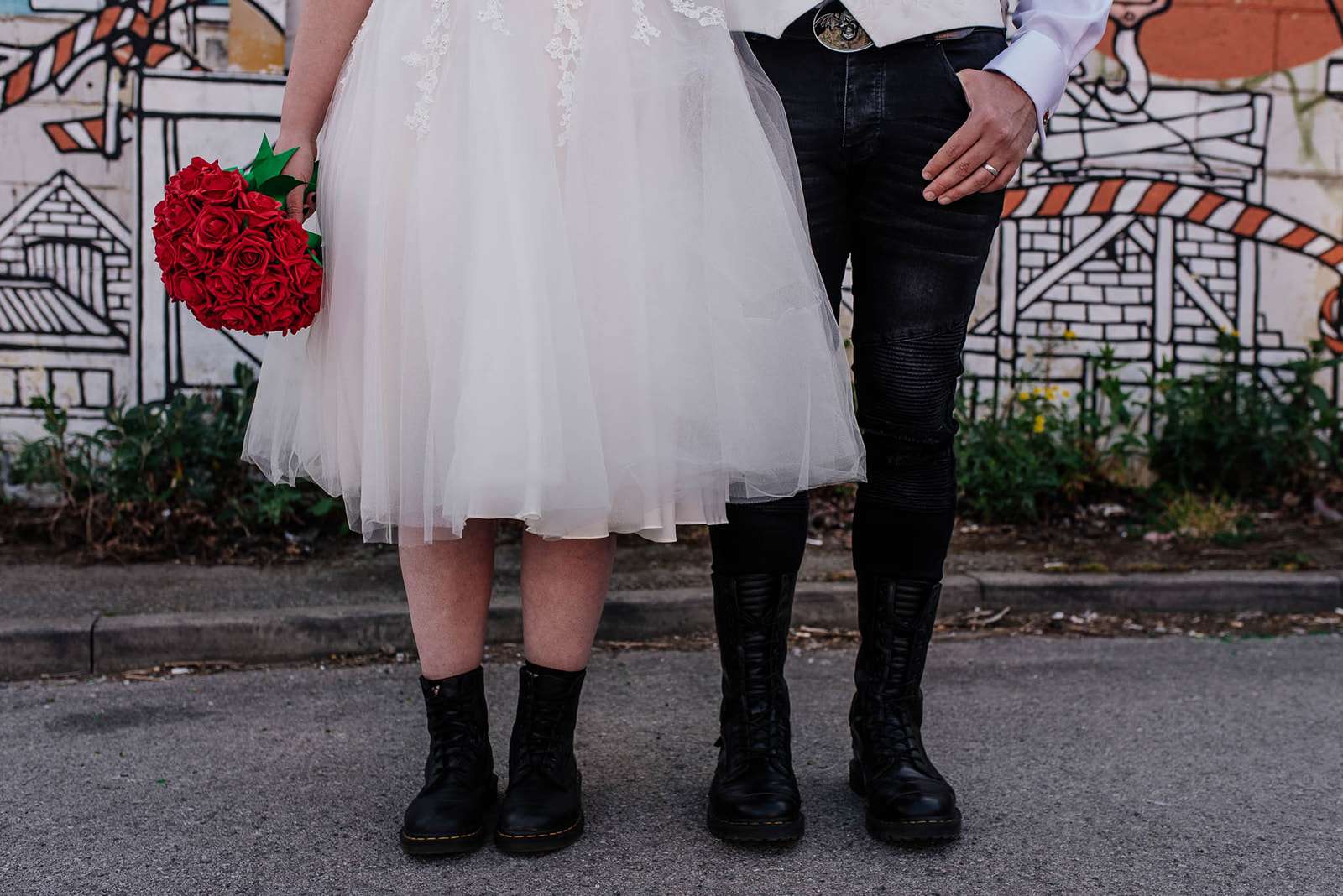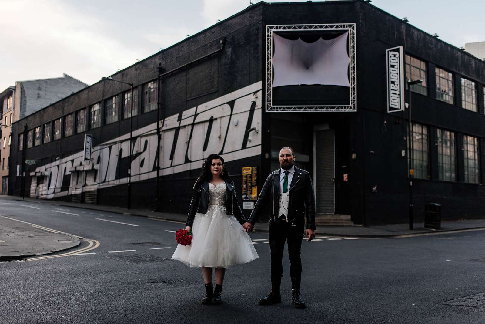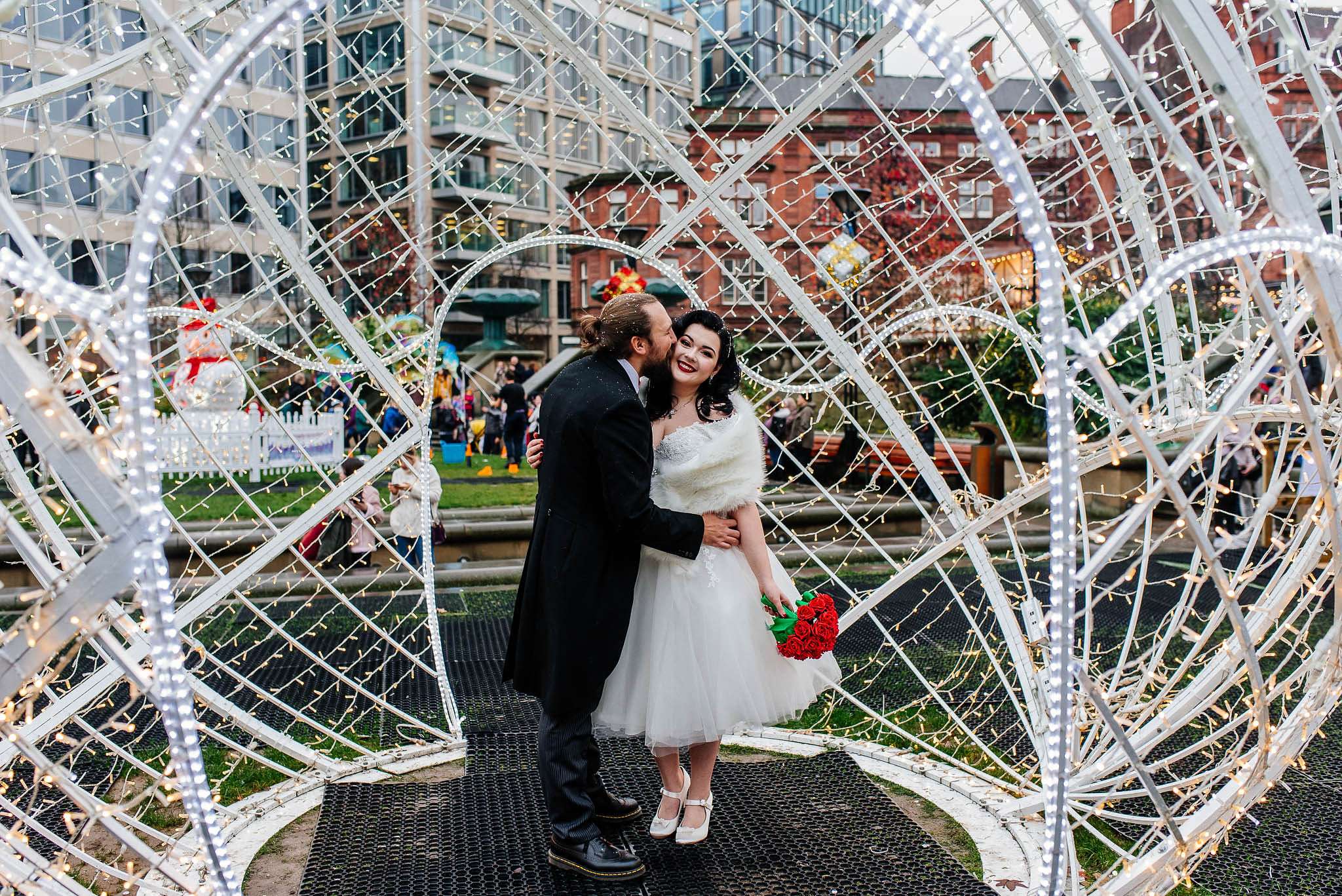 If you’ve had to postpone your summer wedding until the winter, you’re going to love the festive inspo from Jess and Tom’s December 2018 celebration. The couple had been dating since they were teenagers and ten years later Tom proposed to Jess with the most perfect 1920s emerald ring. This, and the fact that they desperately wanted to keep their early December anniversary as they’d been celebrating it so long together, inspired their festive theme, but they kept it true to their everyday style with plenty of rock n roll touches.