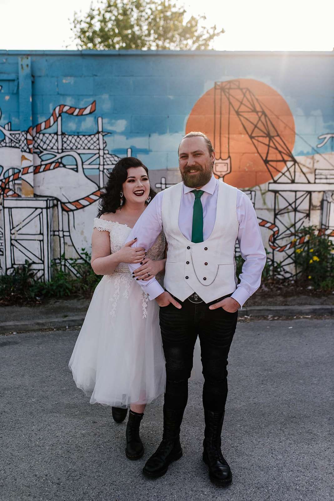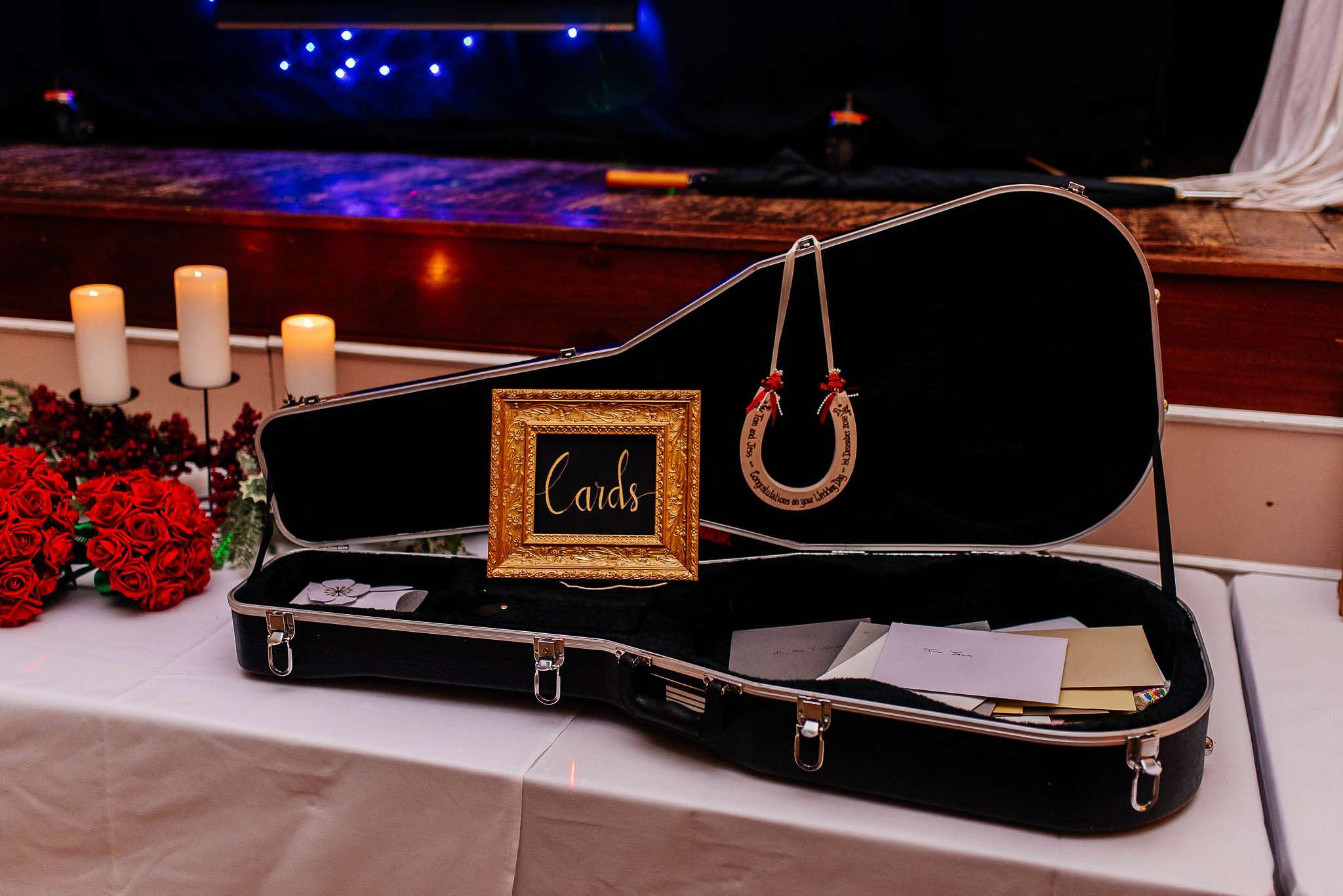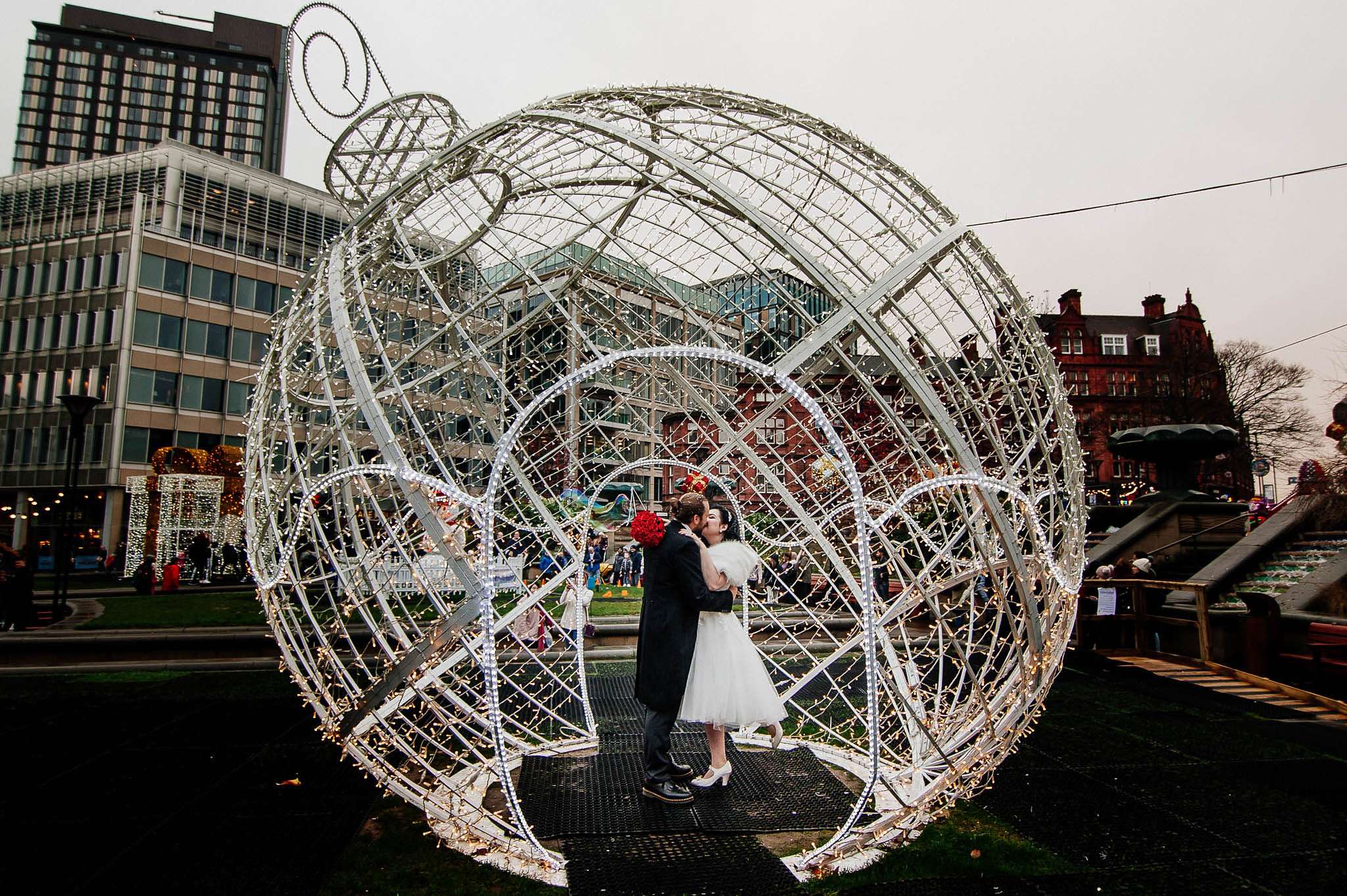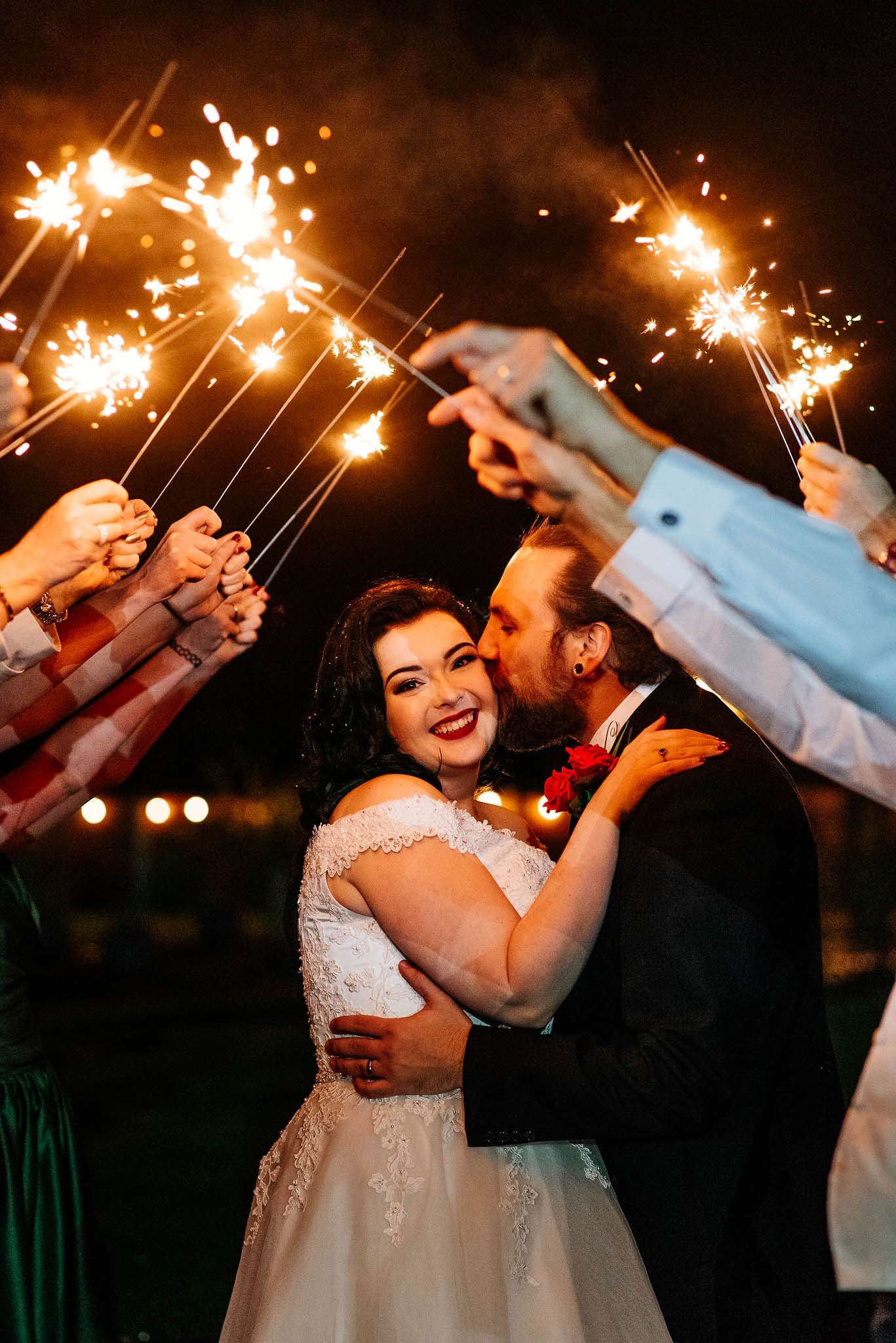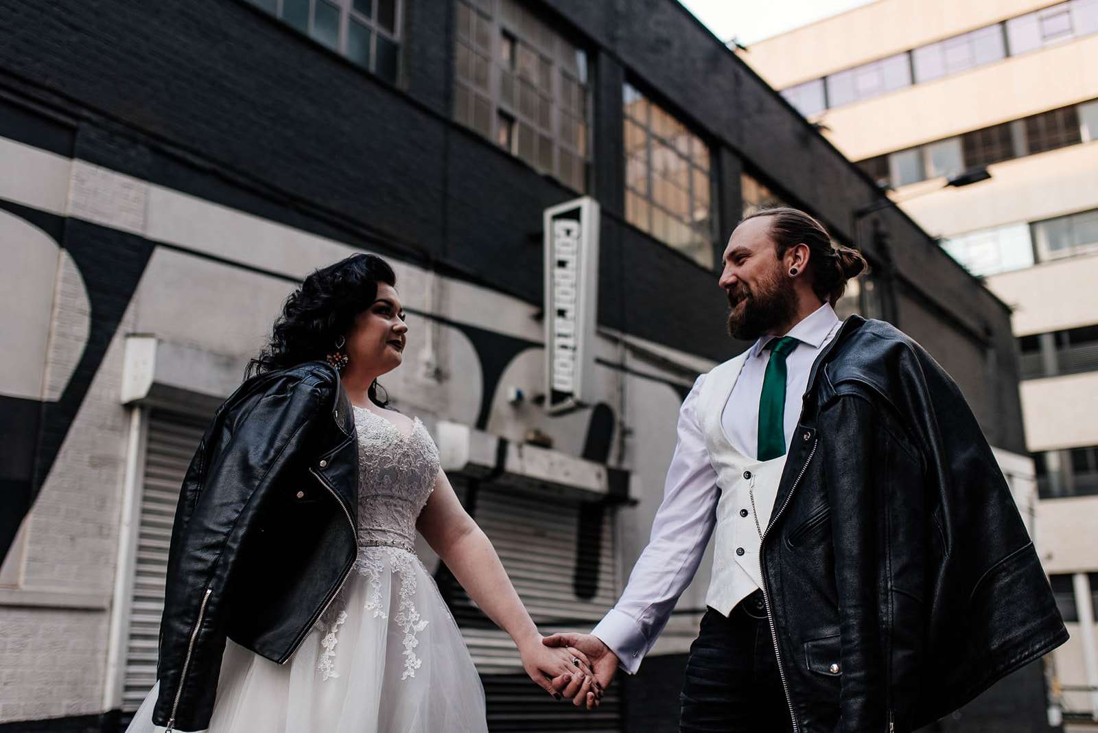 If you’ve had to postpone your summer wedding until the winter, you’re going to love the festive inspo from Jess and Tom’s December 2018 celebration. The couple had been dating since they were teenagers and ten years later Tom proposed to Jess with the most perfect 1920s emerald ring. This, and the fact that they desperately wanted to keep their early December anniversary as they’d been celebrating it so long together, inspired their festive theme, but they kept it true to their everyday style with plenty of rock n roll touches.