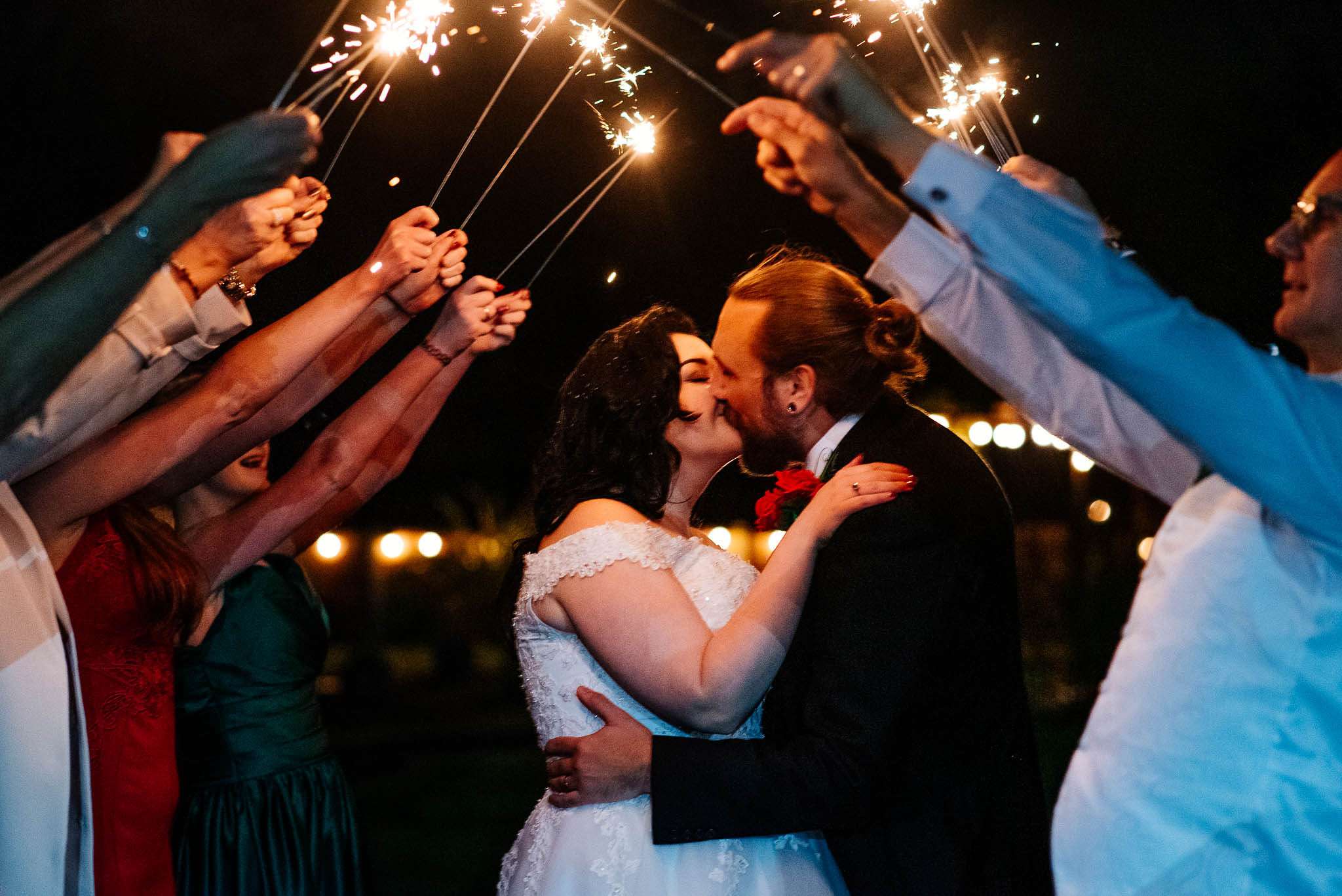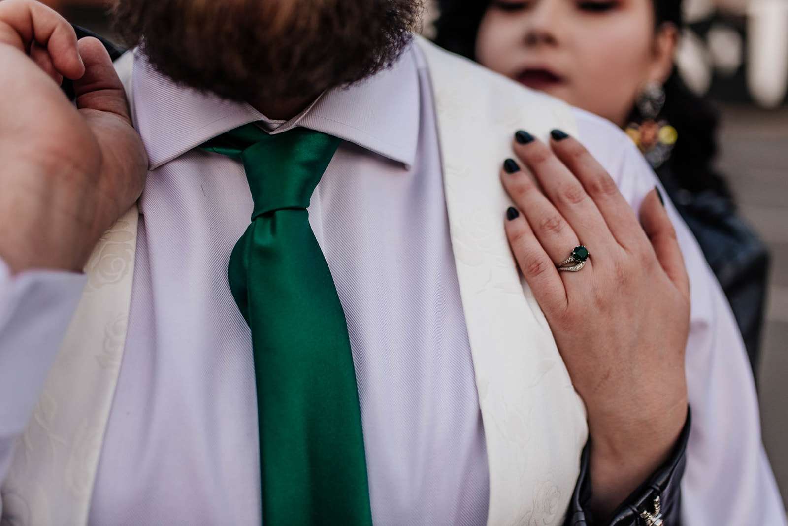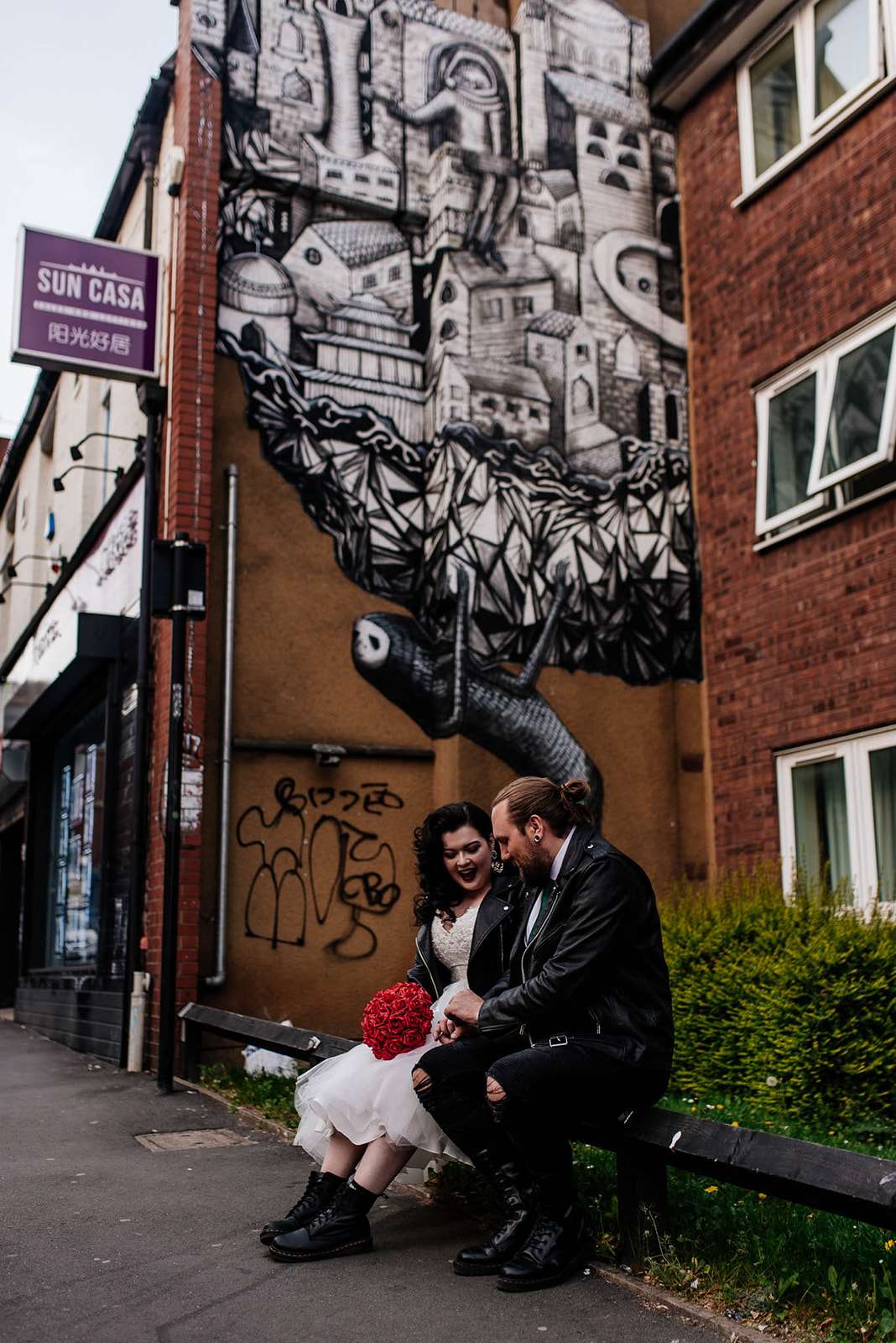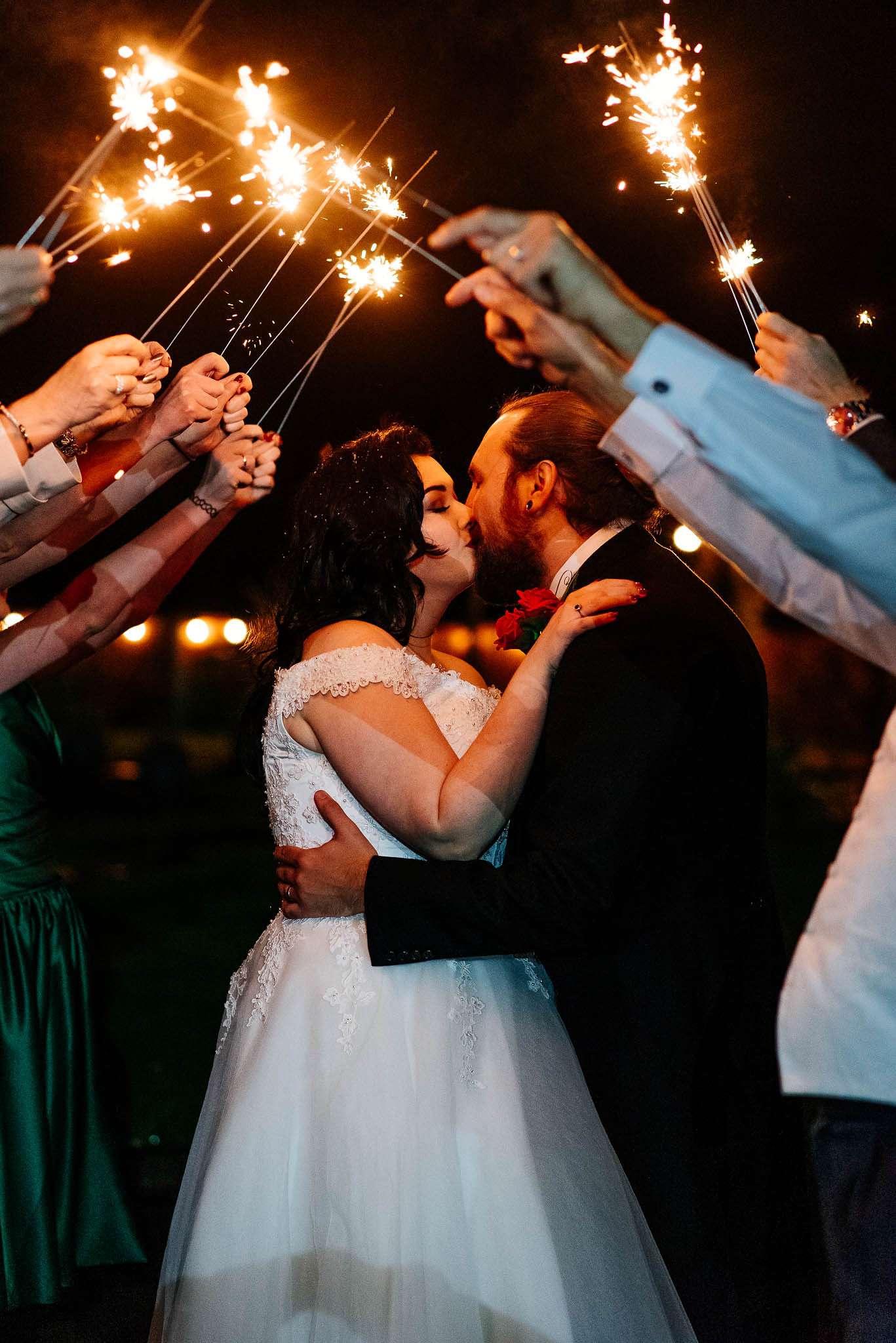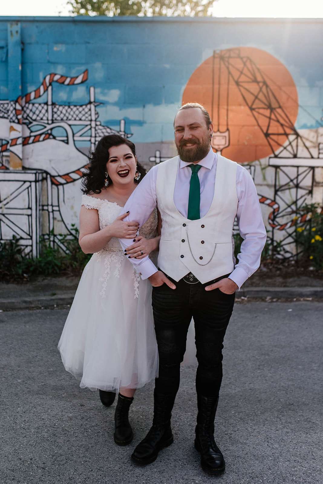If you’ve had to postpone your summer wedding until the winter, you’re going to love the festive inspo from Jess and Tom’s December 2018 celebration. The couple had been dating since they were teenagers and ten years later Tom proposed to Jess with the most perfect 1920s emerald ring. This, and the fact that they desperately wanted to keep their early December anniversary as they’d been celebrating it so long together, inspired their festive theme, but they kept it true to their everyday style with plenty of rock n roll touches.