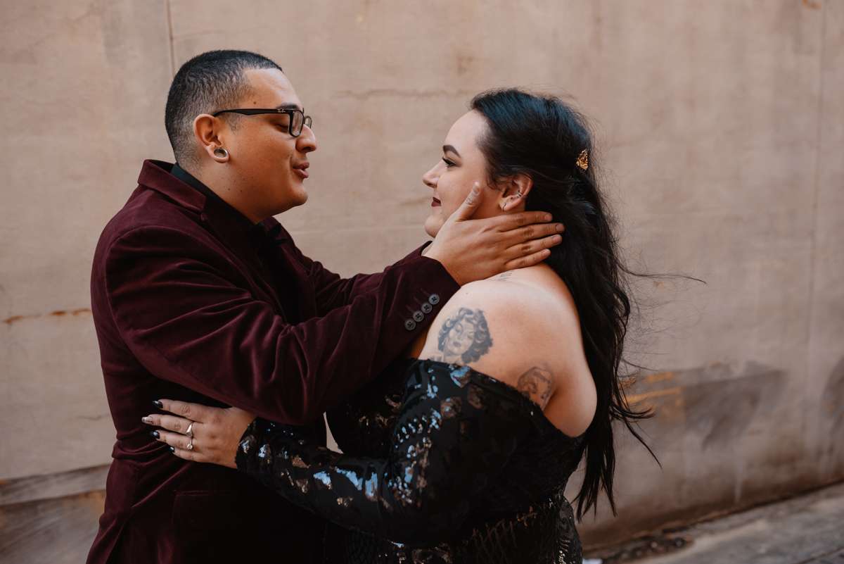 The ceremony was held the New Orleans Pharmacy Museum and one of their best friends got ordained so they could officiate their wiccan ceremony. “We gave him the free range to customise the ceremony it since he has known us so long”, they explained. “We wrote our own vows and had guests bless our rings while they waited for the ceremony to start. When it started, we had lit candles, and each guest had an unlit candle which we then lit as we walked down the aisle. We then did our unity candle in my grandmother’s silver. I had one of my sorority sisters do a reading special to us, we exchanged our vows then we second lined outta there!”