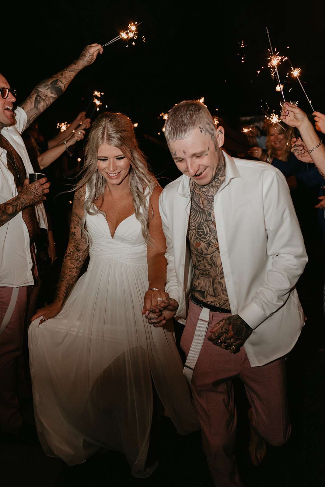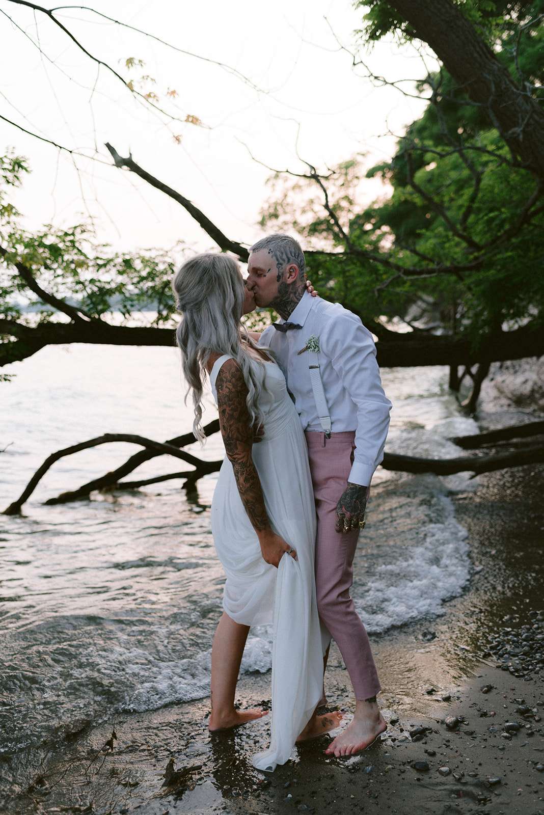 “I was 18 weeks pregnant on our wedding day”, Sami explained. “Our friends and family dropped everything and came together to make our dream wedding a reality. The ceremony itself was simple, quick and quirky! Myles and his best man, Shane, set a light tone by clowning around and keeping everyone in a constant state of laughter. The main thing for us was to keep the day stress-free, fun and memorable. We were not looking for a traditional wedding. We even got ready together before exchanging vows.”