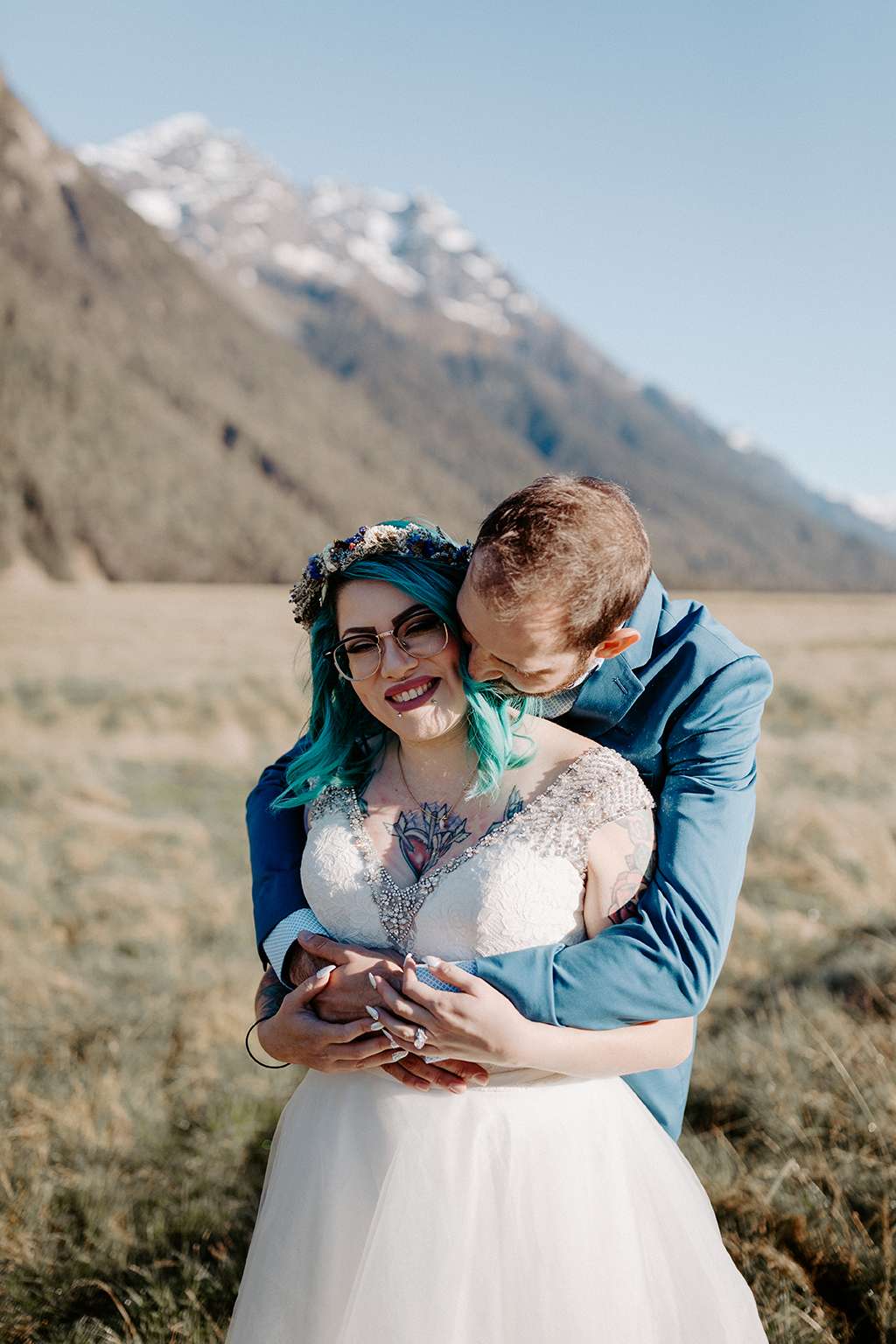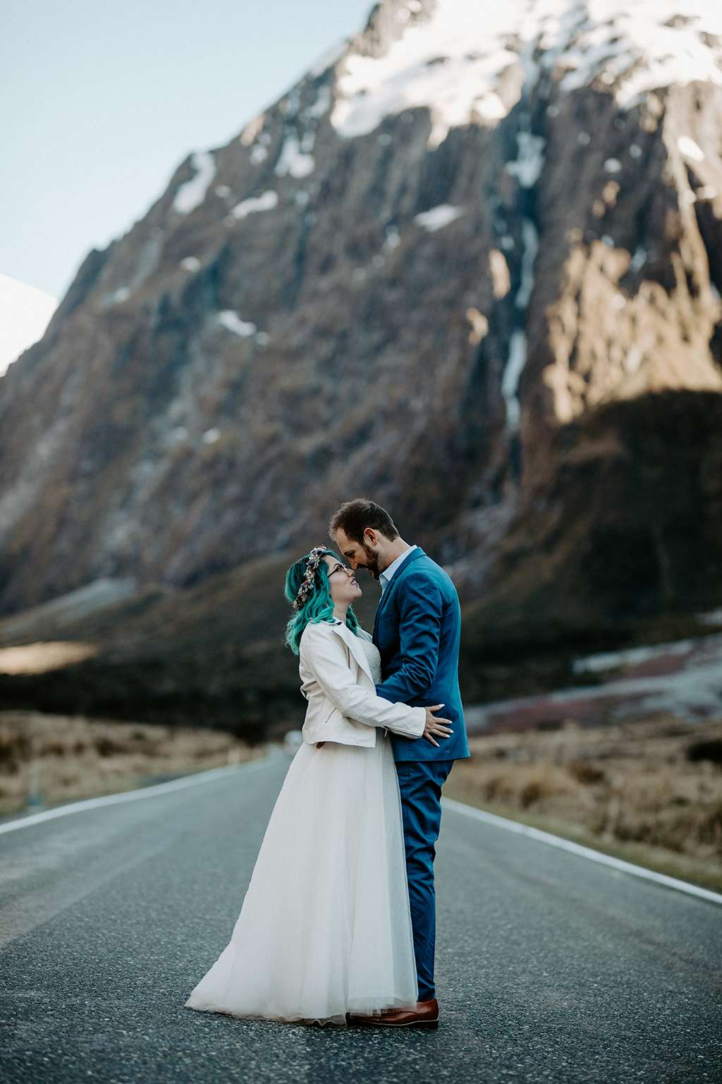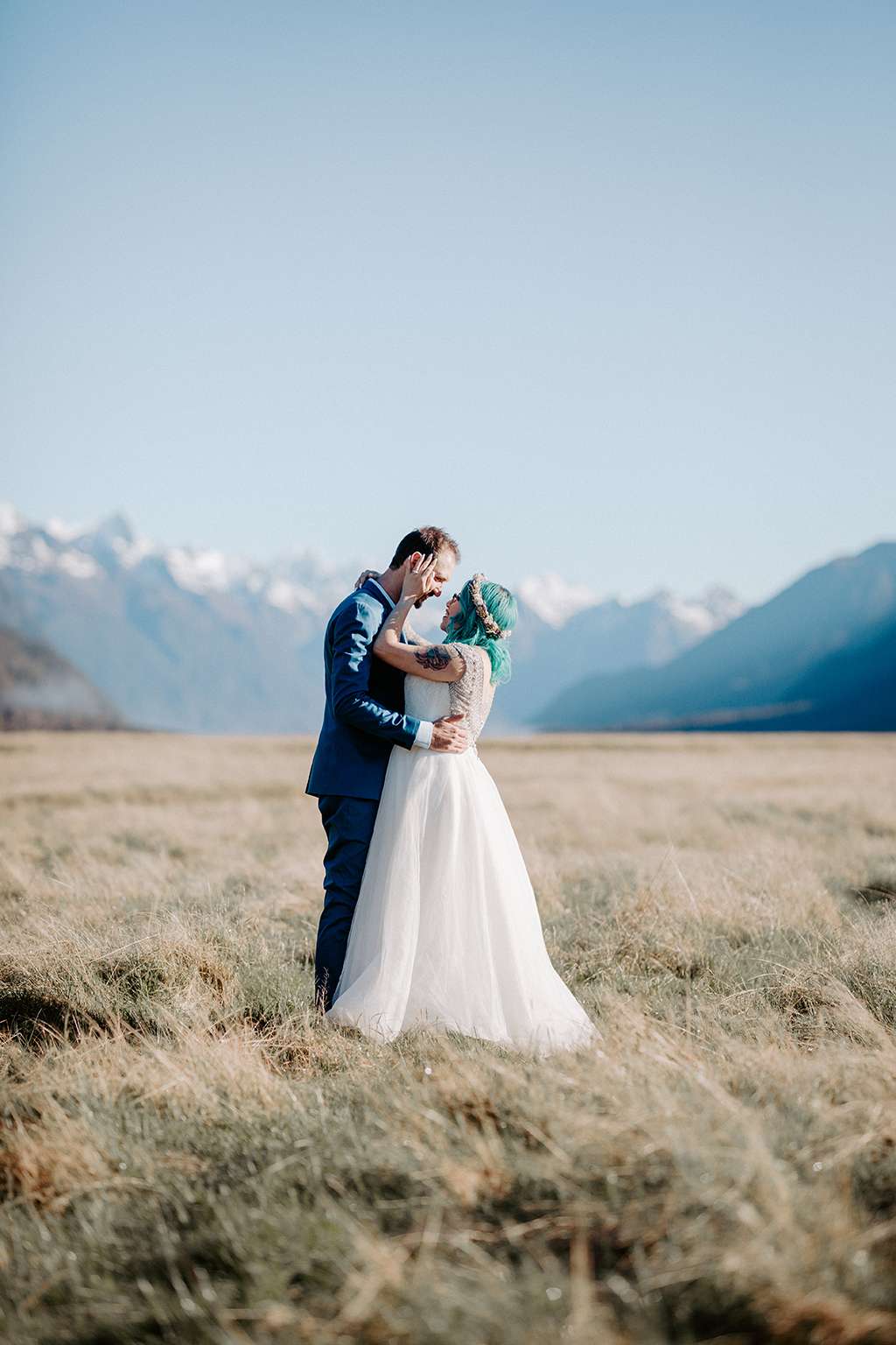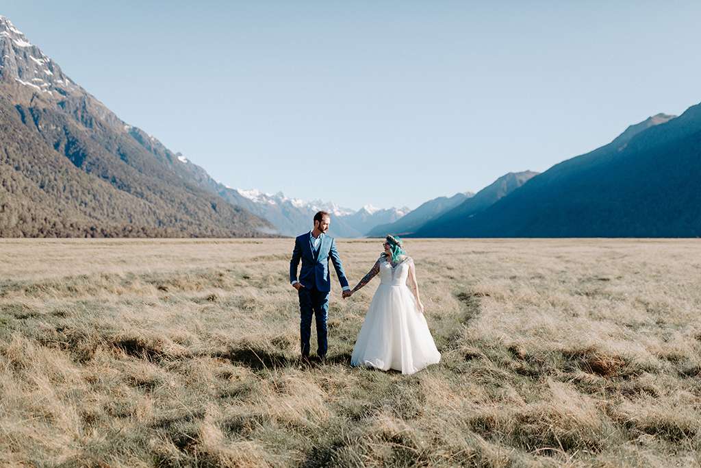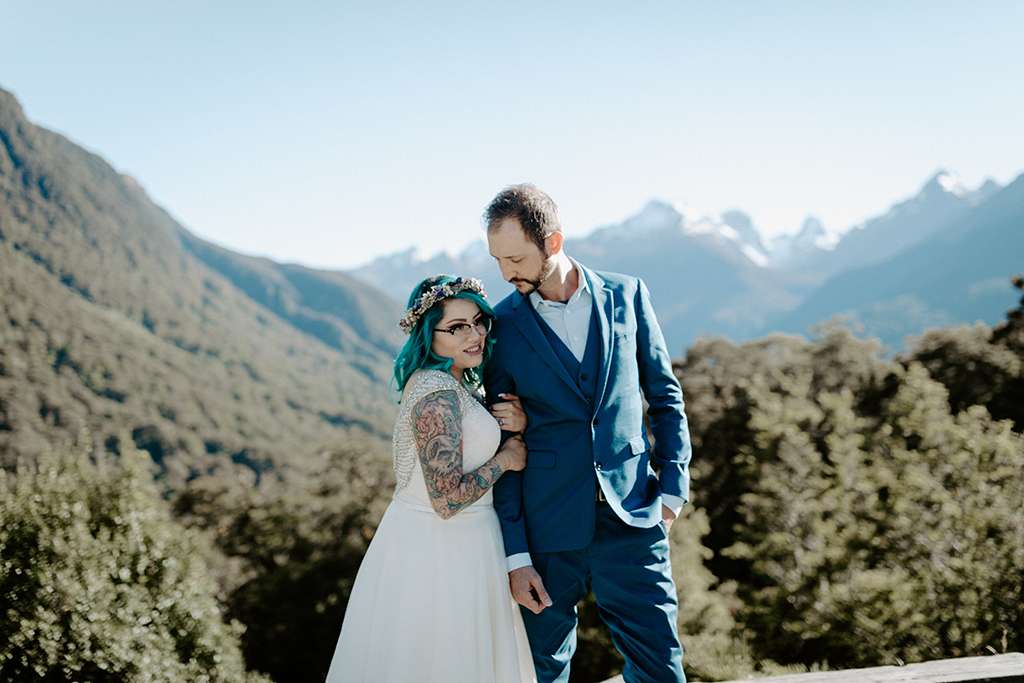 They married at Milford Sounds in New Zealand, and spent the day searching for their perfect spot. “We had the best photographer! Kate set up our day perfectly, which had to be hard since she was all the way across the world,” said Alice.