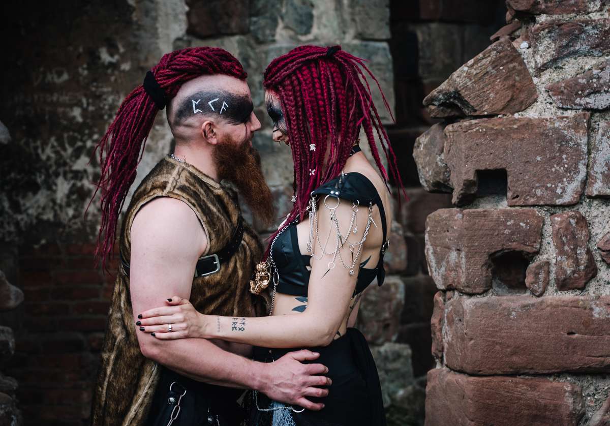 After not getting the photos they really hoped for at their actual wedding, Anastasia and Kenny decided to do a shoot to re-stage their day to do just that! They chose Moreton Corbet Castle as the location, Fran Hansen to do the most insane (in a good way) viking inspired makeup on them both and Birgitta Zoutman to take the photos.