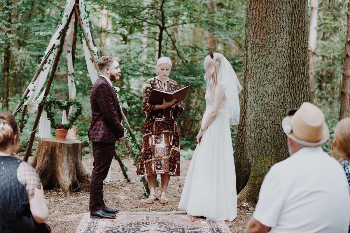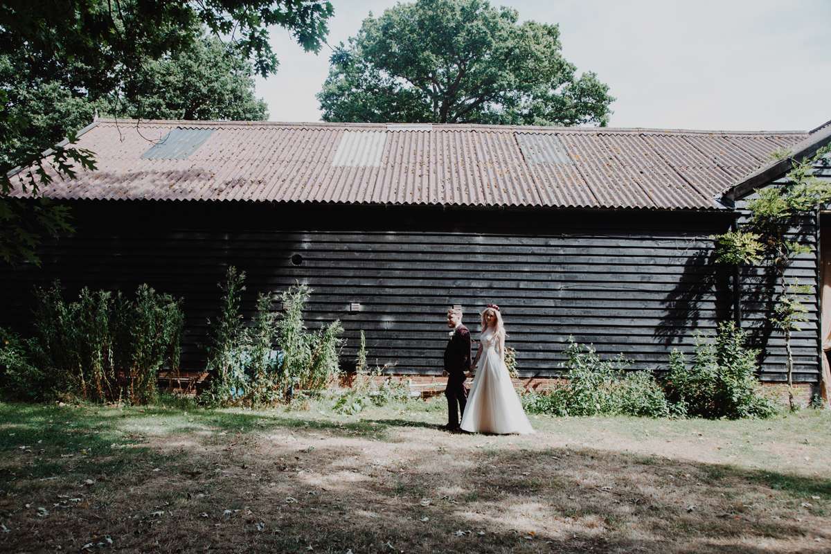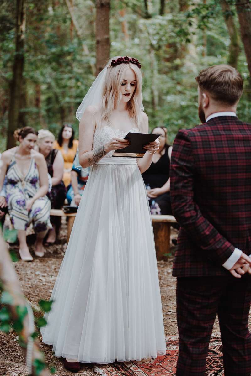The couple wrote our own vows for their outdoor humanist ceremony and had the bride’s best friend and sister-in-law read poems. “My grandad Ernie walked me down the aisle which was a very special moment”, she explained.