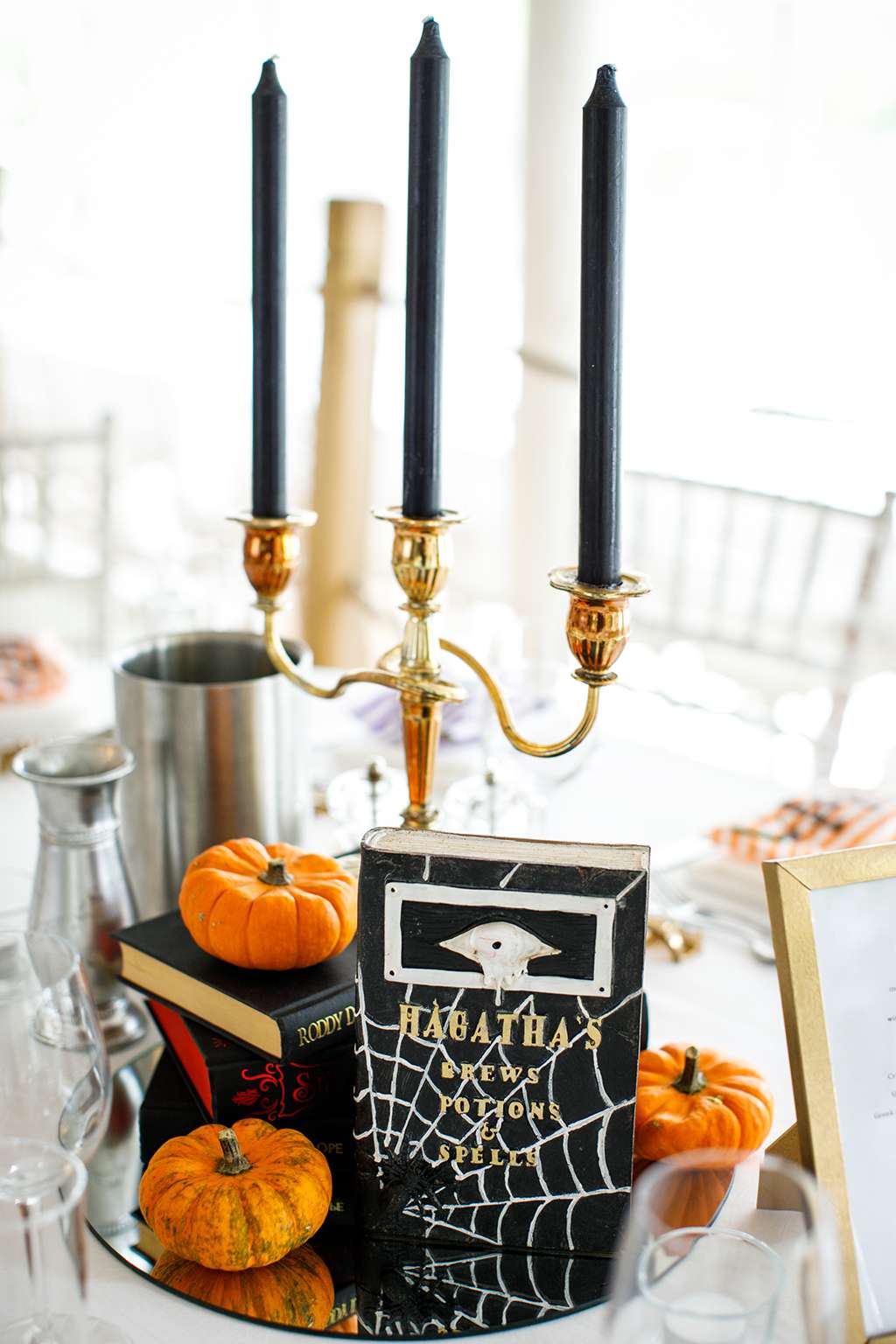 Their biggest expense was their venue, and they saved on picking their decorations up from charity shops and getting a lot of Halloween pieces from TK Maxx. There was also a ton of pumpkins – one thing Genevieve knew she wanted as décor was pumpkins! One particular fun item was a wishing cauldron in their reception area, for their guests to put cards in if they wanted.